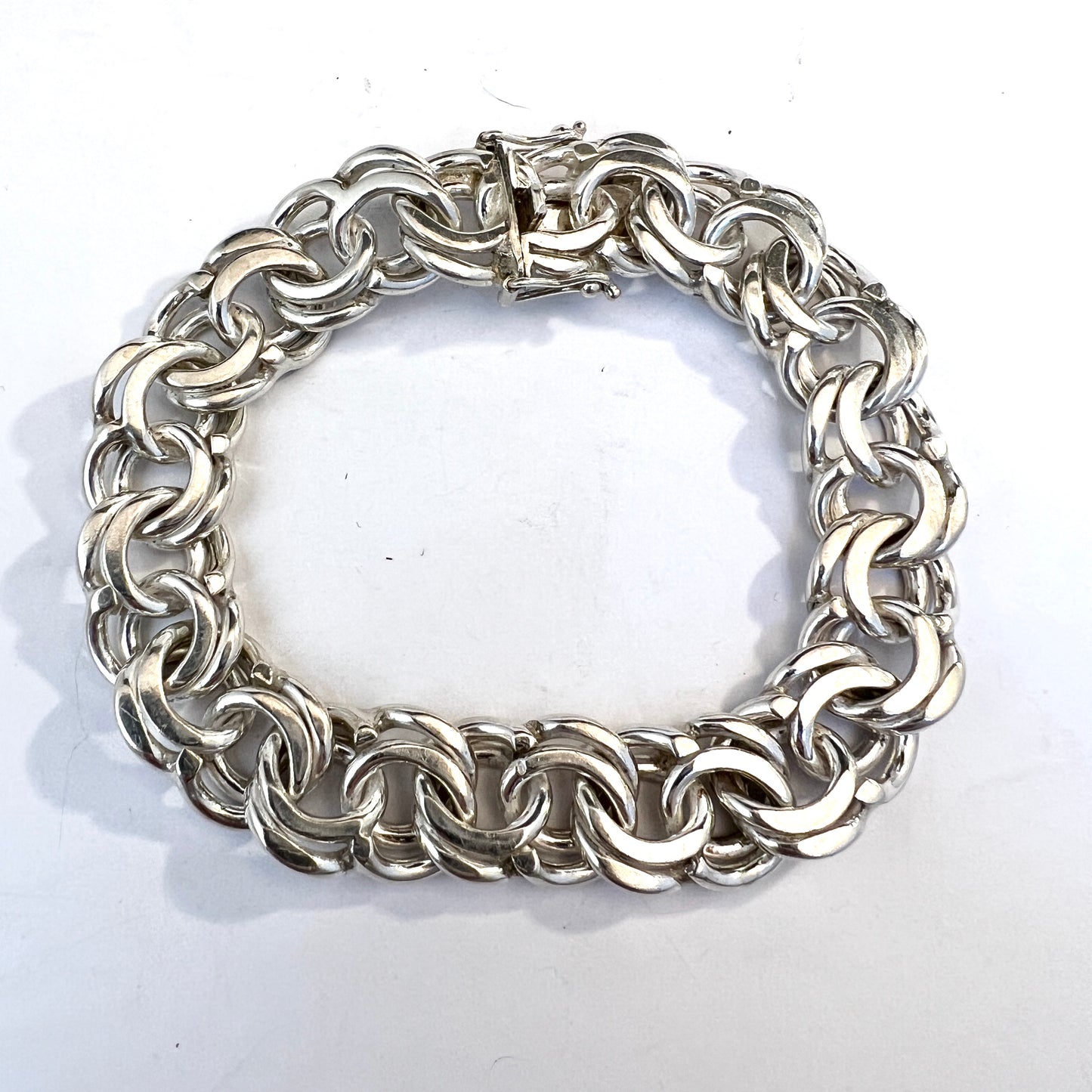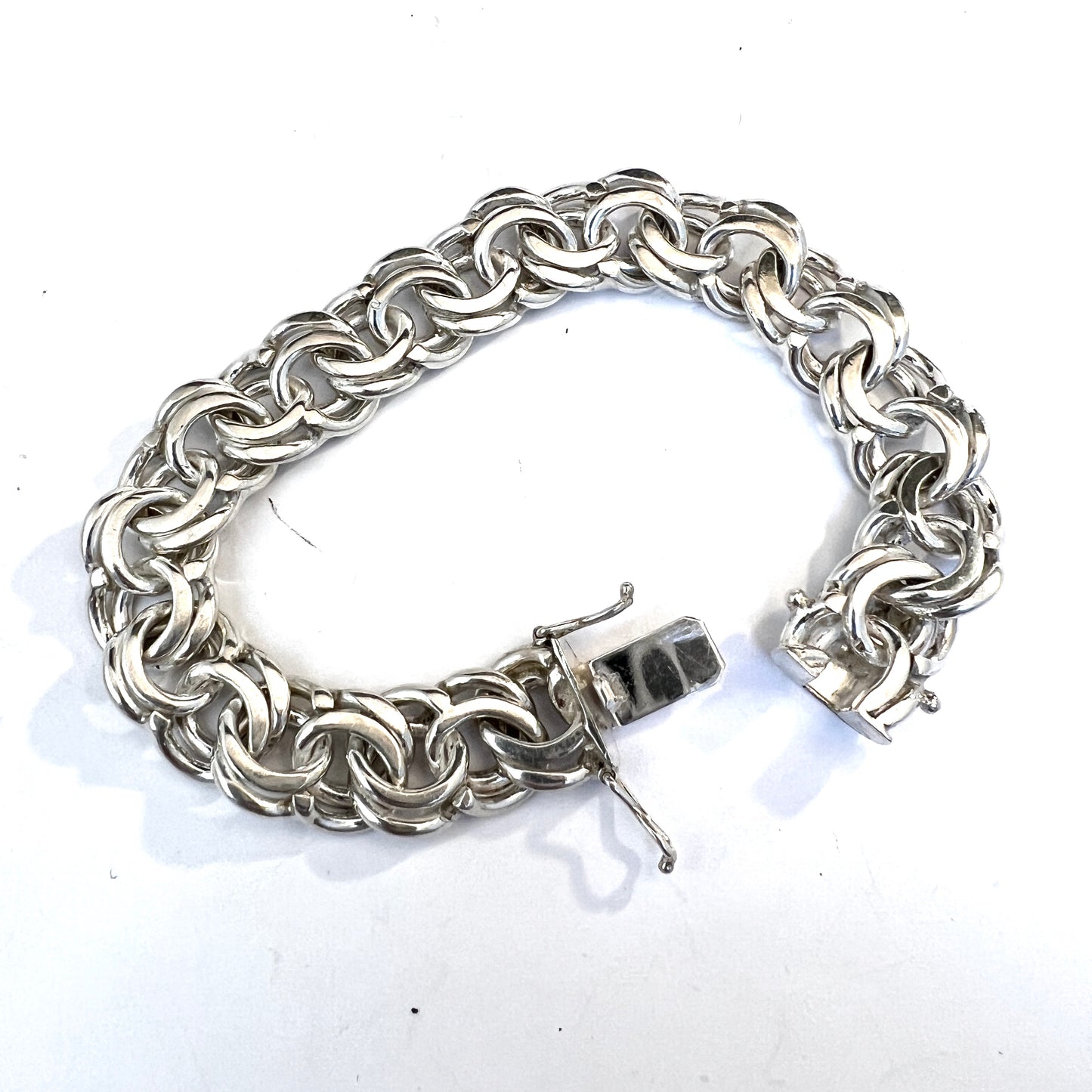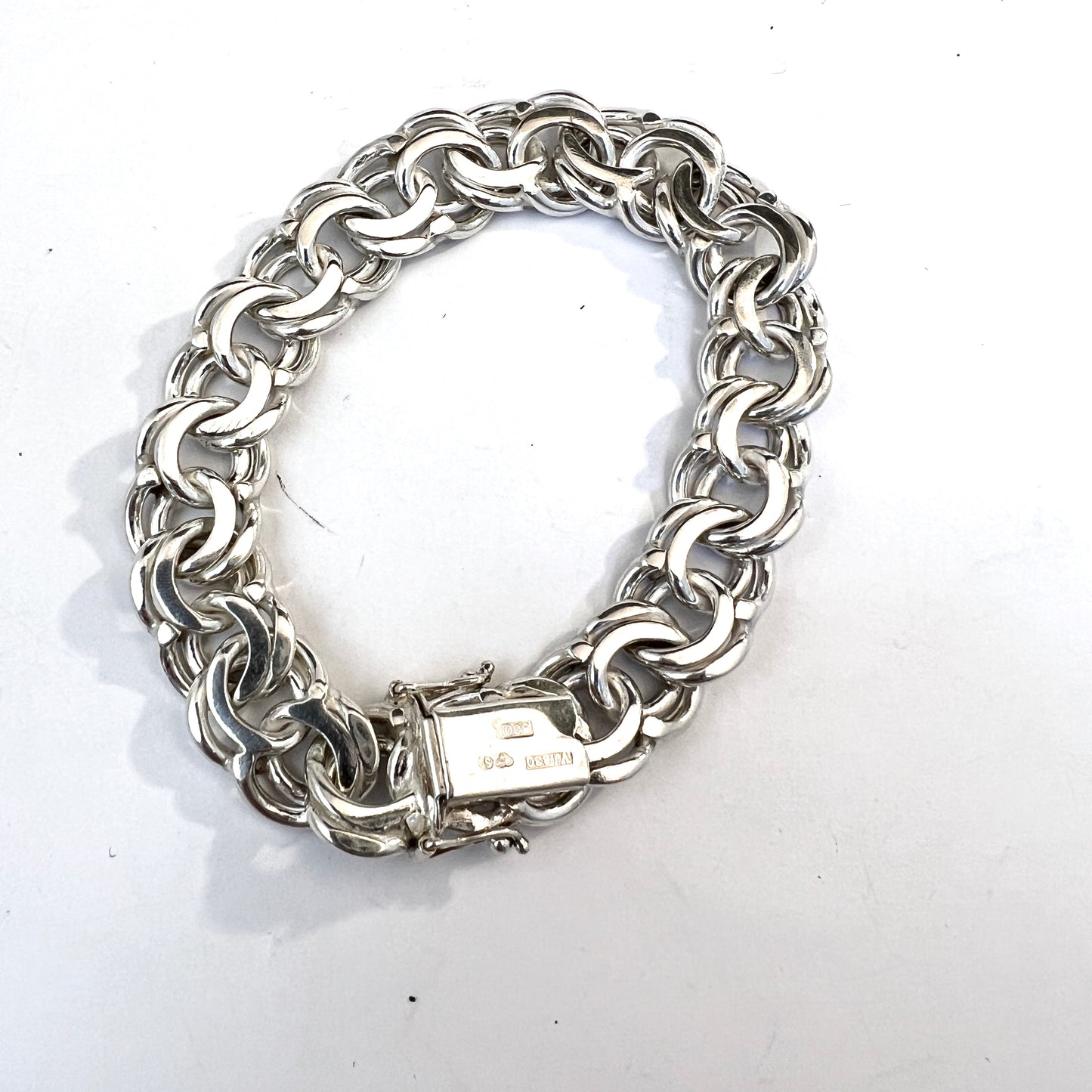 Beautiful vintage solis silver bismark bracelet. Hallmarked for 830 silver, Victor Janson, Sweden 1970s.