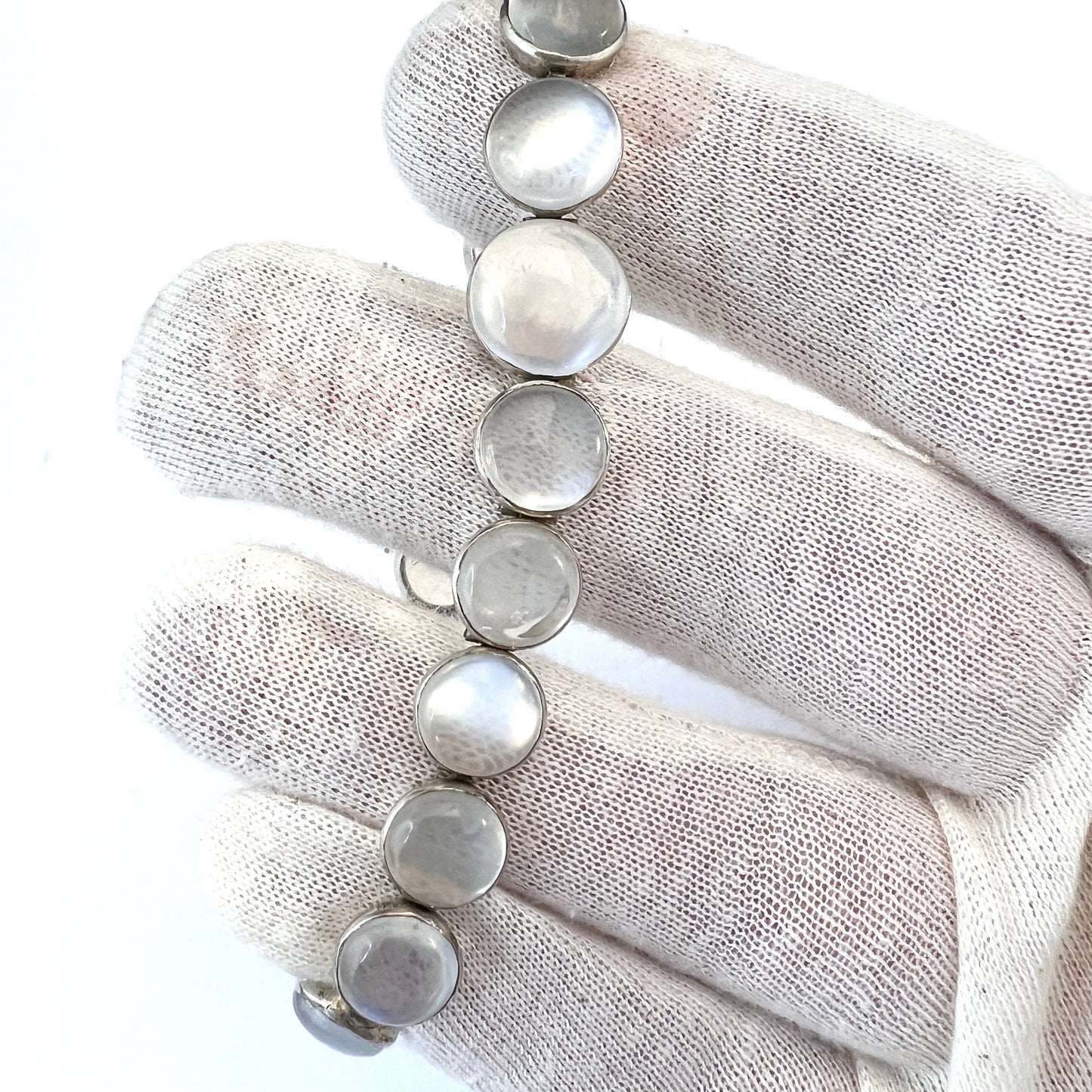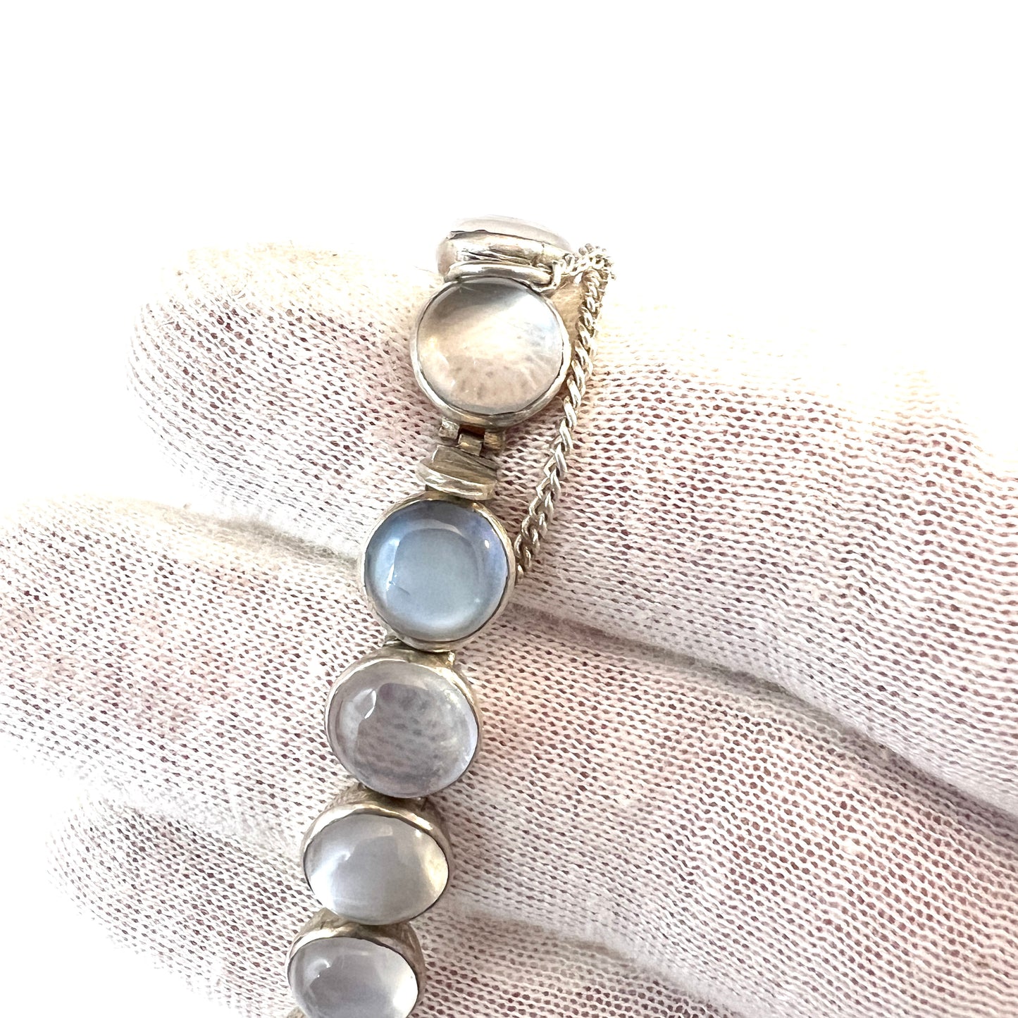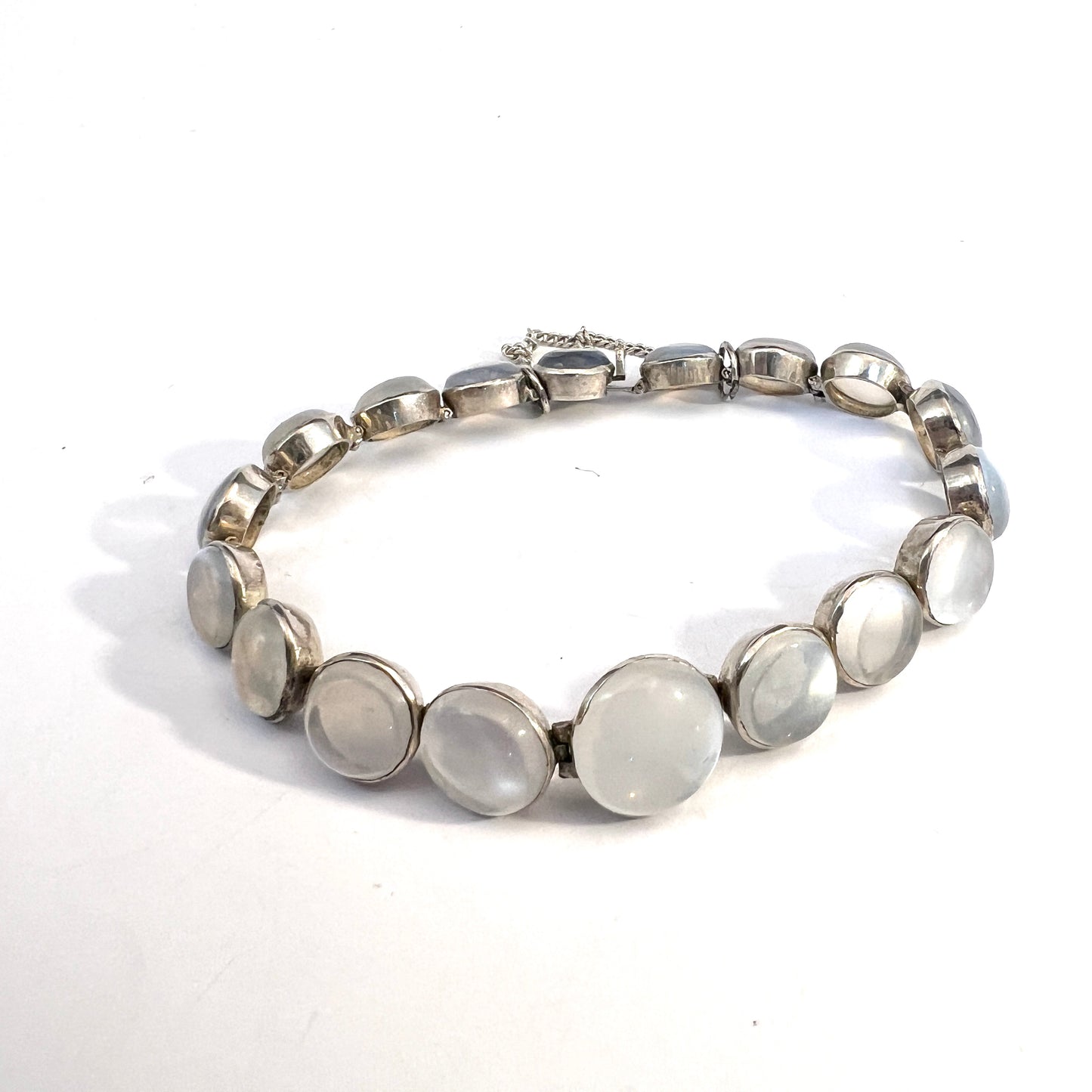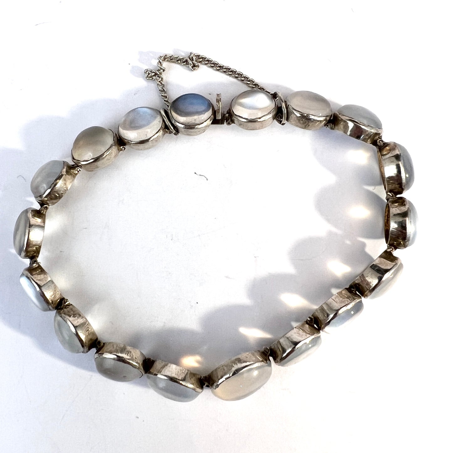 Wonderful and much sought after vintage sterling silver moonstone bracelet. Apparently unmarked. Continental Europe c 1930s.