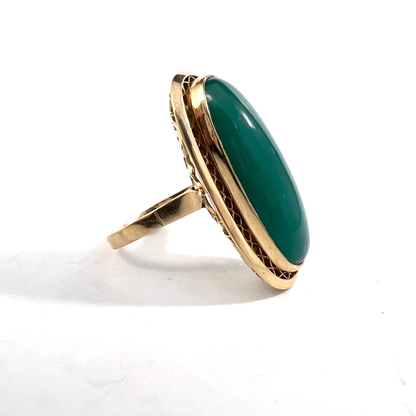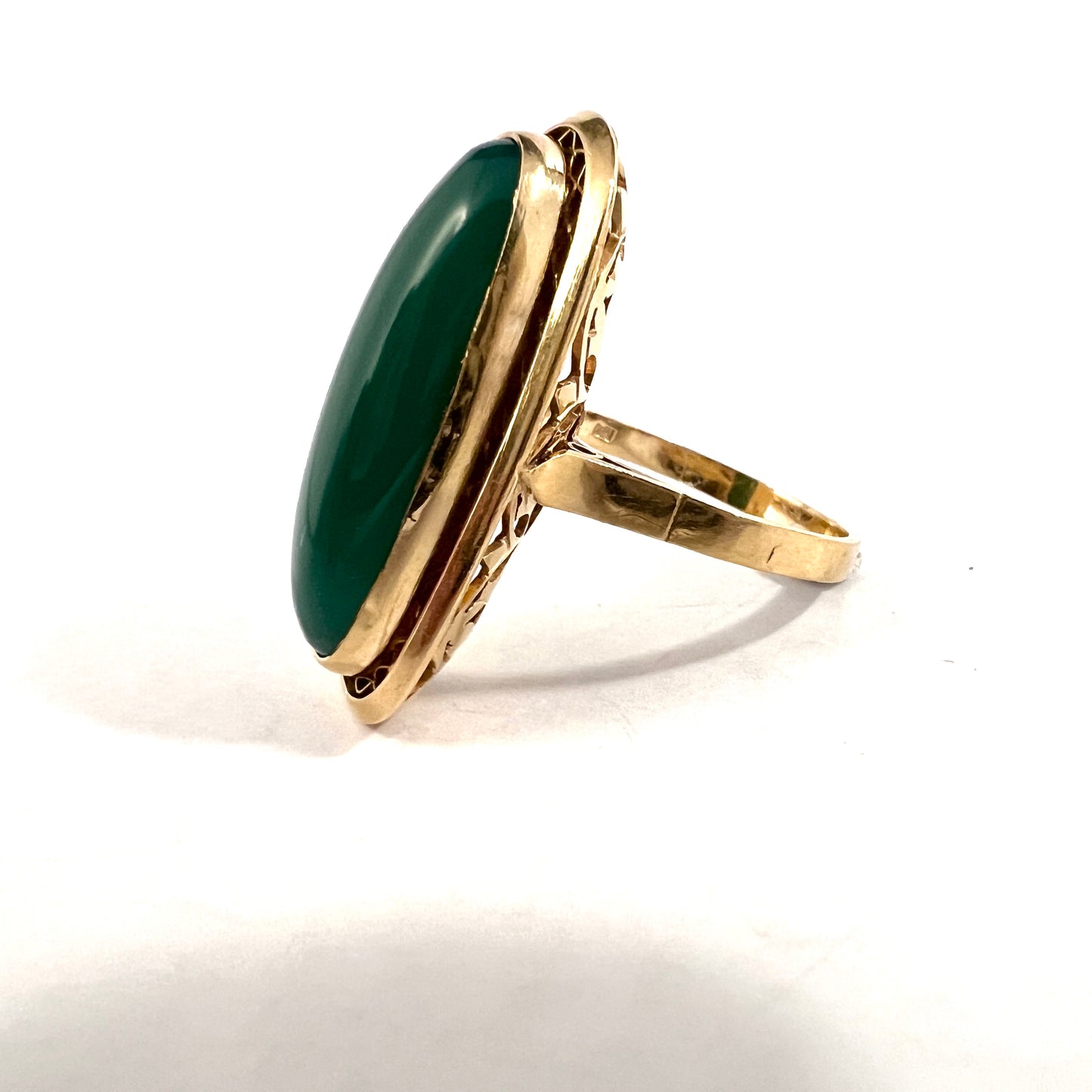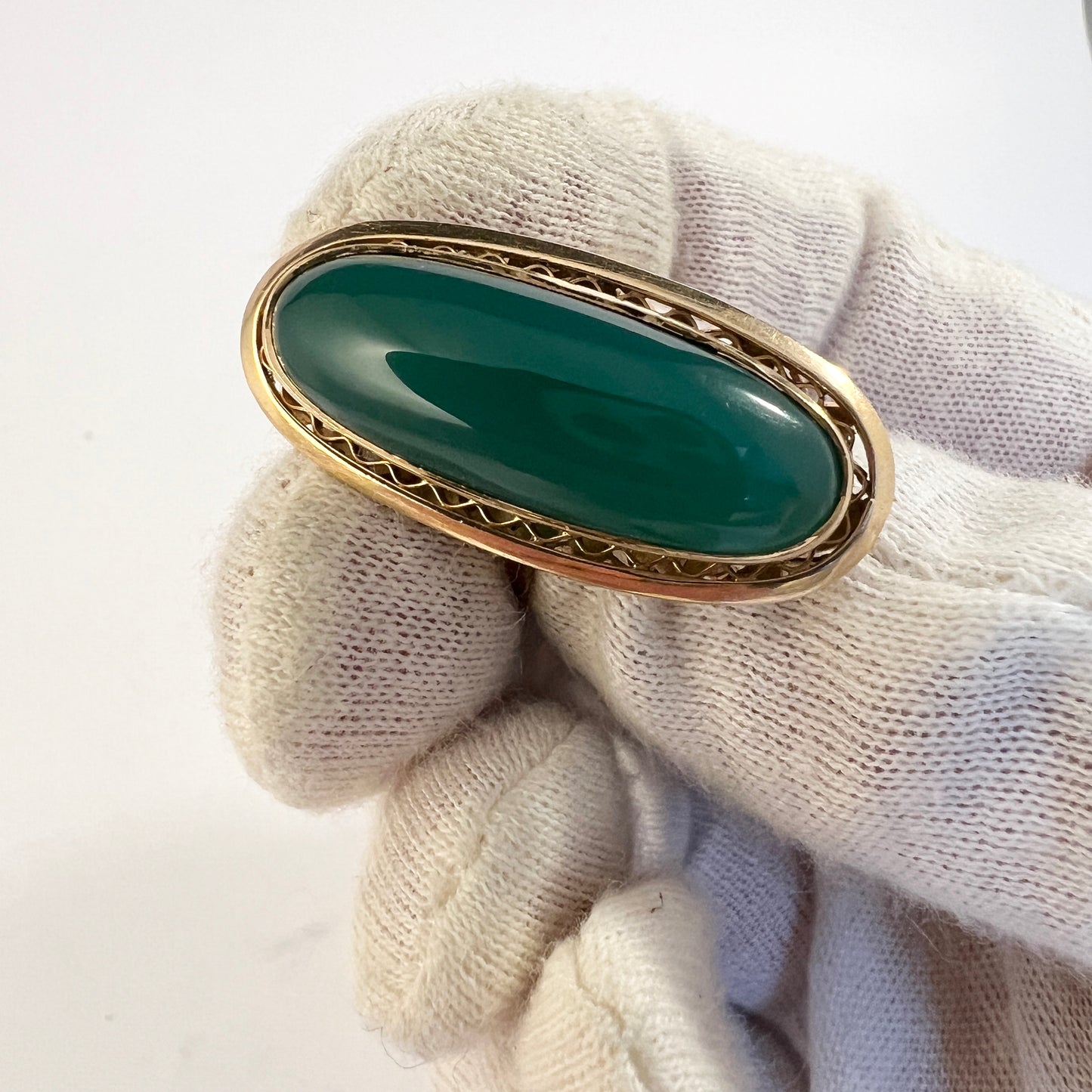 Vintage Mid-century 18k Gold Green Agate Cocktail Ring. 9.7 gram