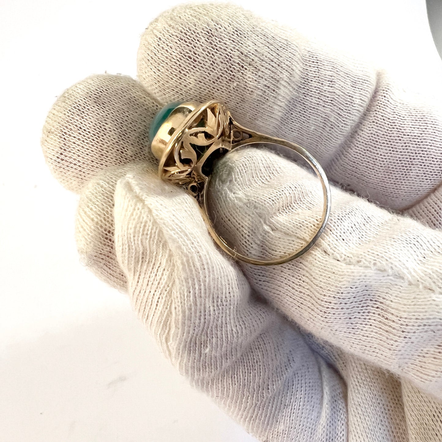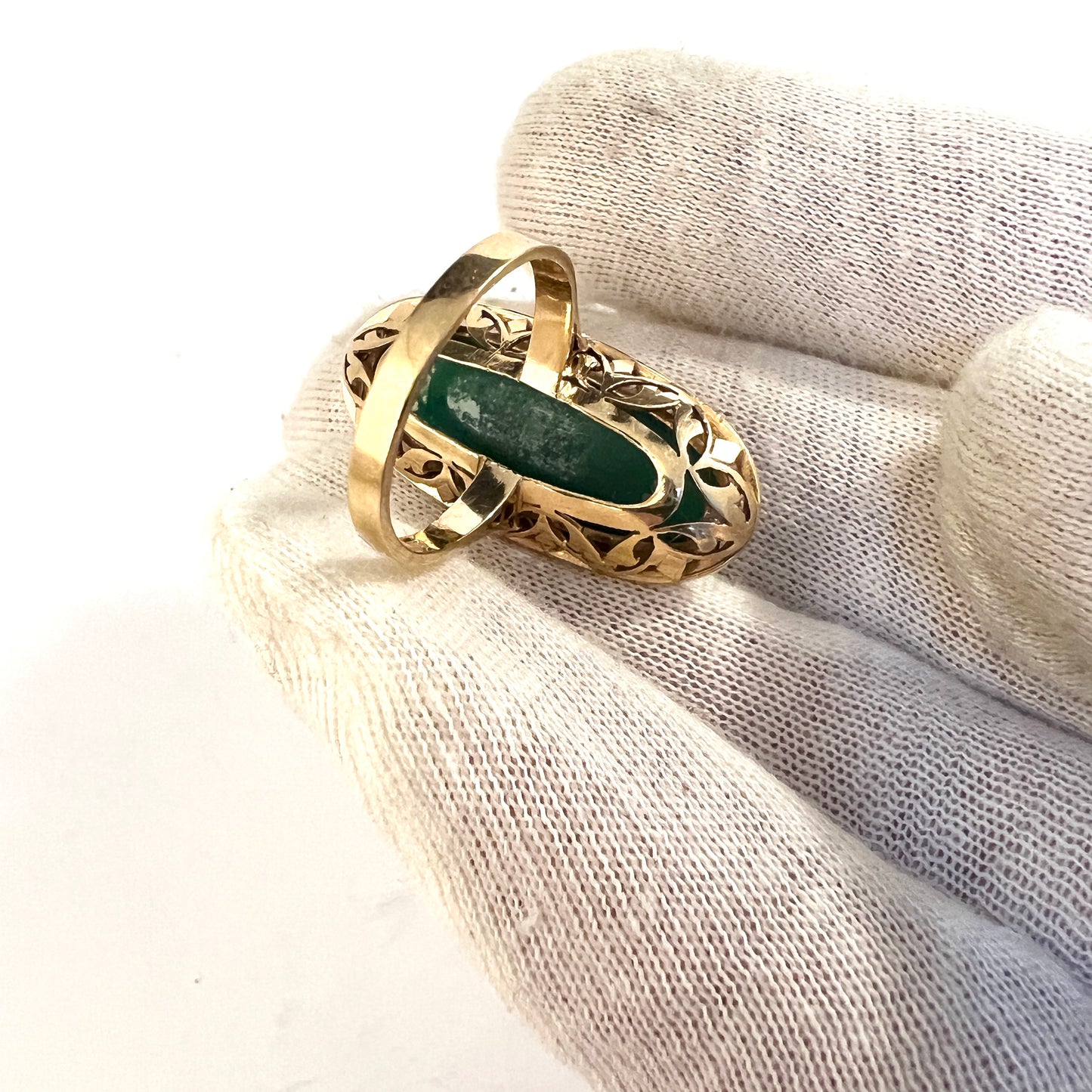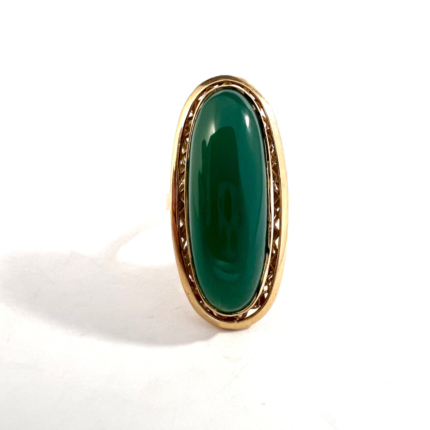 Vintage Mid-century 18k Gold Green Agate Cocktail Ring. 9.7 gram