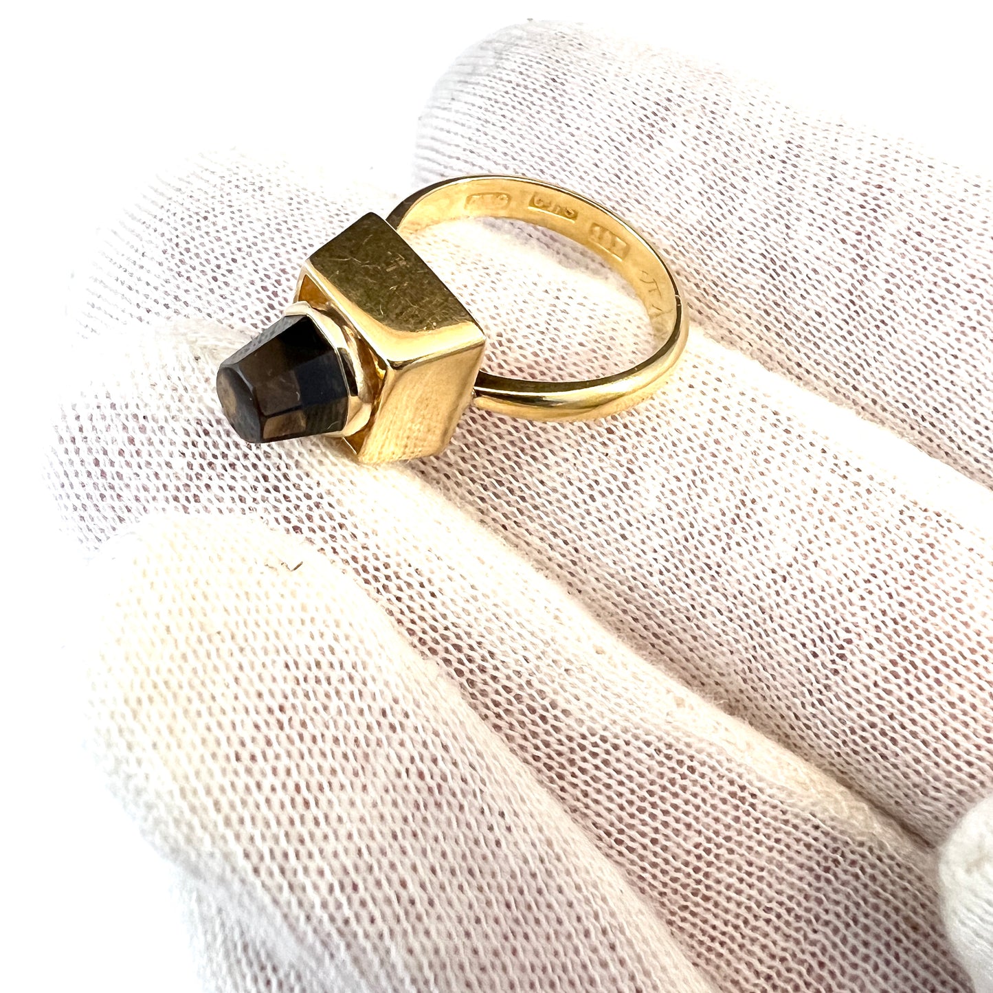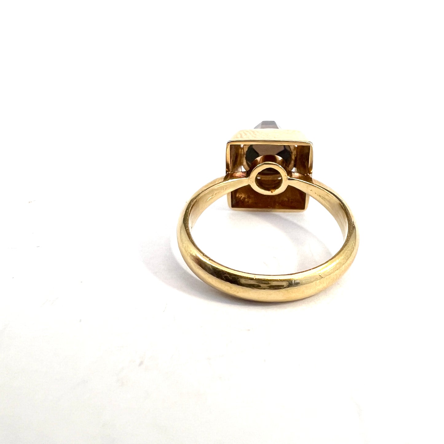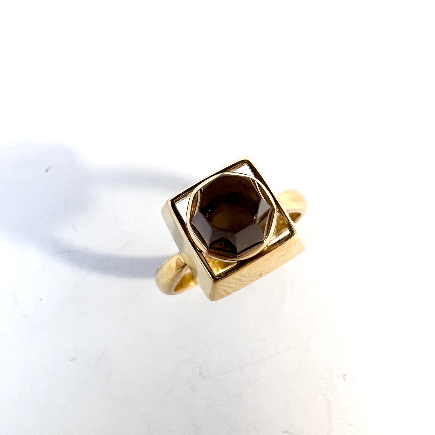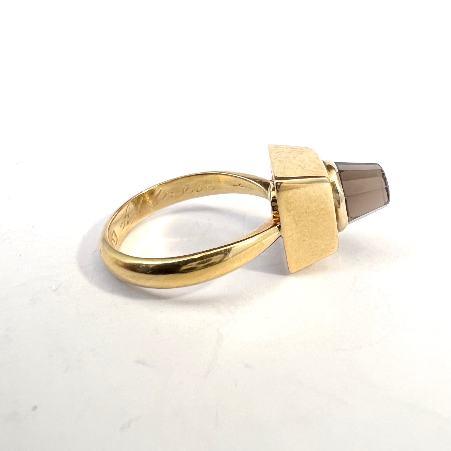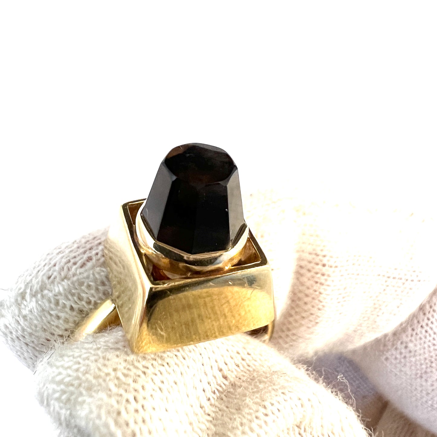 Vintage Modernist 18k Gold Smoky Quartz Ring.
