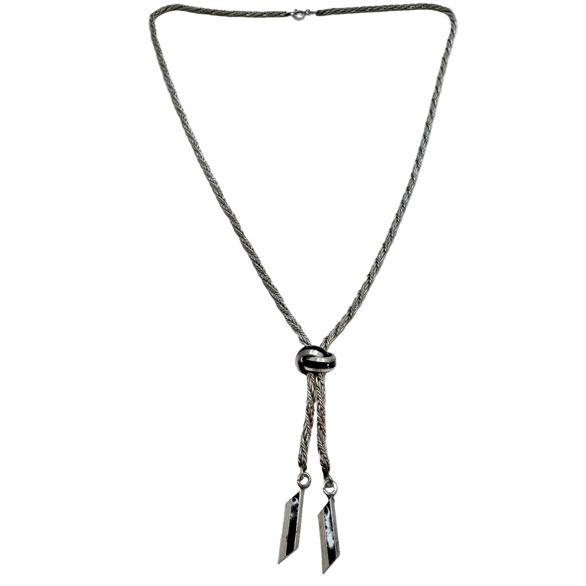 Vintage Sterling Silver Black Enamel Necklace. Possibly France.
