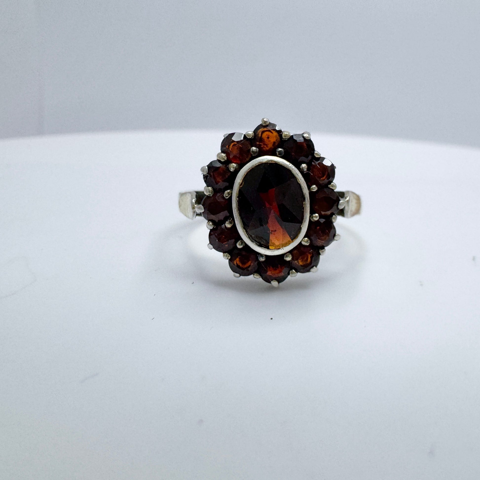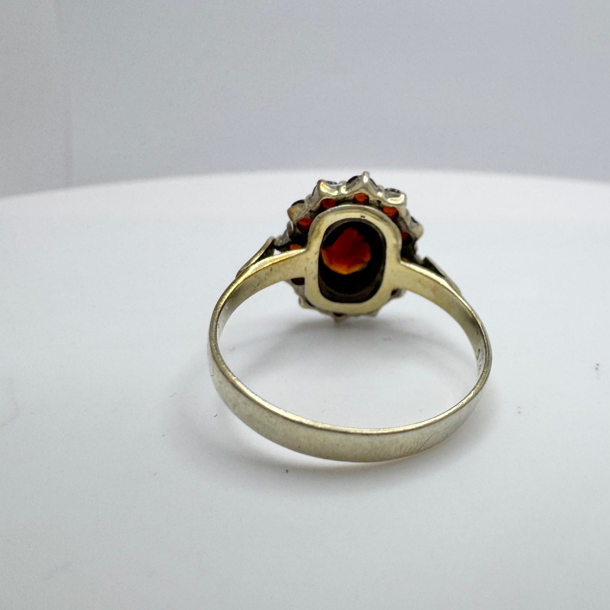 Beautiful vintage gilt solid silver garnet cluster ring. Hallmarked for sterling silver (925) Continental Europe, vintage.