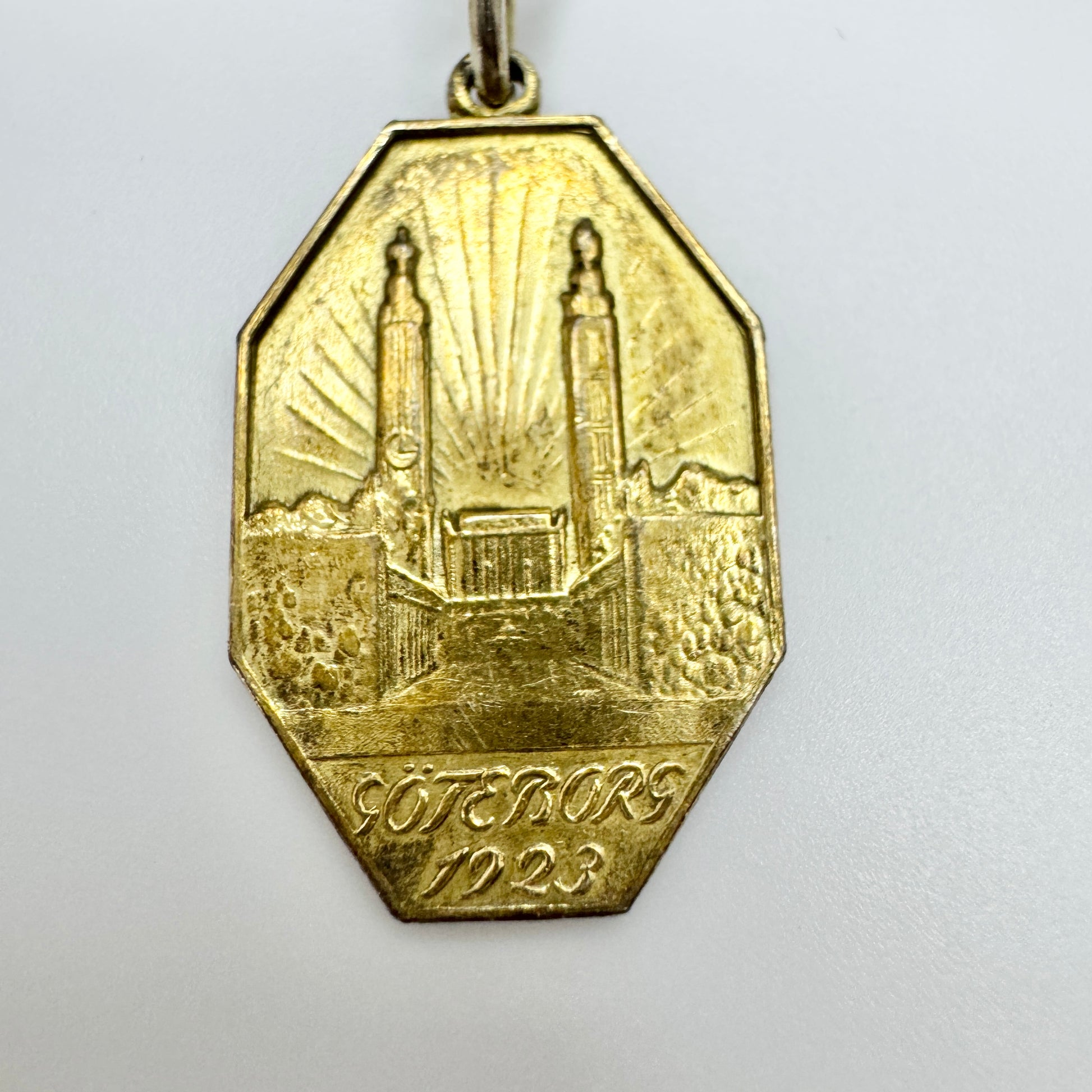 Beautiful antique gold gilt solid silver pendant necklace. From the Gothenburg Tercentennial Jubilee Exposition year 1923. Hallmarked for WA Bolin, Sweden 1923.