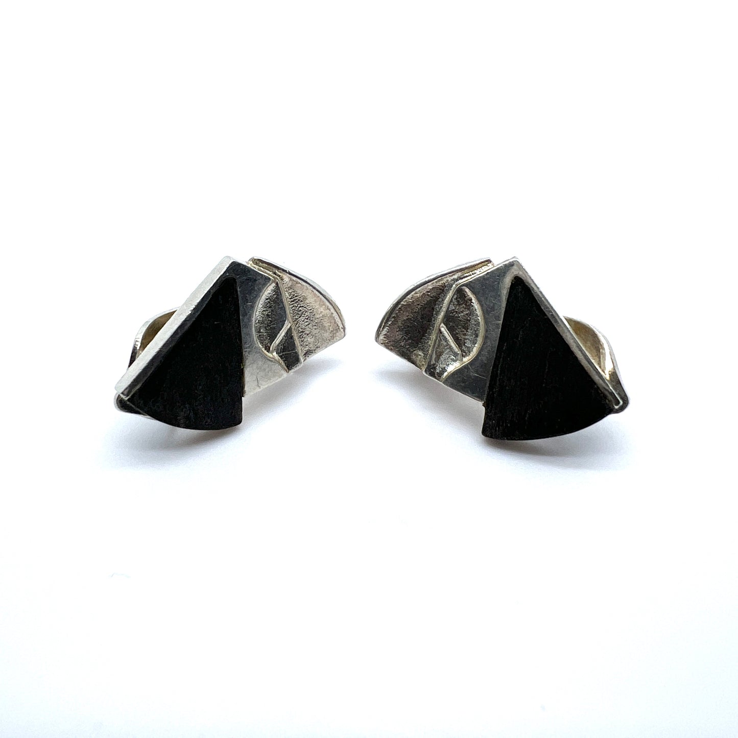Zoltan Popovits for Lapponia Finland 1987. Vintage Sterling Silver Ebony Earrings.