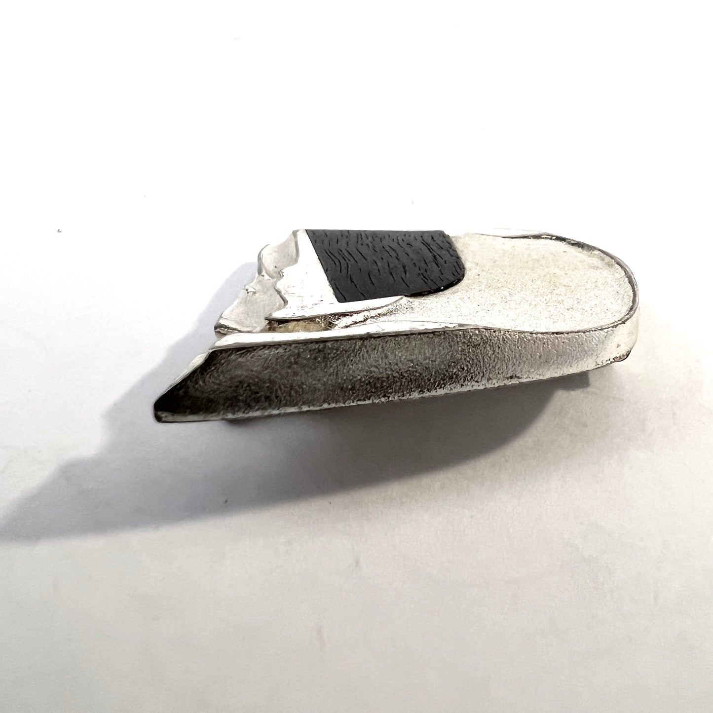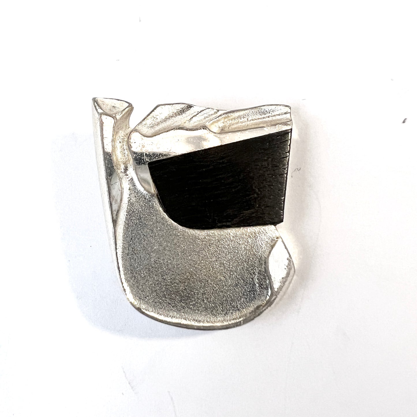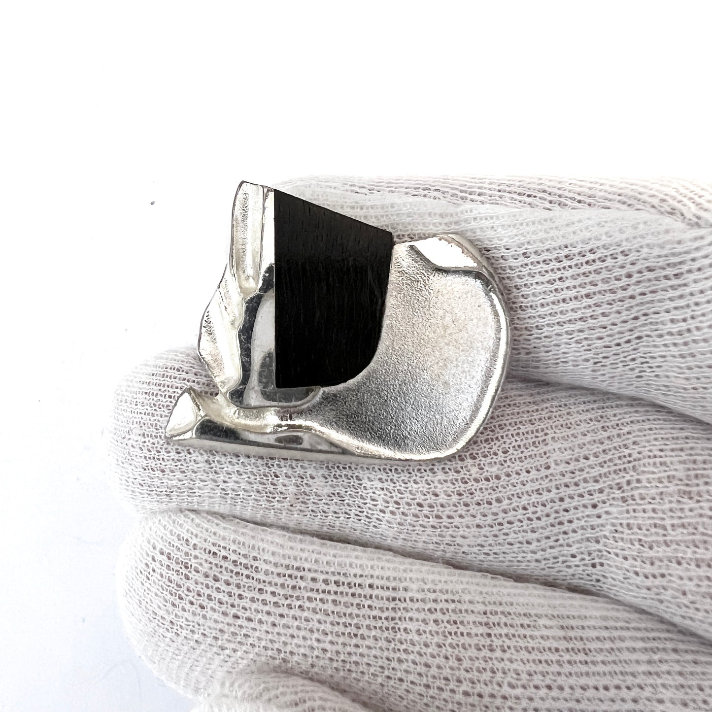 Zoltan Popovits for Lapponia Finland 1988. Vintage Sterling Silver Ebony Brooch.
