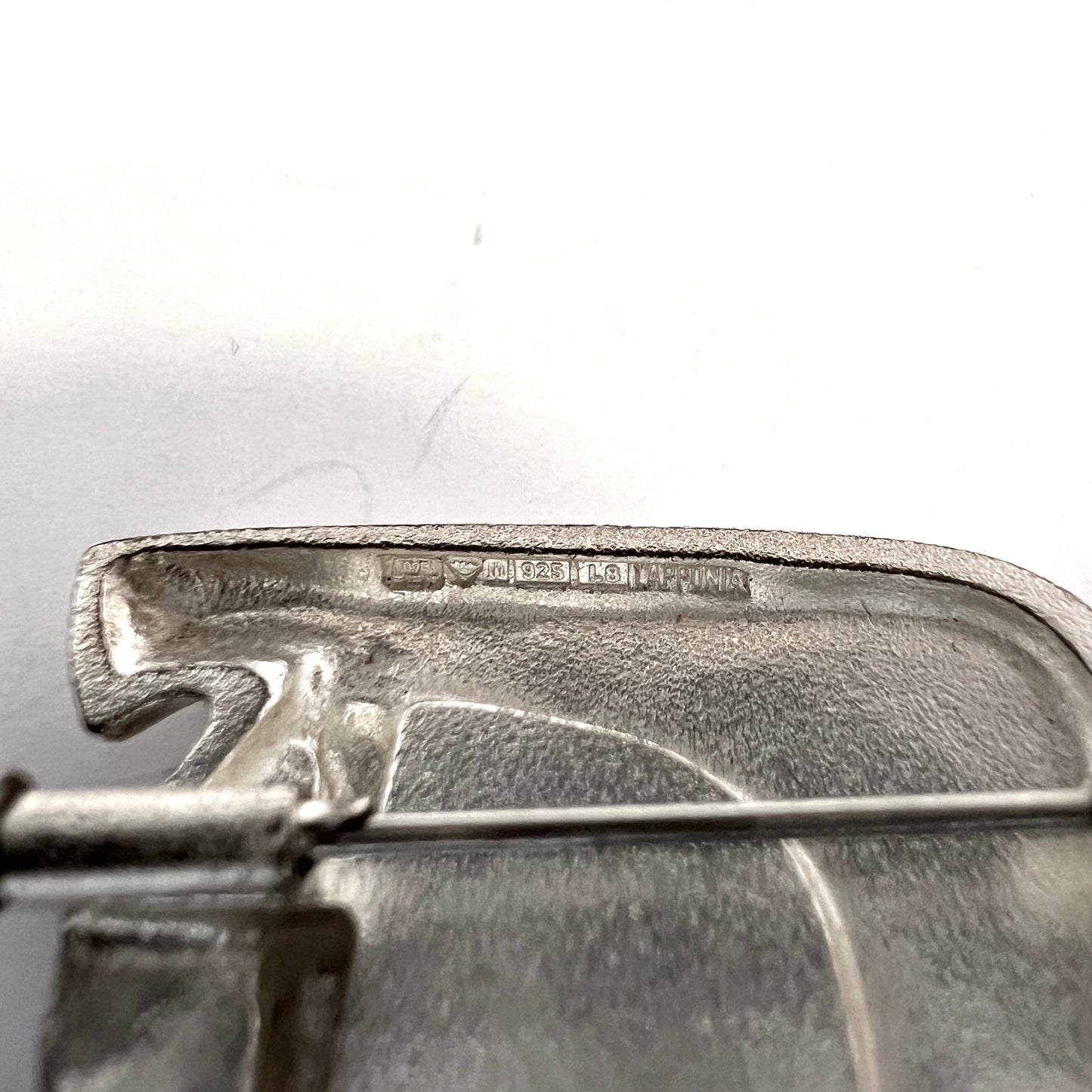 Wonderful and rare vintage sterling silver ebony designer brooch. Fully hallmarked for Lapponia Finland year 1988. Design by renowned Zoltan Popovits.