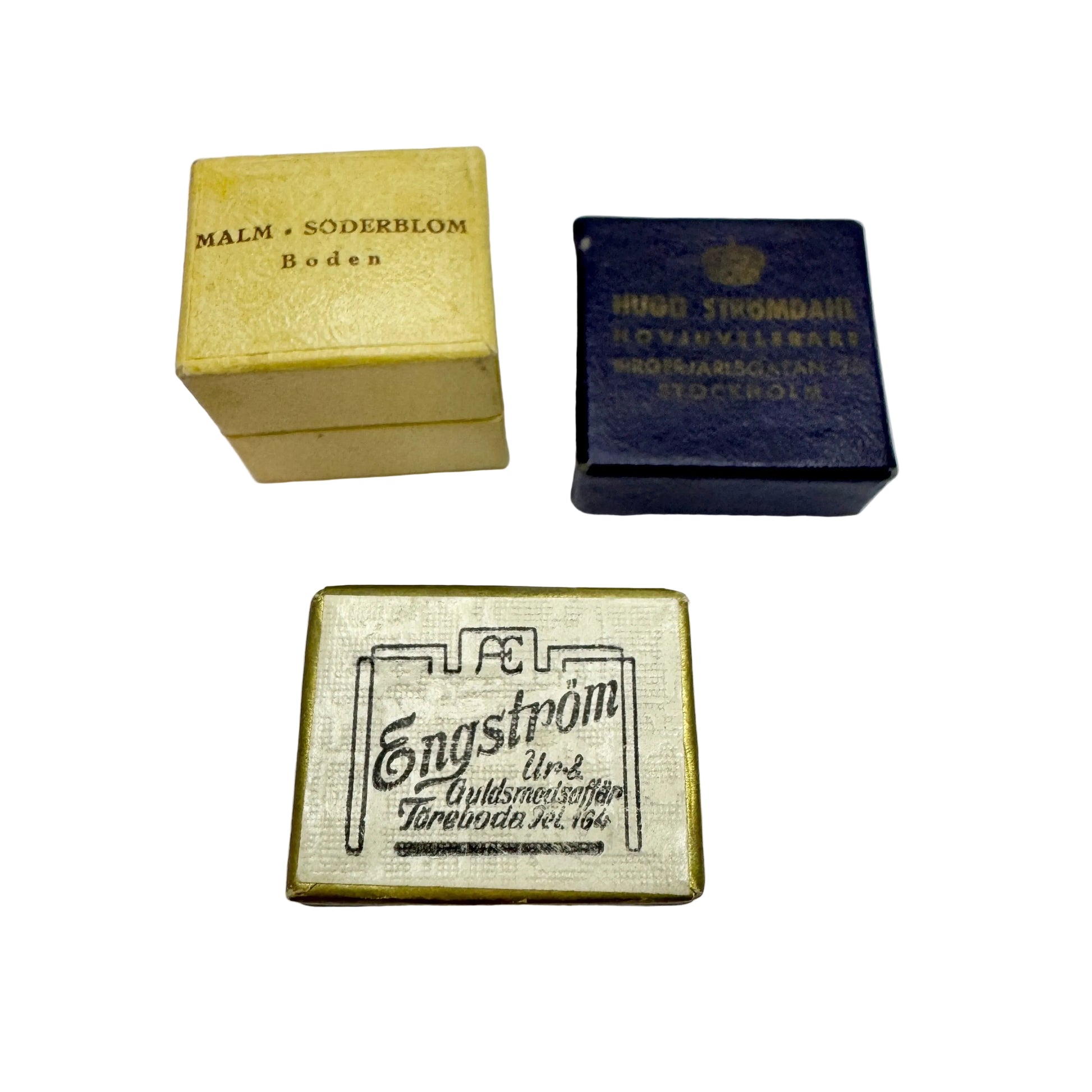 2 charming vintage / antique Swedish jewelry boxes. Two ring boxes and the blue one is for multi use.