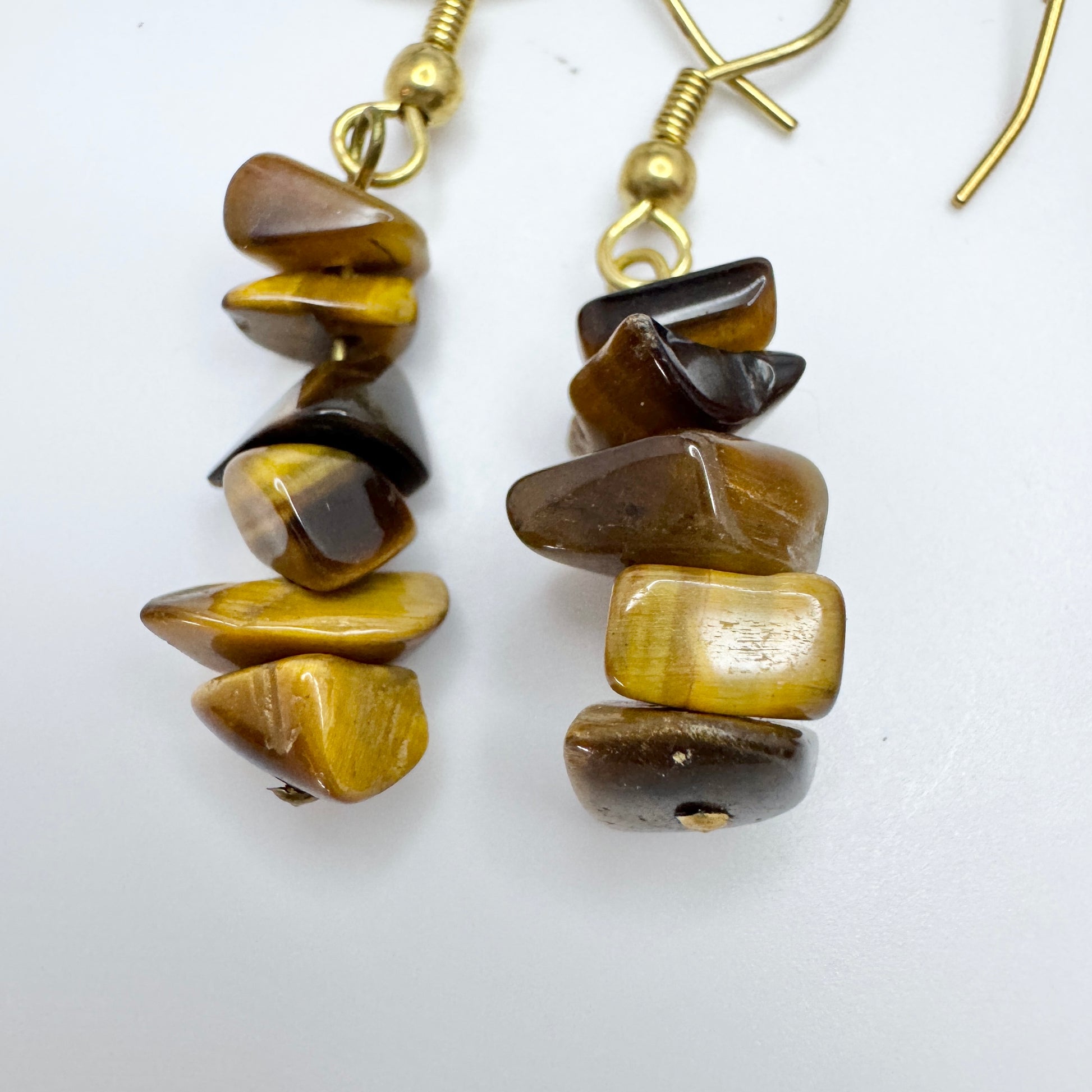 Four pair of earrings. Aventurine, tiger's eye, carnelian and goldstone (aventurine glass) From closed jewlery shop, not vintage, never used.