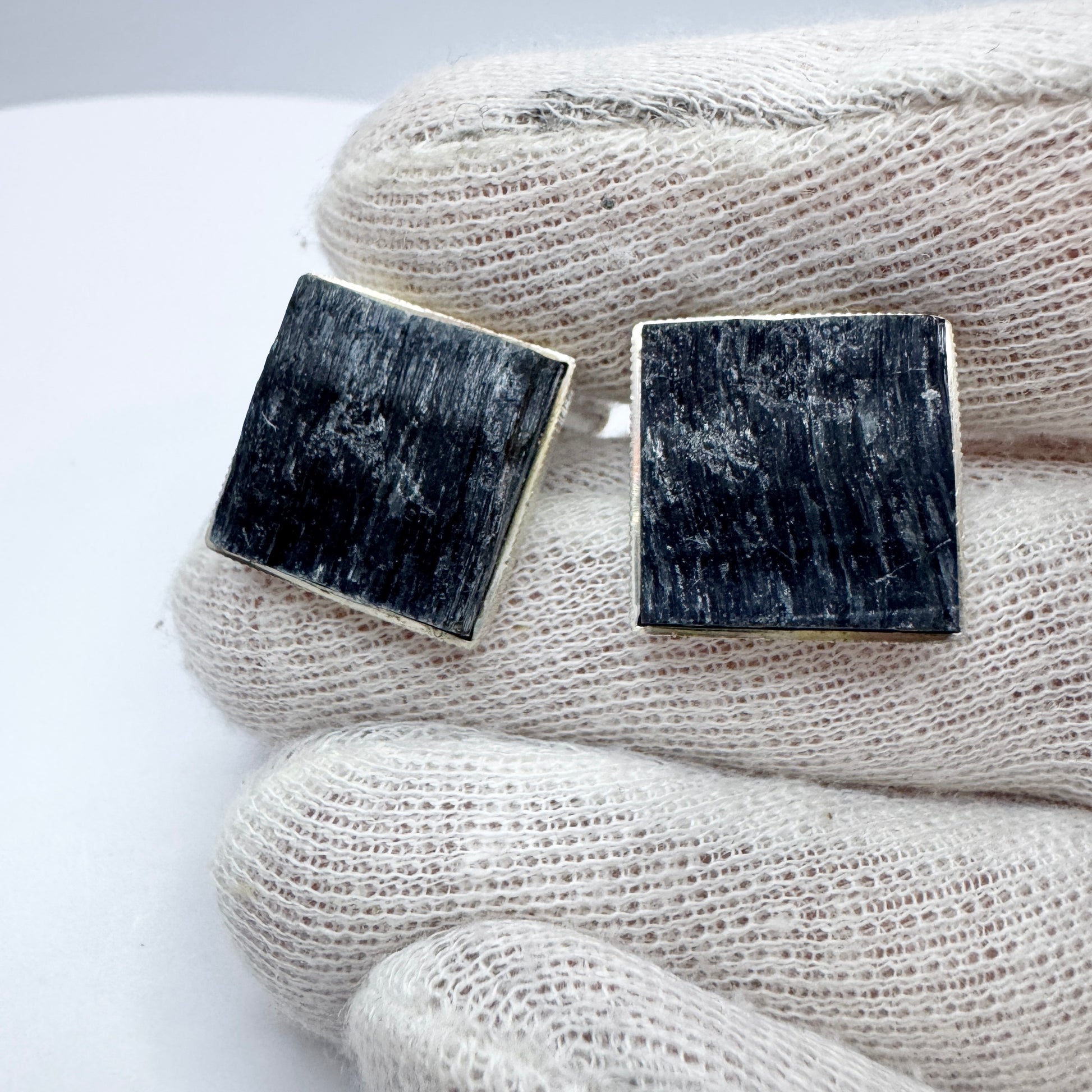 Martti Viikinniemi, Finland 1968. Vintage Solid Silver Obsidian Cufflinks.