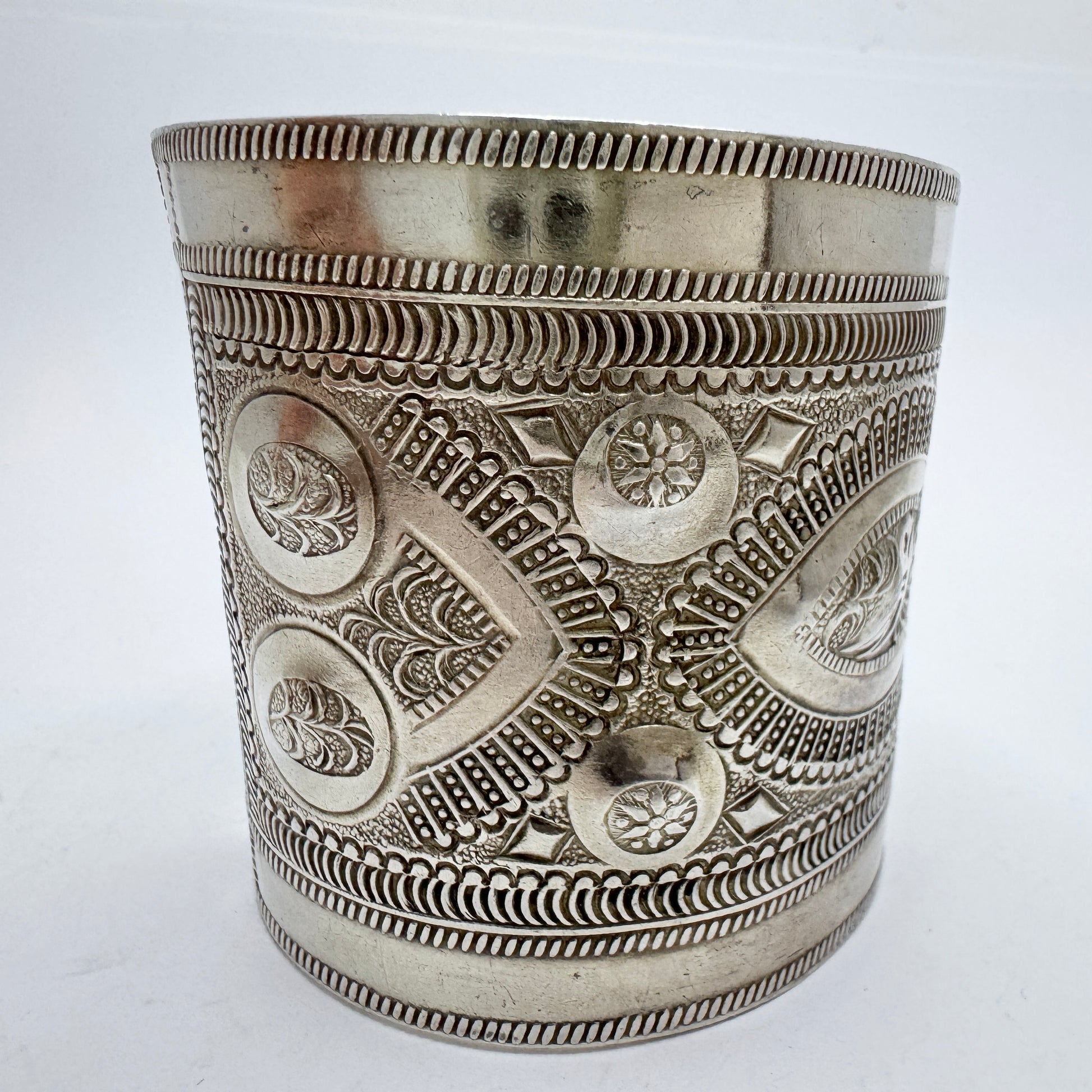 North Africa. Chunky 106gram Vintage Solid Silver Fish Flower Cuff Bracelet.