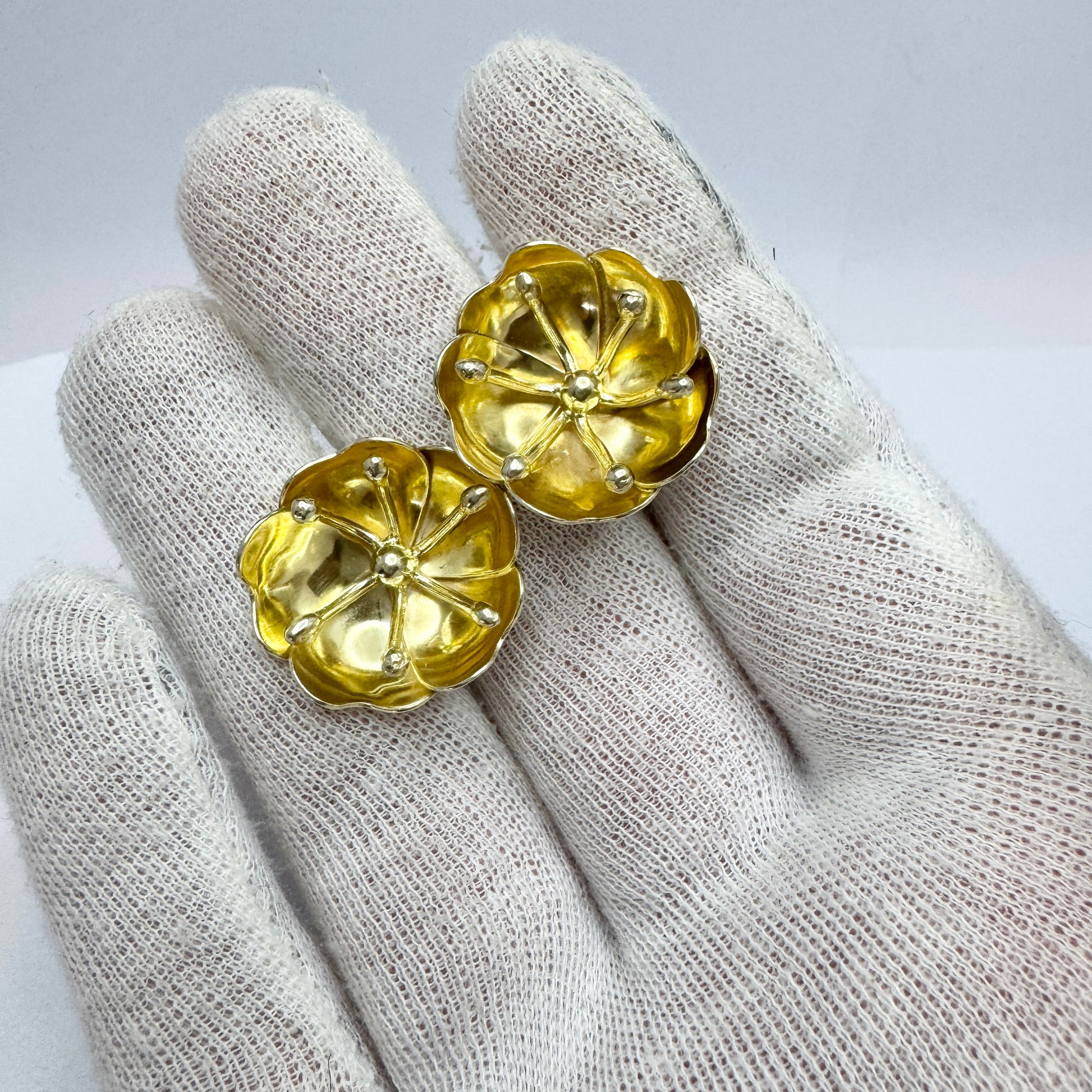 Wonderful and much sought after vintage gold gilt sterling silver pair of earrings. Hallmarked for renowned Peter von Post, Stockholm, Sweden year 1976.