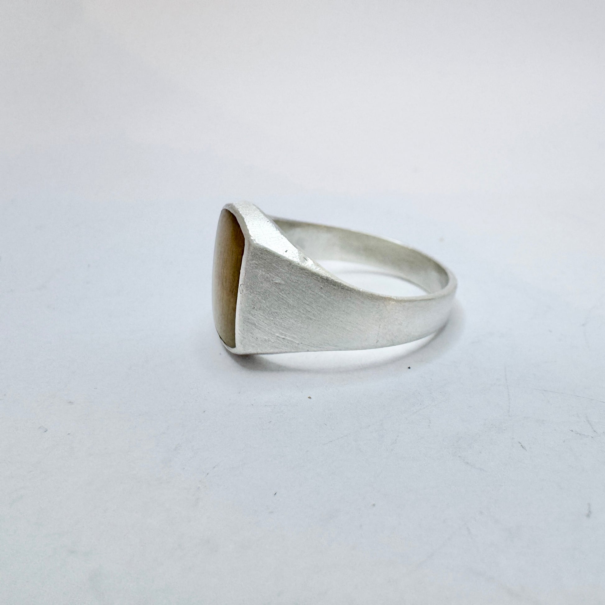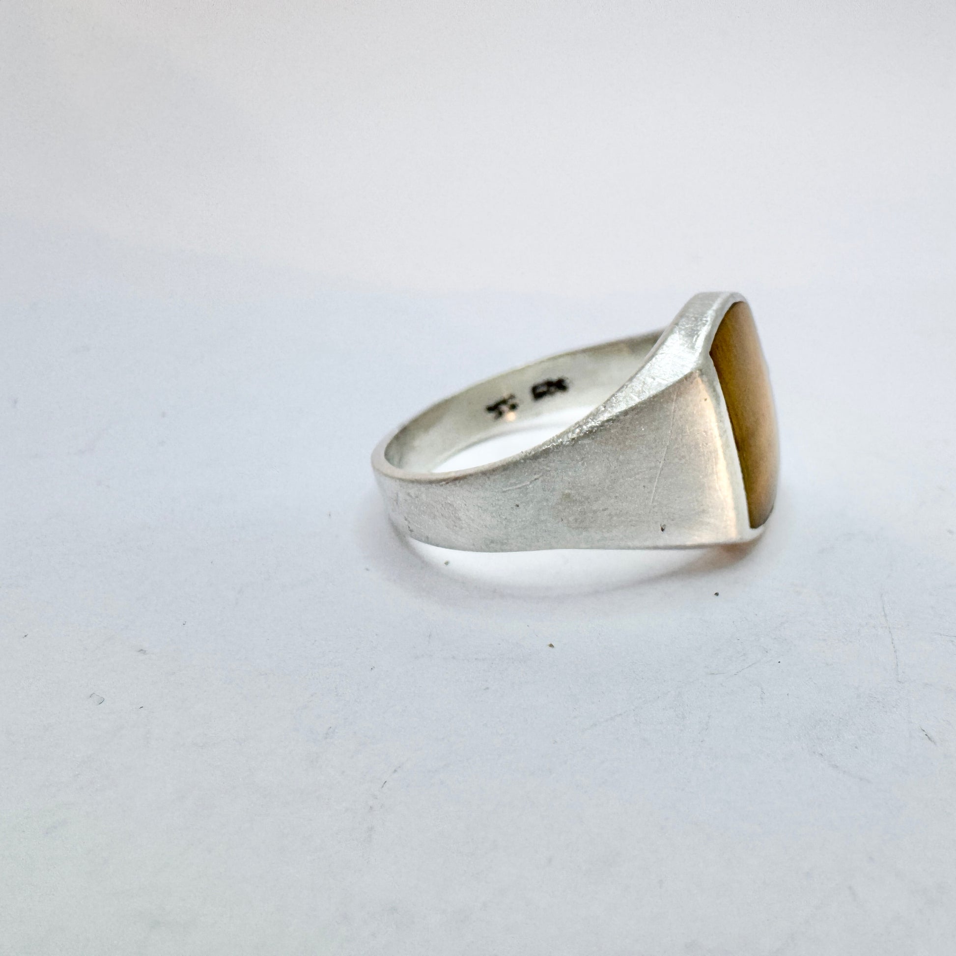 Charming vintage sterling silver tiger's eye signet ring. Hallmarked for sterling silver and an unidentified makers mark. Ca 1970.