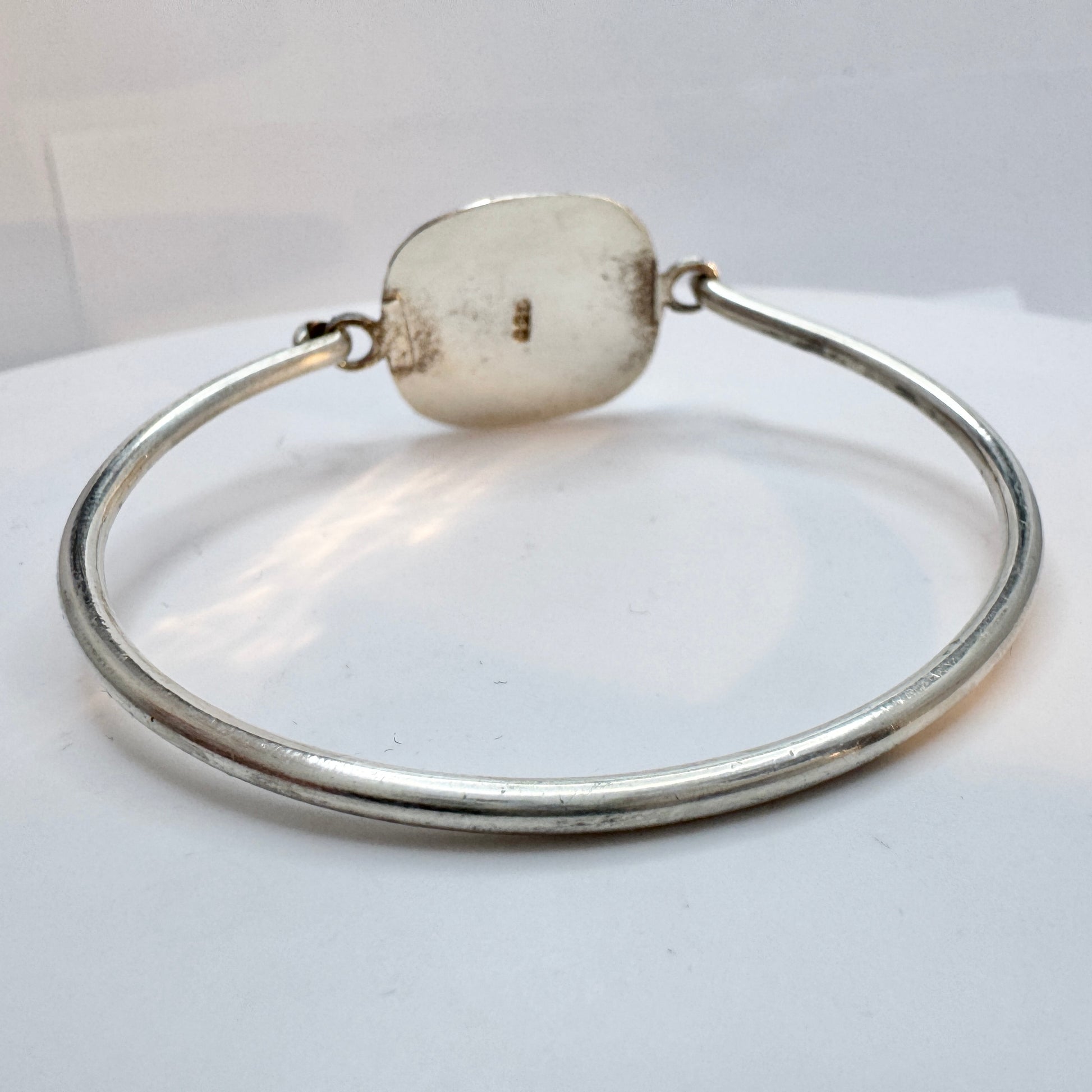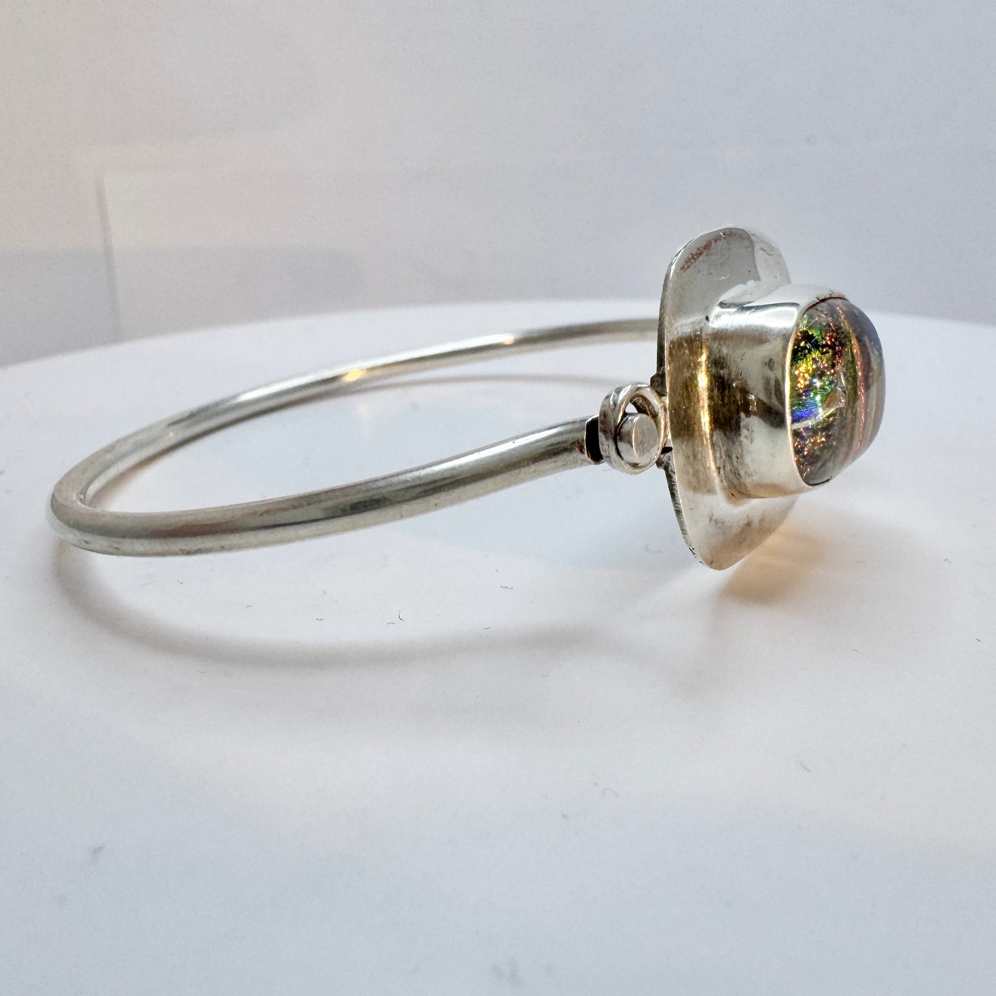 Vintage c 1980s. Sterling Silver Art Glass Hinged Bangle Bracelet.