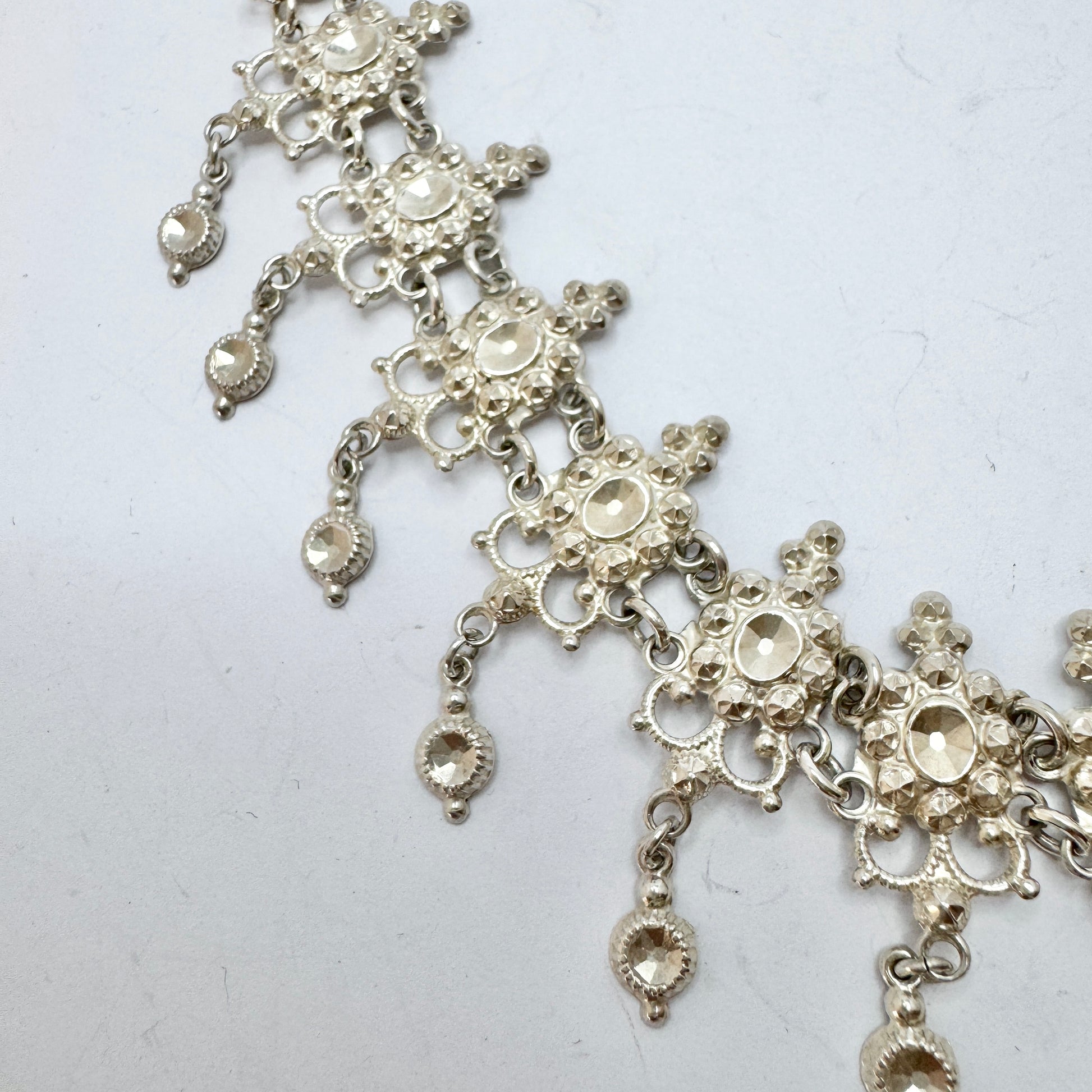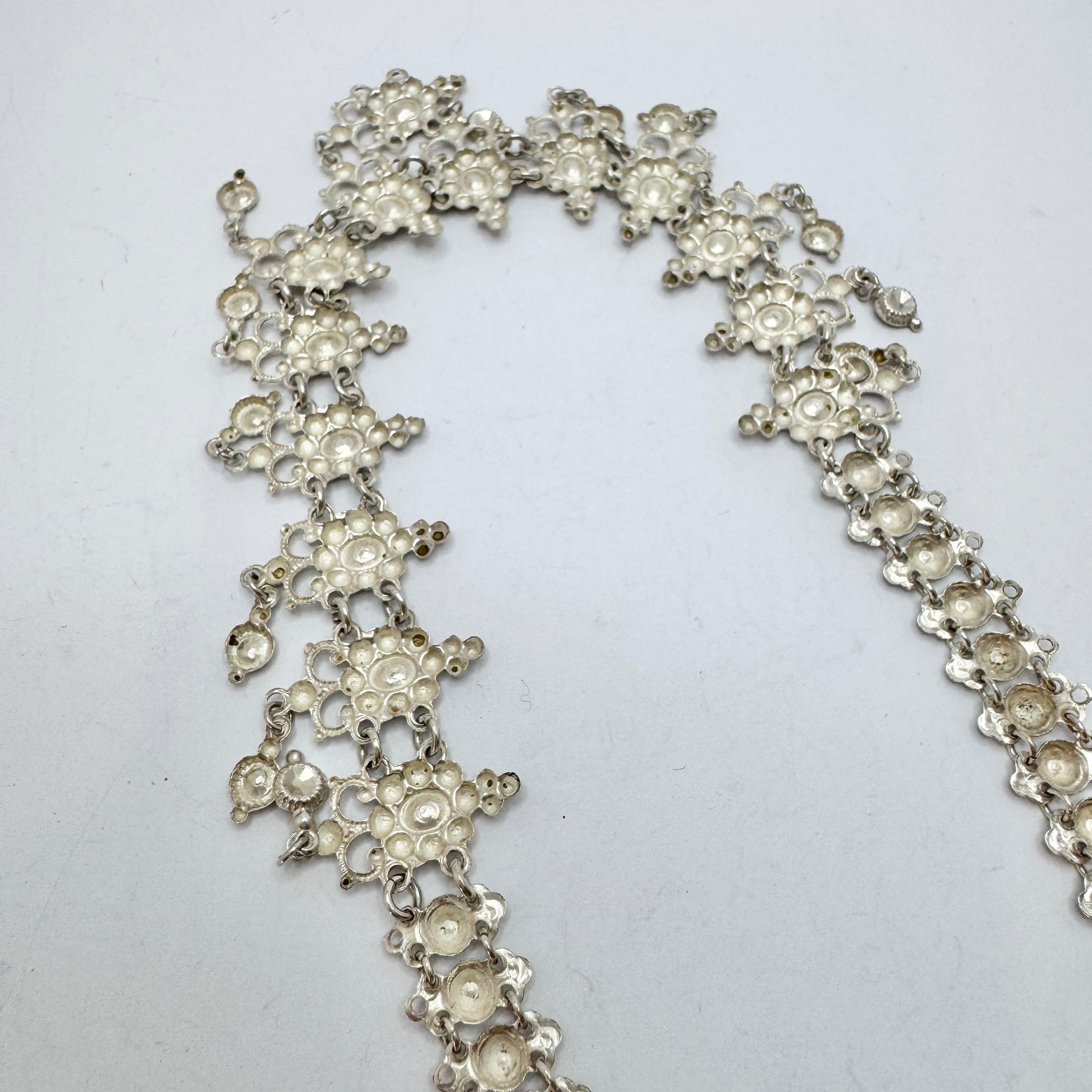 Wonderful and delicate vintage / antique solid silver fringe necklace. Hallmarked for 830 silver, continental Europe early 1900s