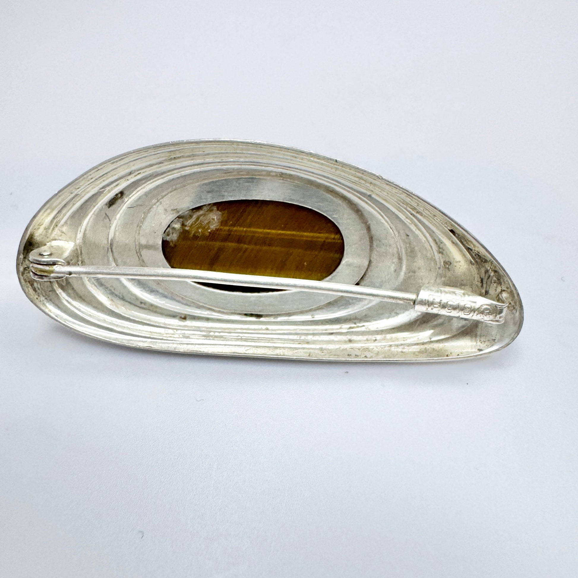 Elis Kauppi, Kupittaan Kulta. Finland 1960. Vintage Solid Silver Tiger's Eye Brooch