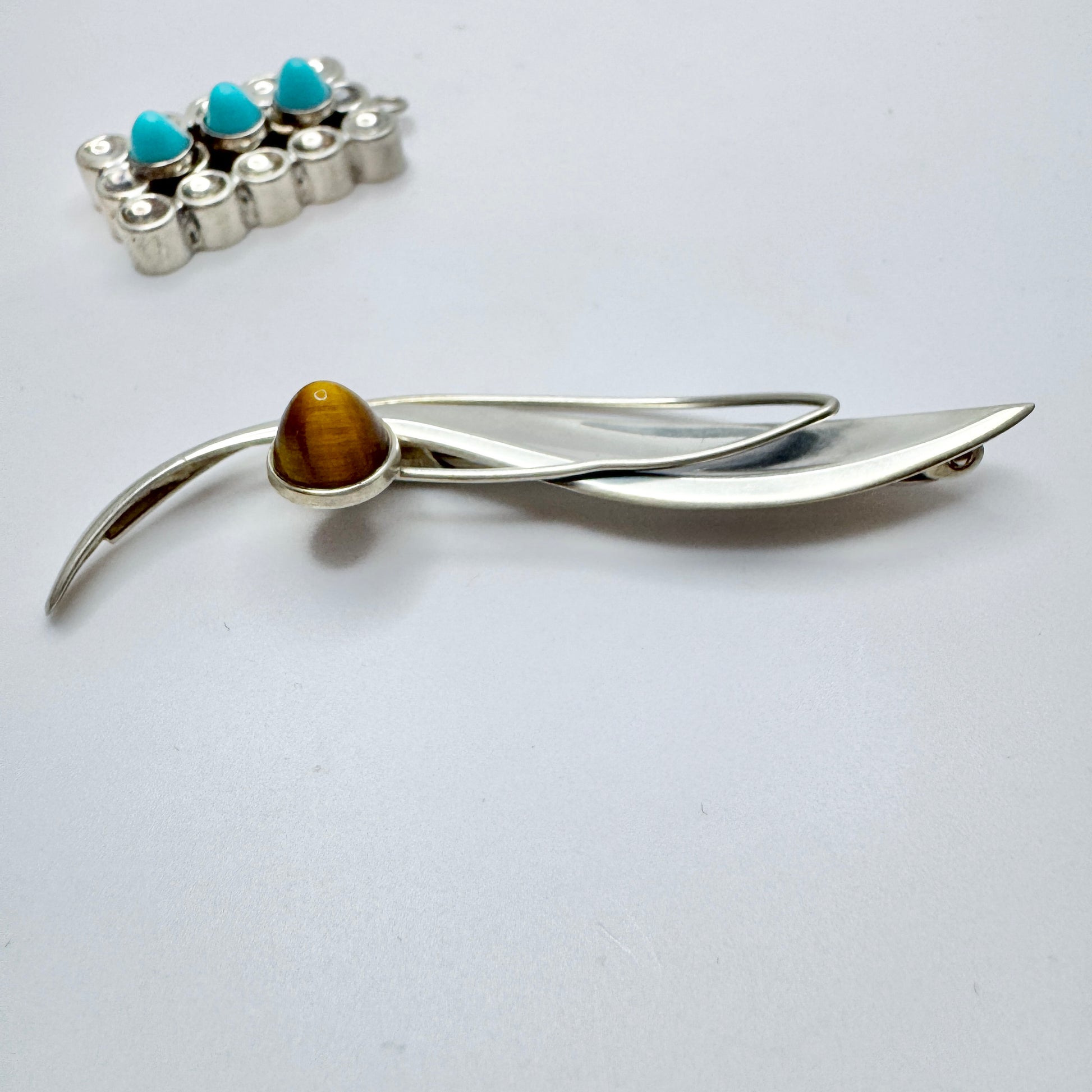 Beautiful vintage solid silver tiger's eye brooch hallmarked for Elis Kauppi, Kupittaan Kulta Finland 1962. Pendant is missing the bale, that probably also was hallmarked for Elis Kauppi, Kupittaan Kulta.