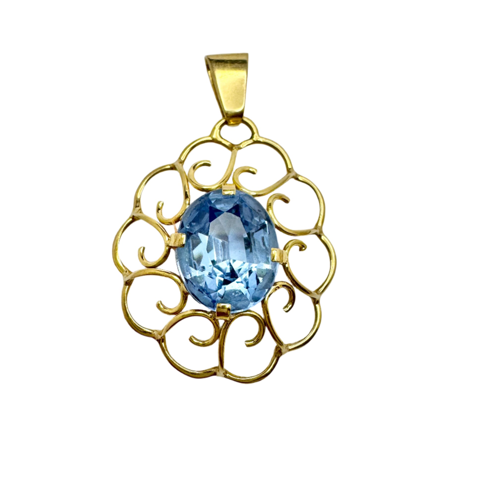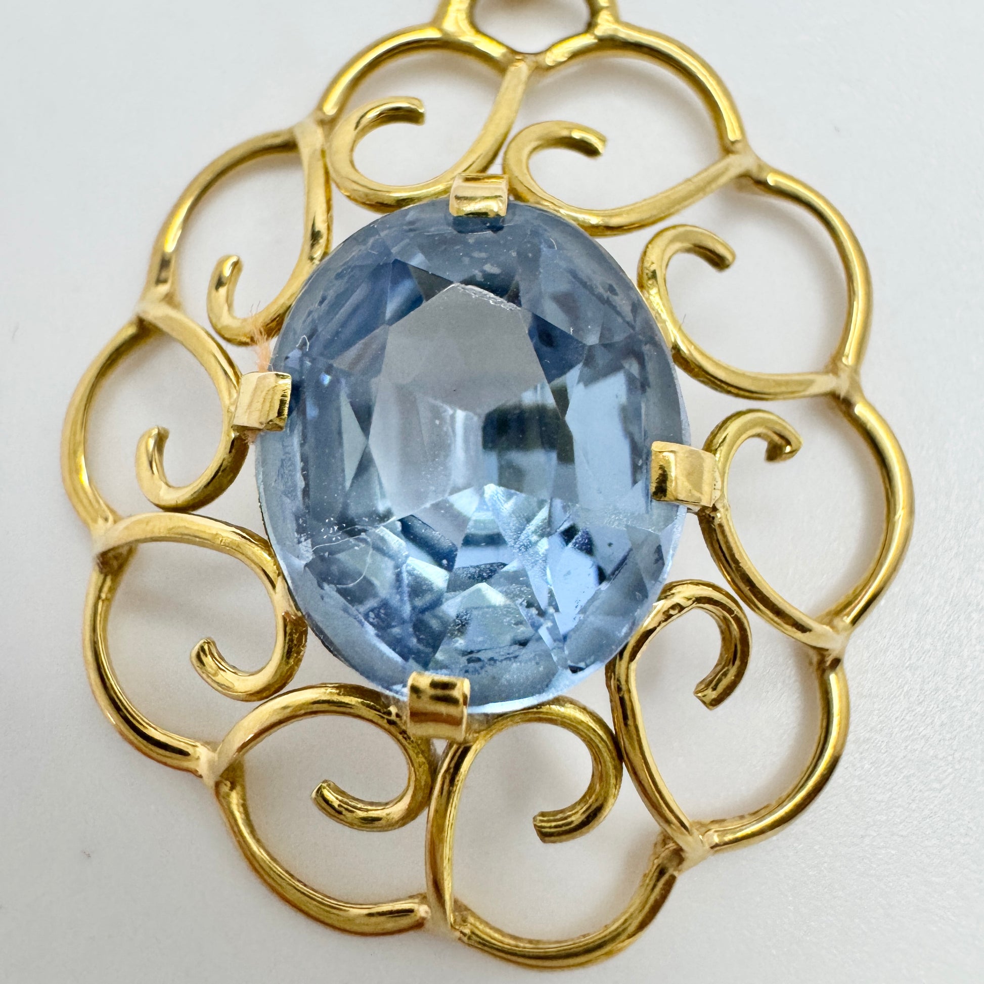 G Dahlgren, Sweden 1949, Vintage 18k Gold Blue Synthetic Spinel Pendant