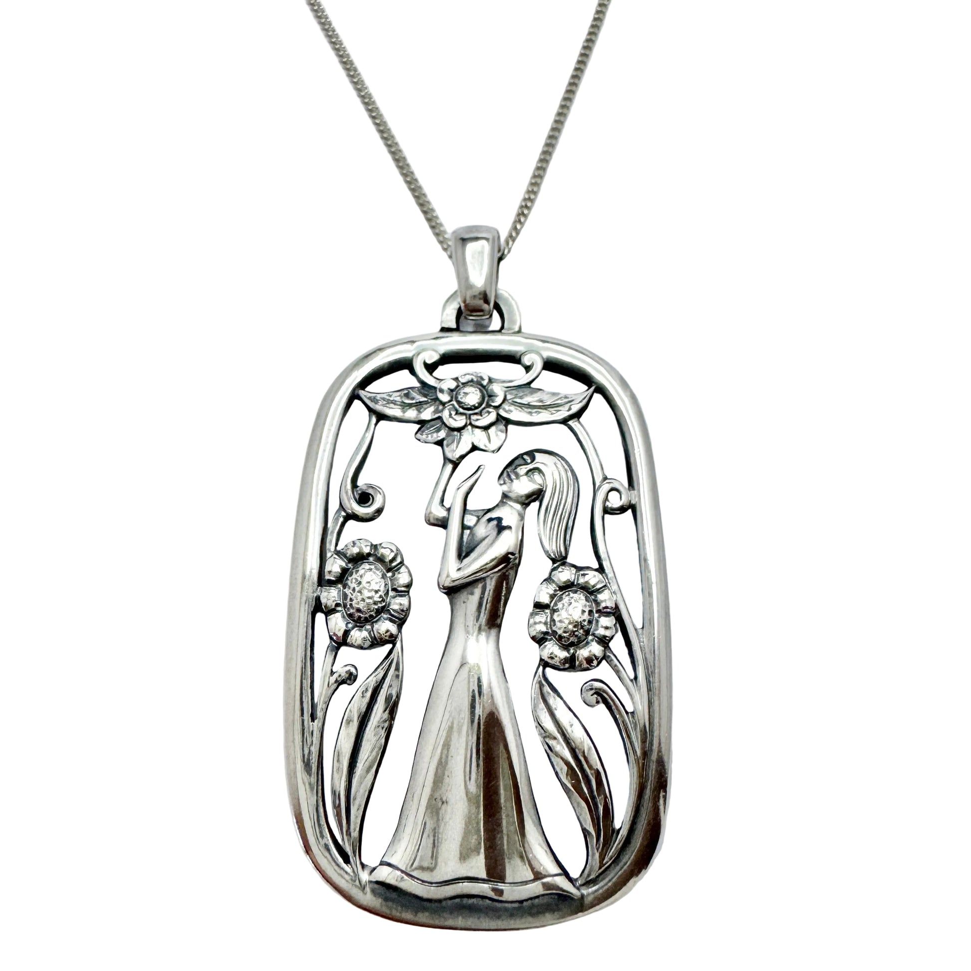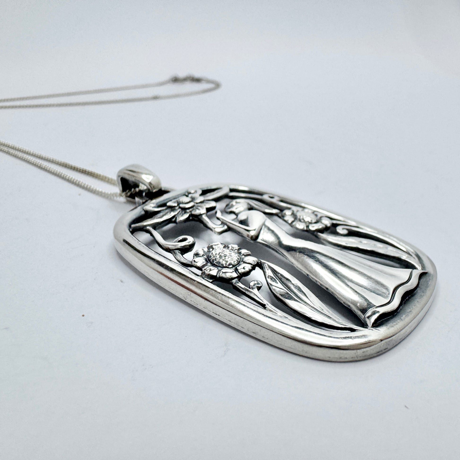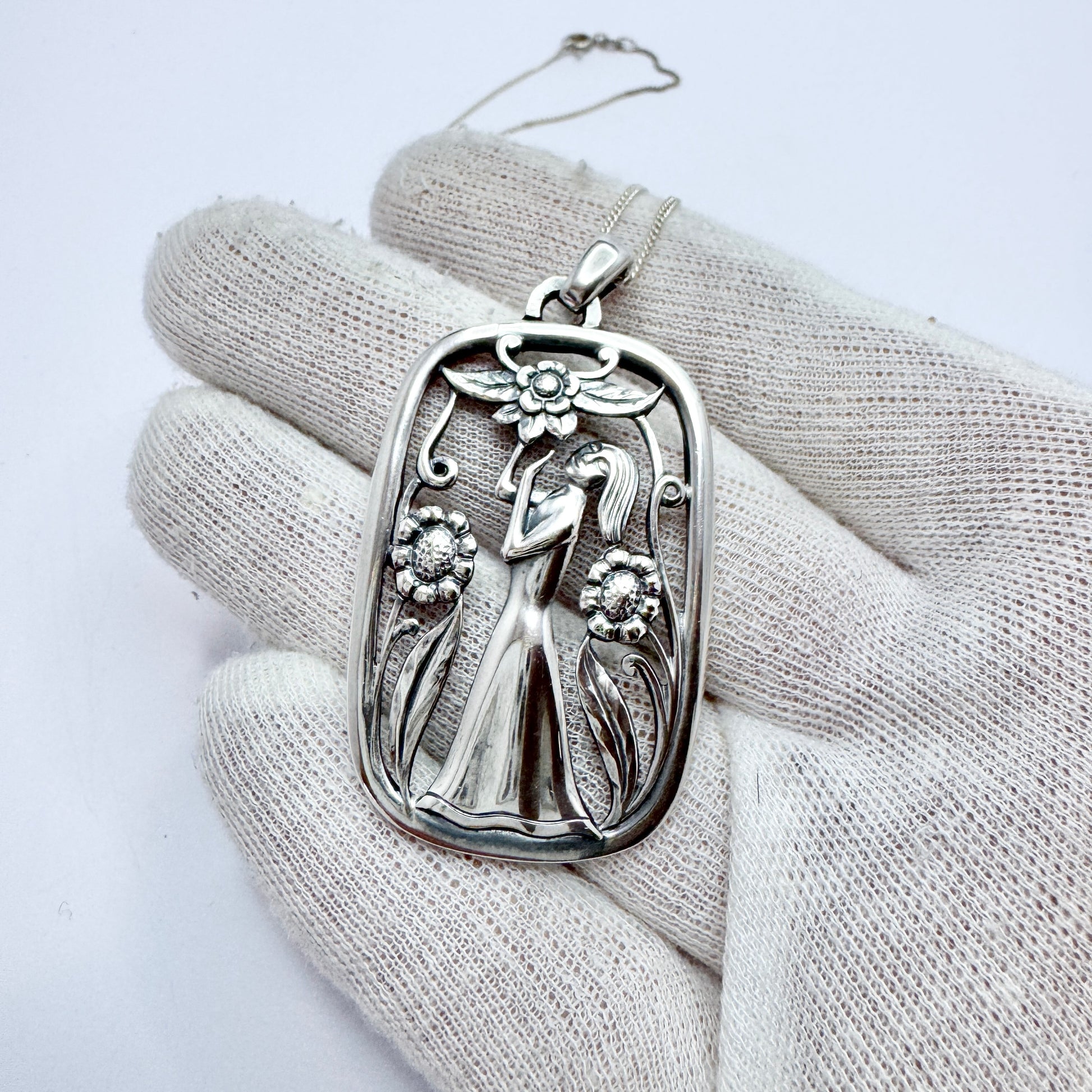 Wonderful vintage sterling silver pendant + chain. Pendant hallmarked for G Dahlgren, Sweden year 1950. Chain hallmarked for sterling silver.