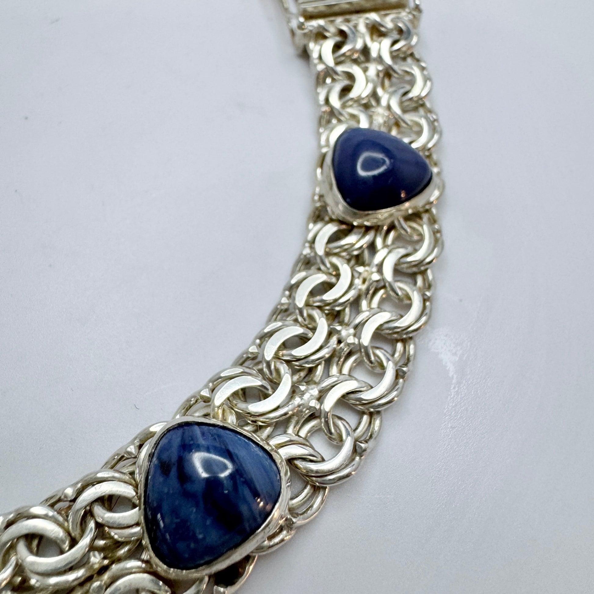 G Nilsson, Sweden 1970s. Vintage Stering Silver Bergslagen-stone Double Bismark Bracelet.