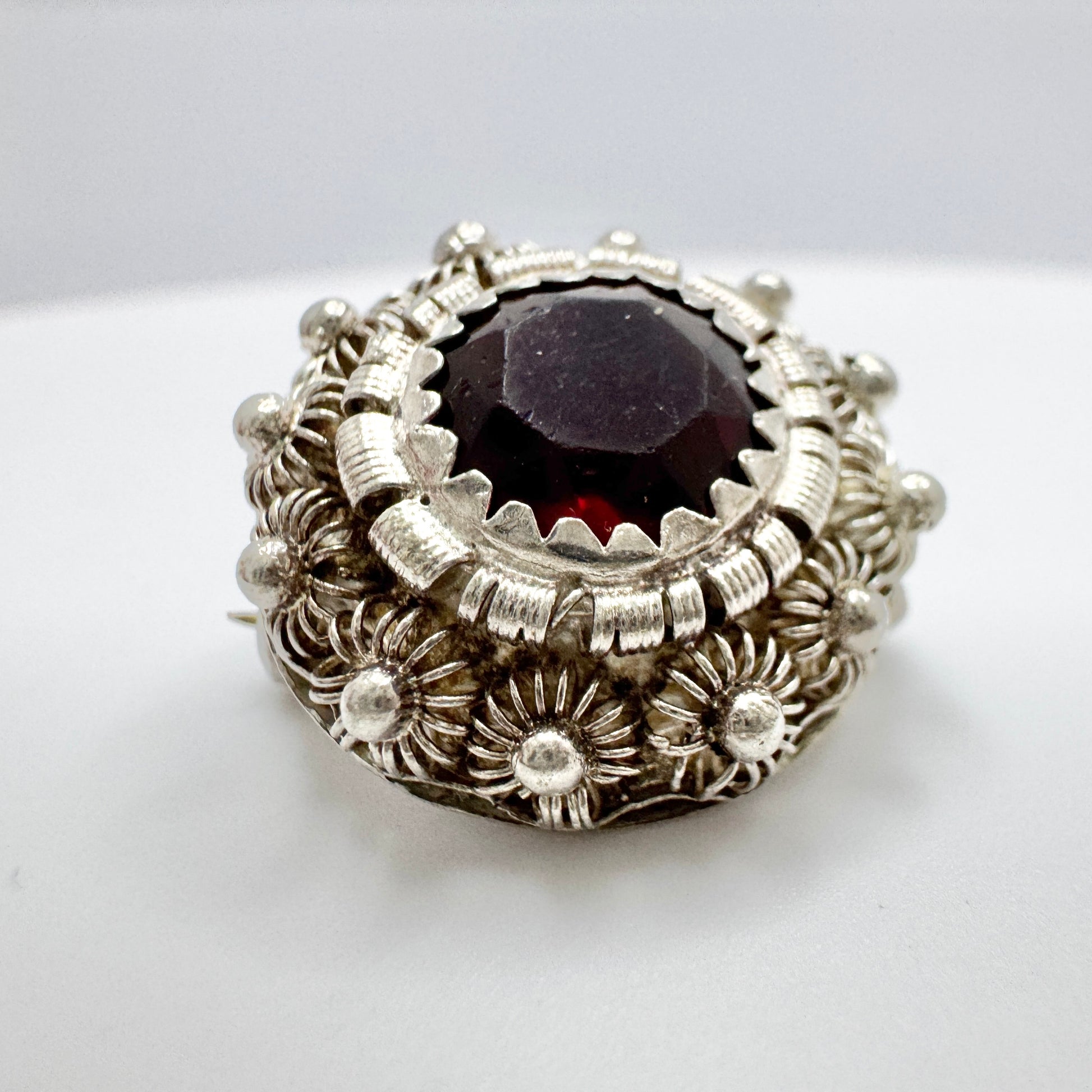 Håkan Lärka, Sweden 1850s. Antique Silver Paste Button Converted to Brooch.