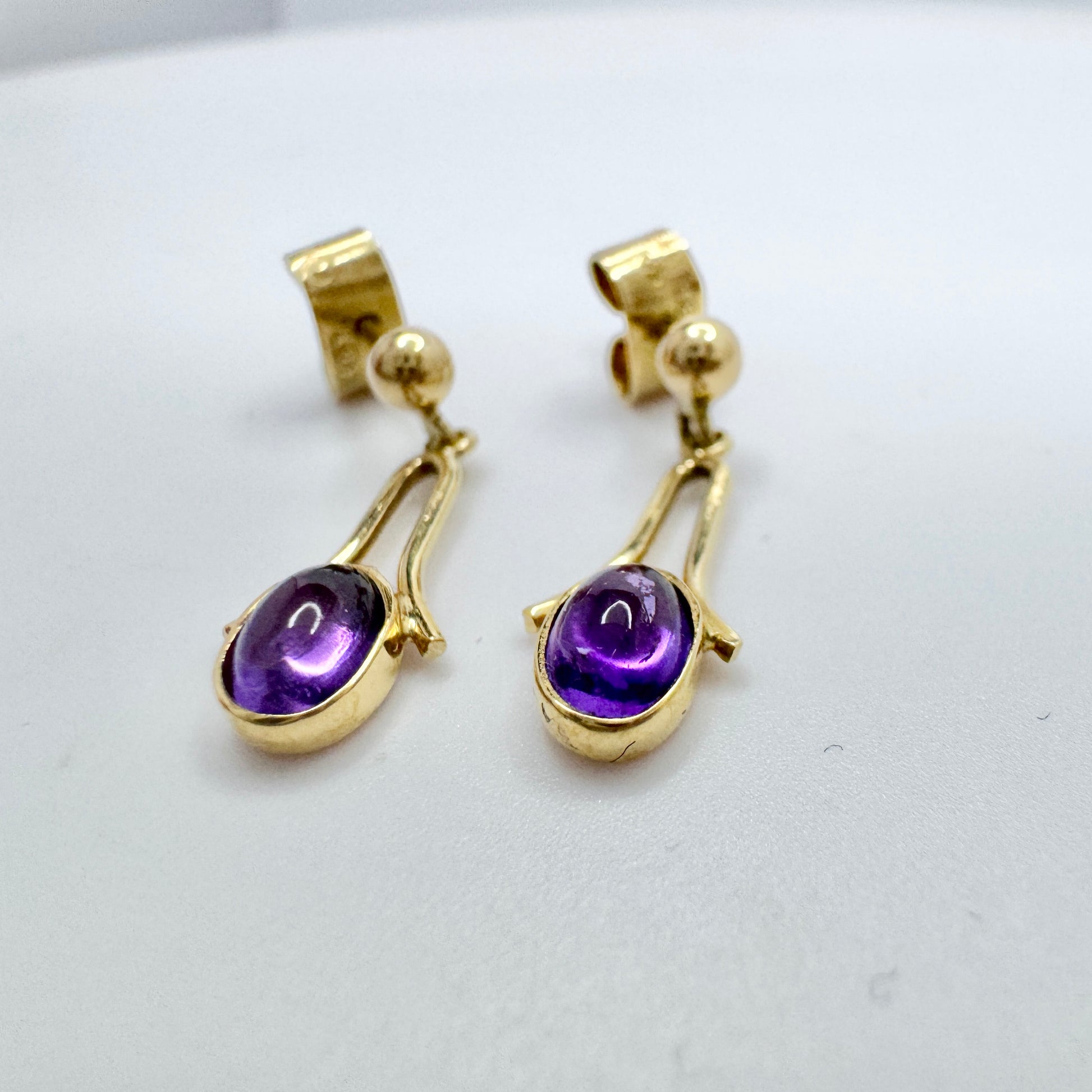 Hedbergs, Sweden 1961. Vintage 18k Gold Amethyst Dangle Earrings.
