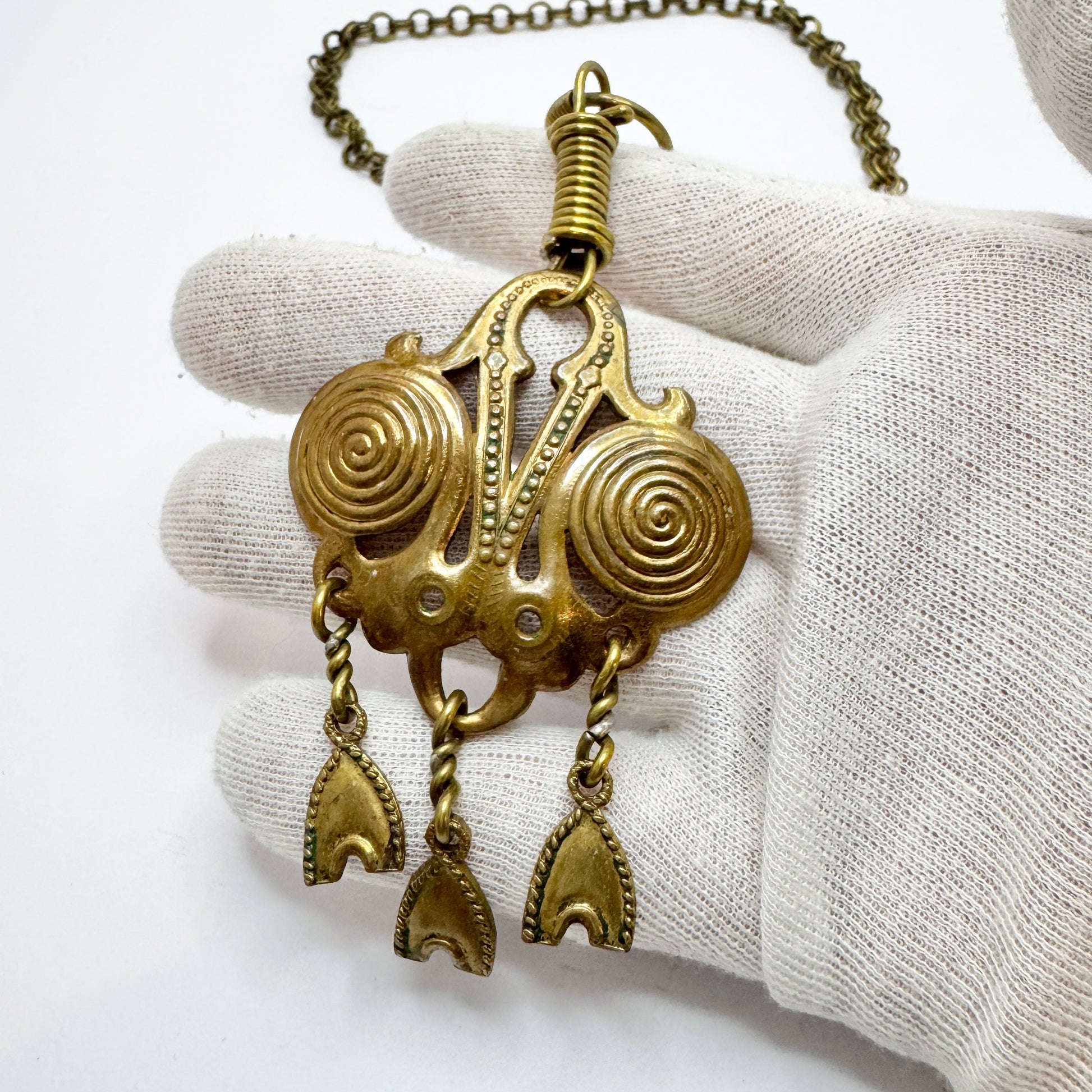 Beautiful and large vintage bronze pendant necklace. Marked for Kalevala Koru, Finland c 1970s.