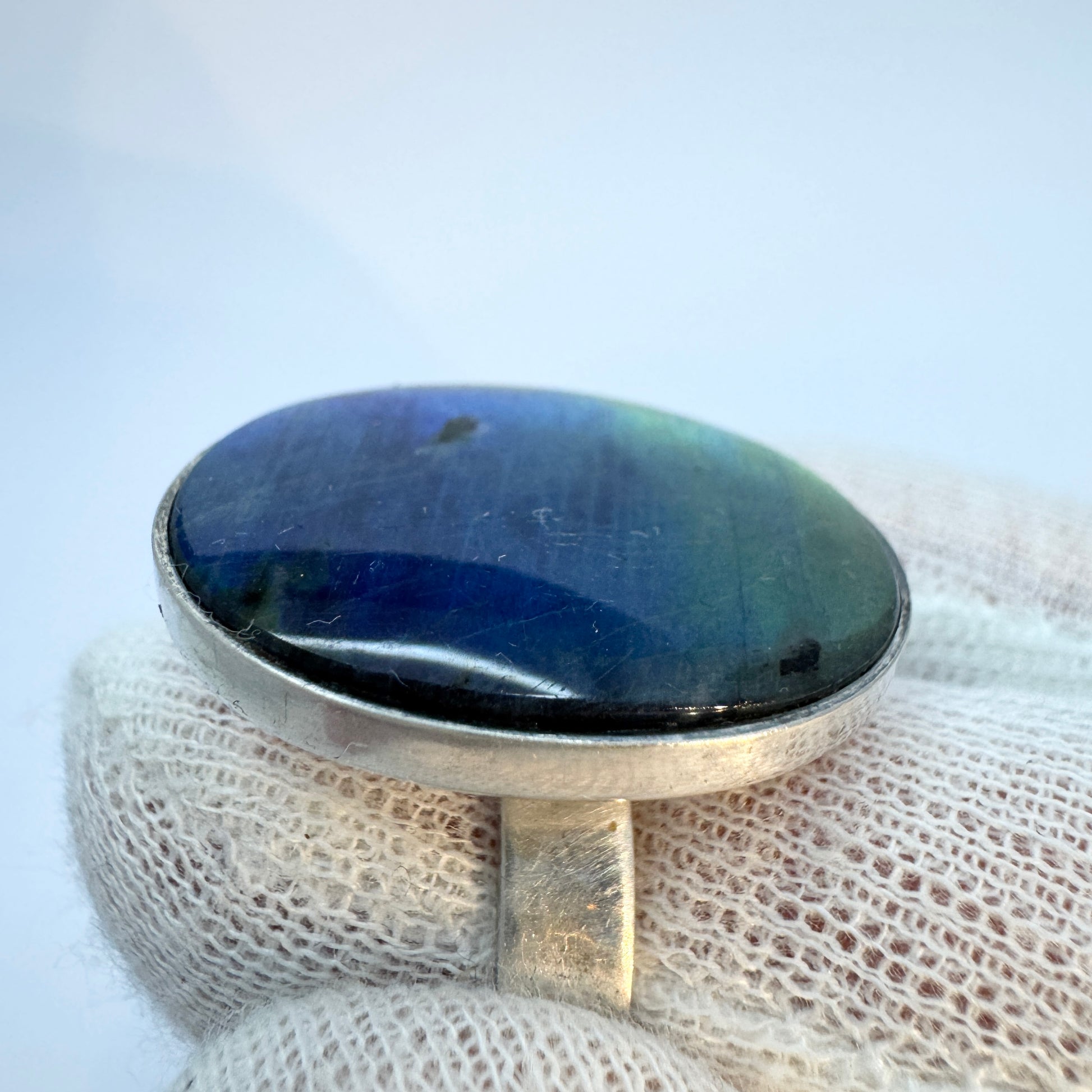 Kaunis Koru, Finland. Vintage Sterling Silver Spectrolite Ring.