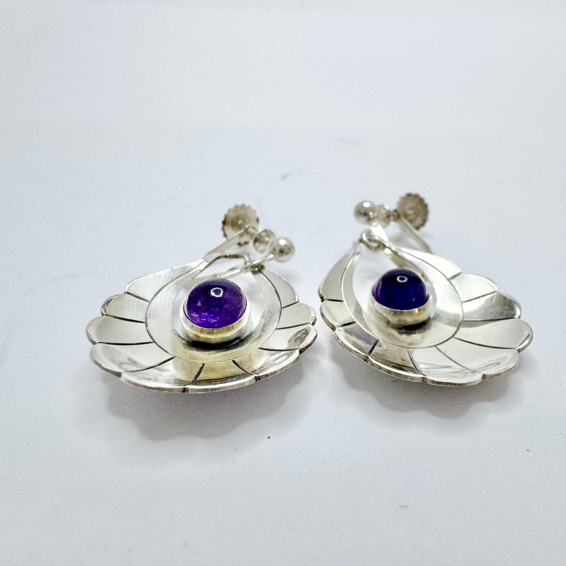 Per Ericsson, Sweden ca 1950. Vintage Solid Silver Amethyst Earrings.
