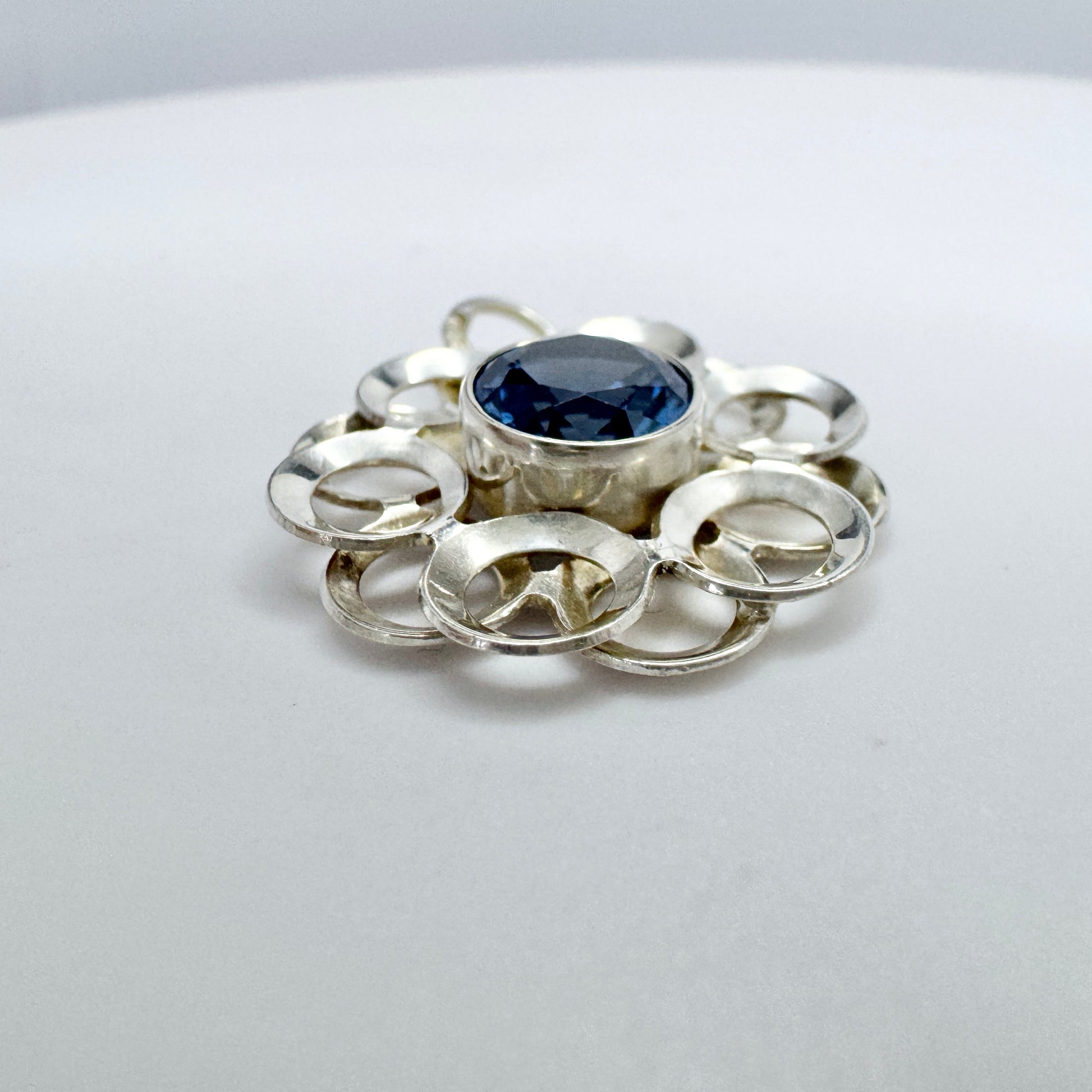 Beautiful little vintage solid silver blue synthetic spinel pendant. Hallmarked for 830 silver, Salovaara, Finland ca 1960s.