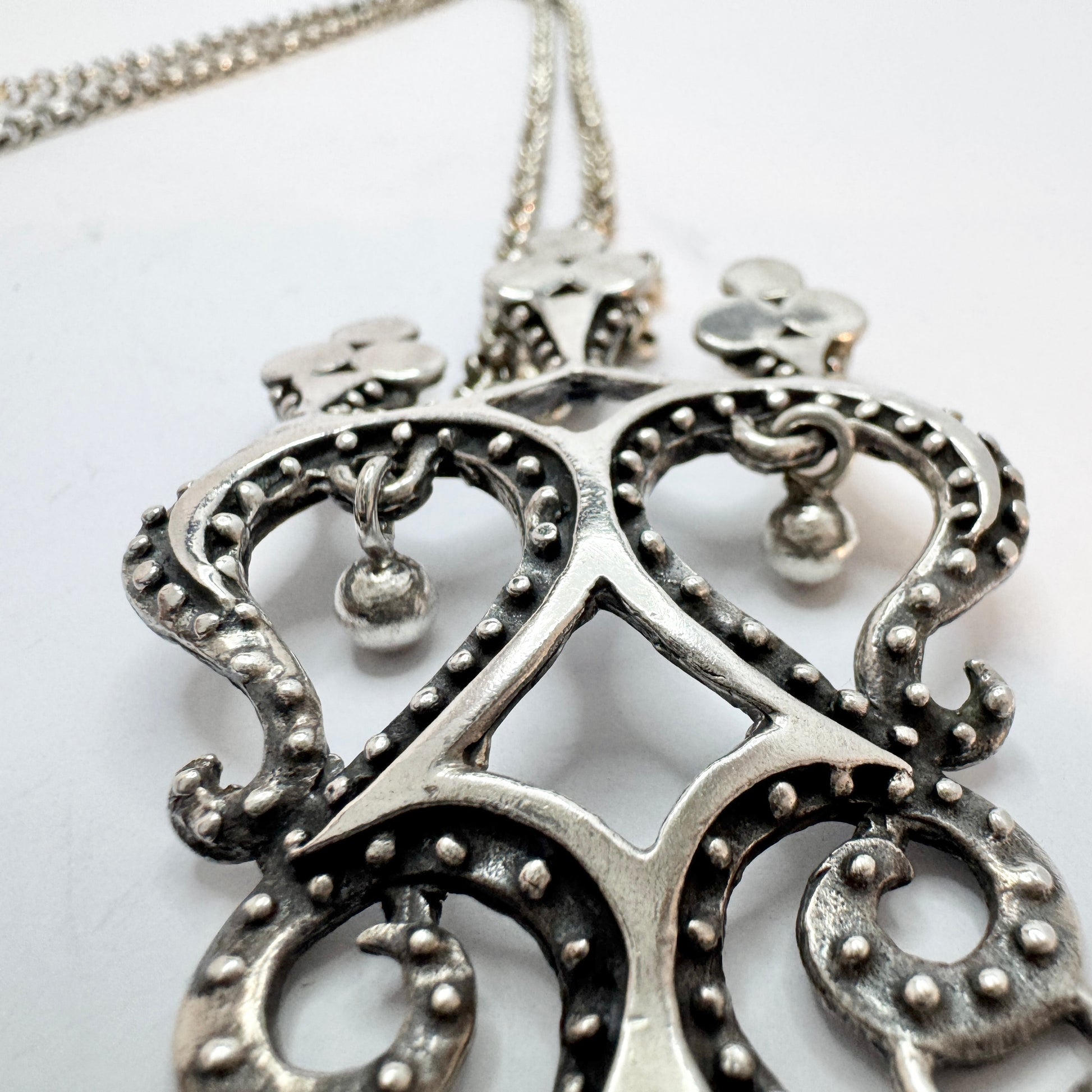 Wonderful and bold vintage sterling silver pendant necklace Hallmarked for Valo-Koru, Finland year 1973.