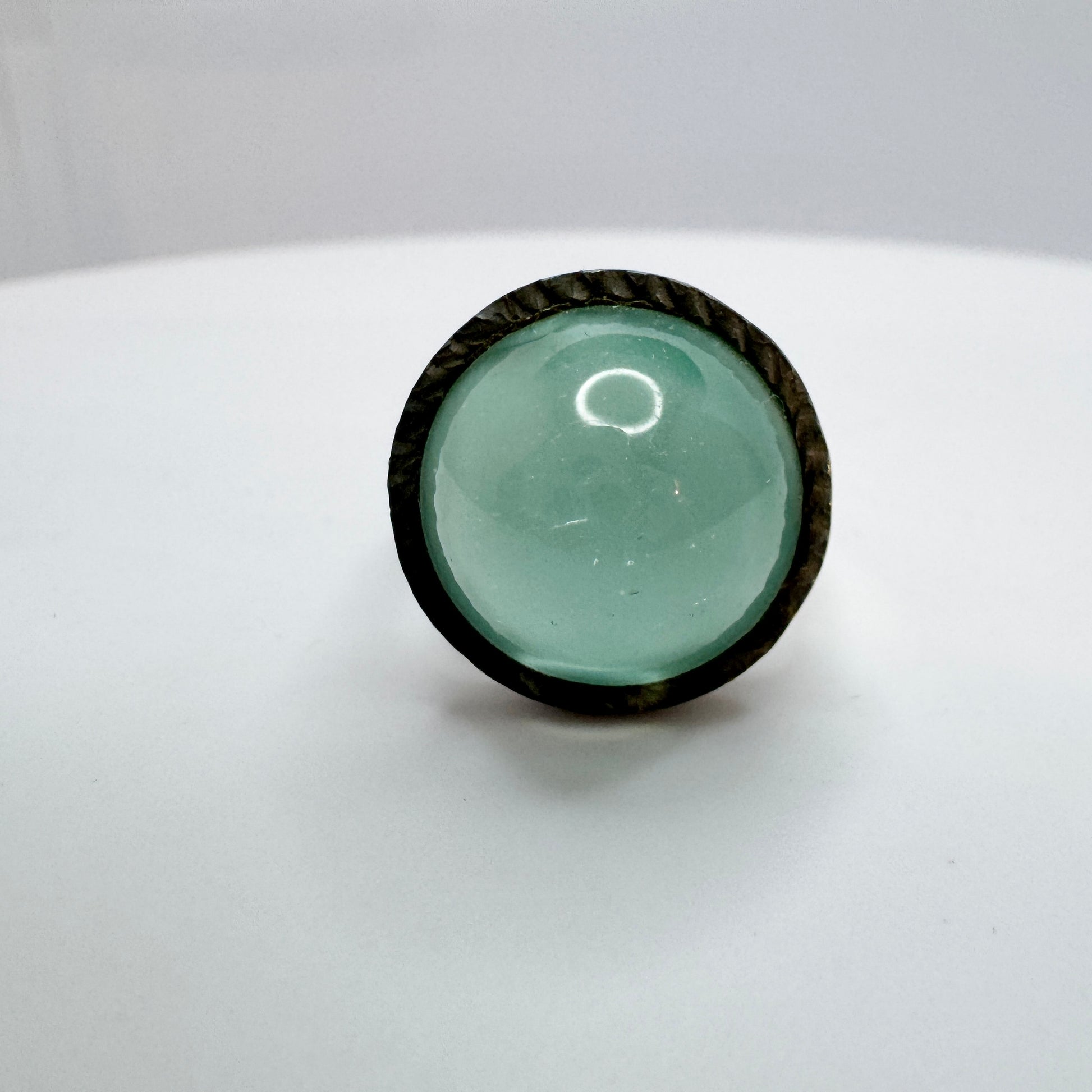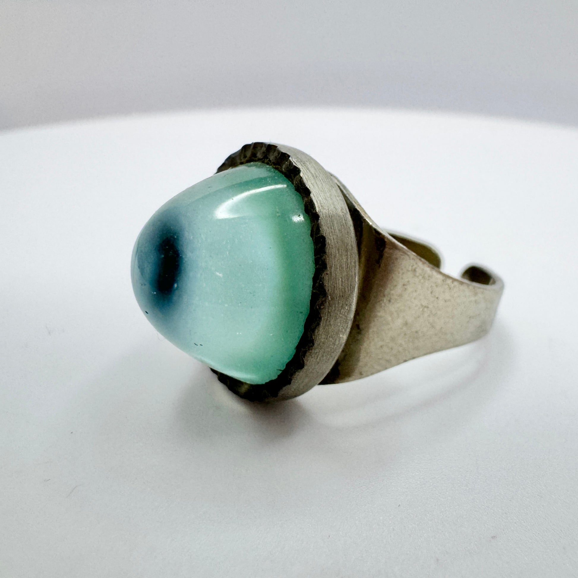Vintage 1970s. Pewter Blue Art Glass Ring