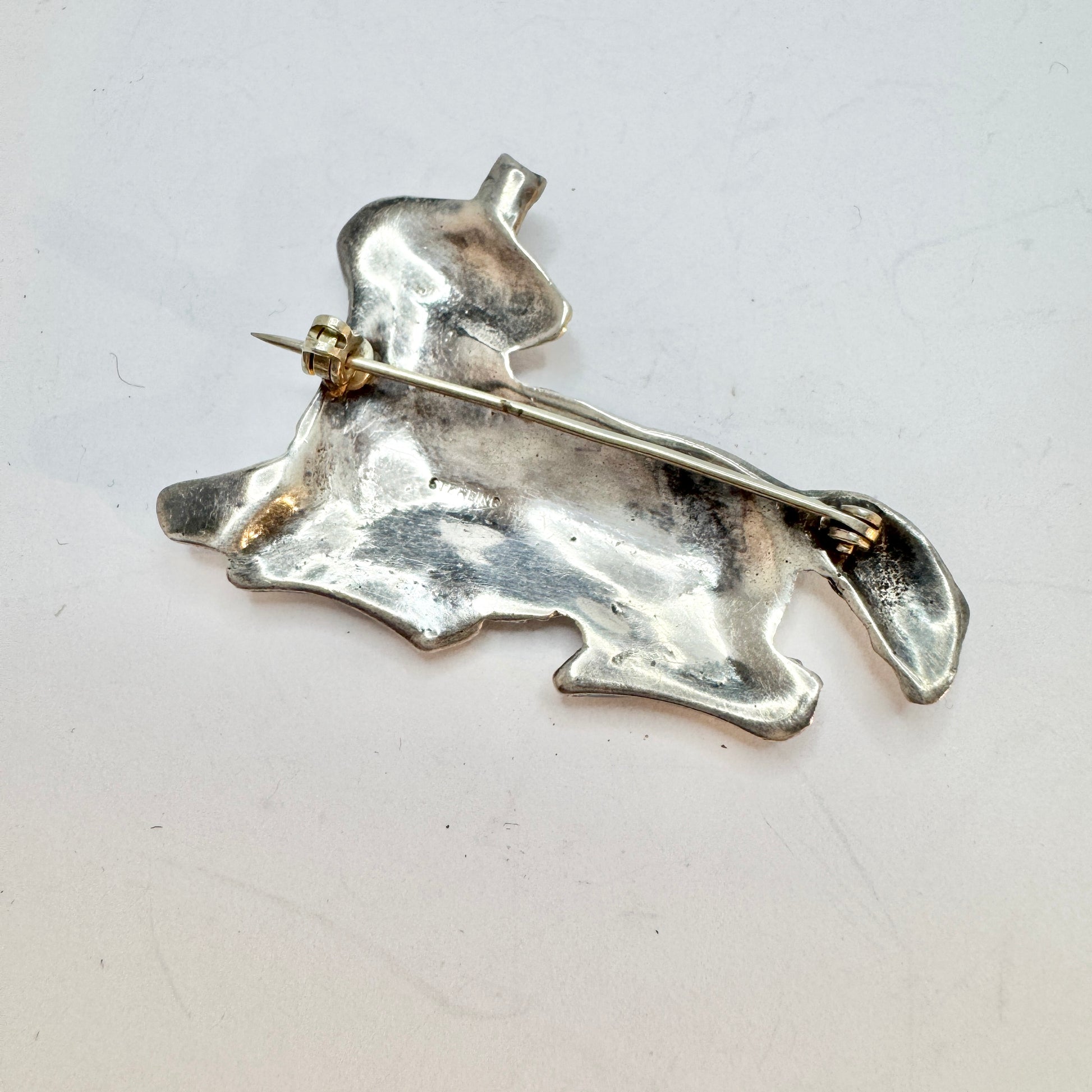 Very charming vintage sterling silver aries zodiac sterling silver green crystal brooch. Hallmarked for sterling silver. Probably the USA, ca 1950s.