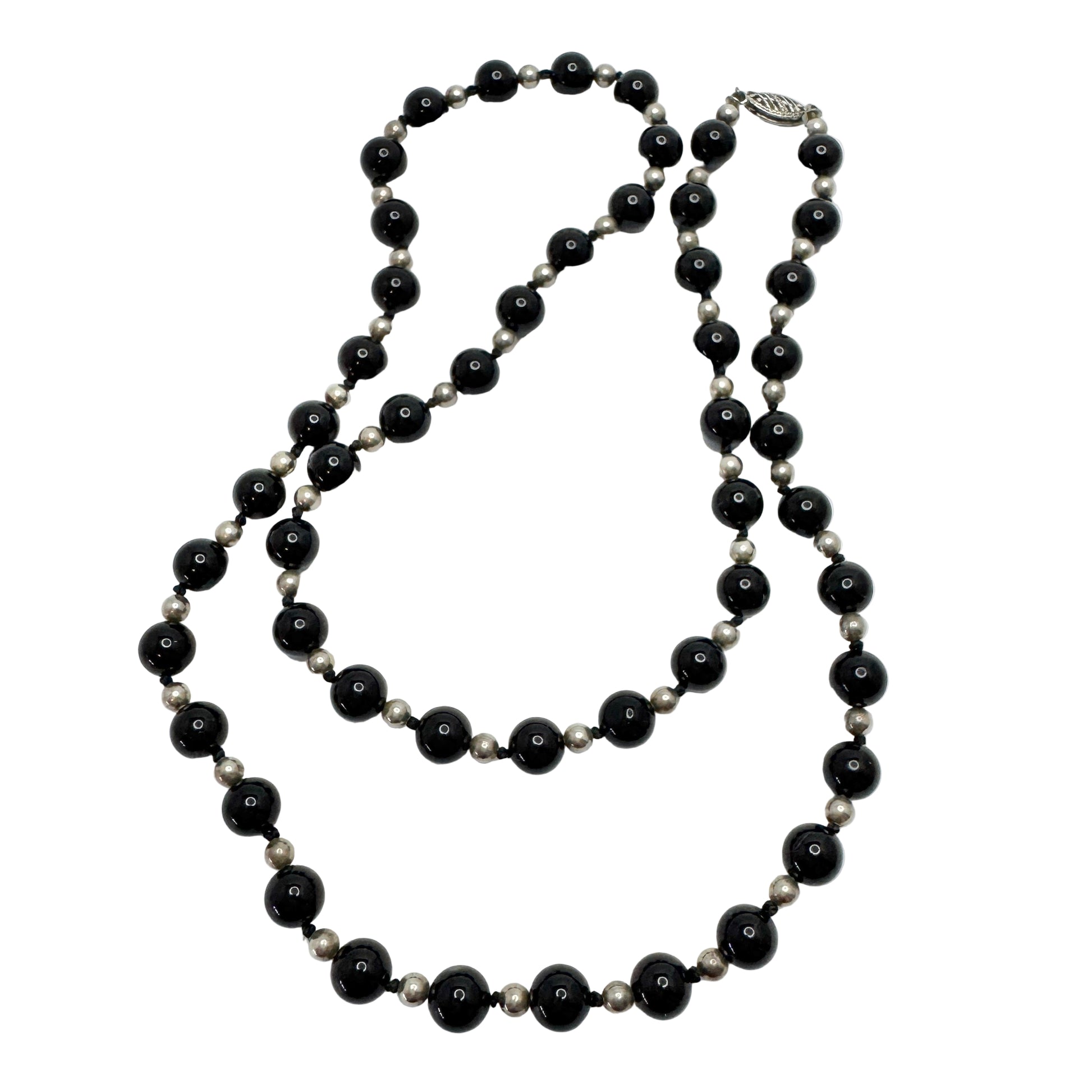 Vintage Solid Silver Onyx Necklace.
