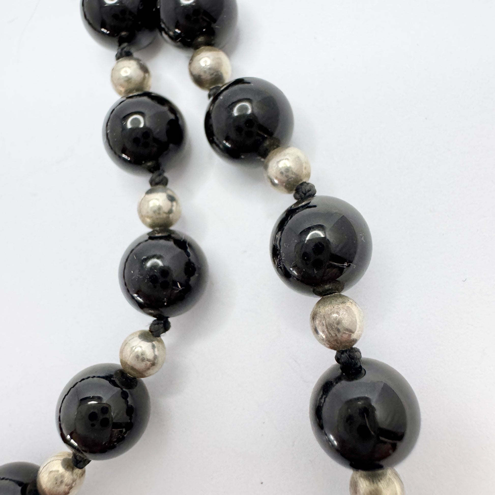 Beautiful vintage solid silver onyx necklace. Apparently unmarked. Vintage.