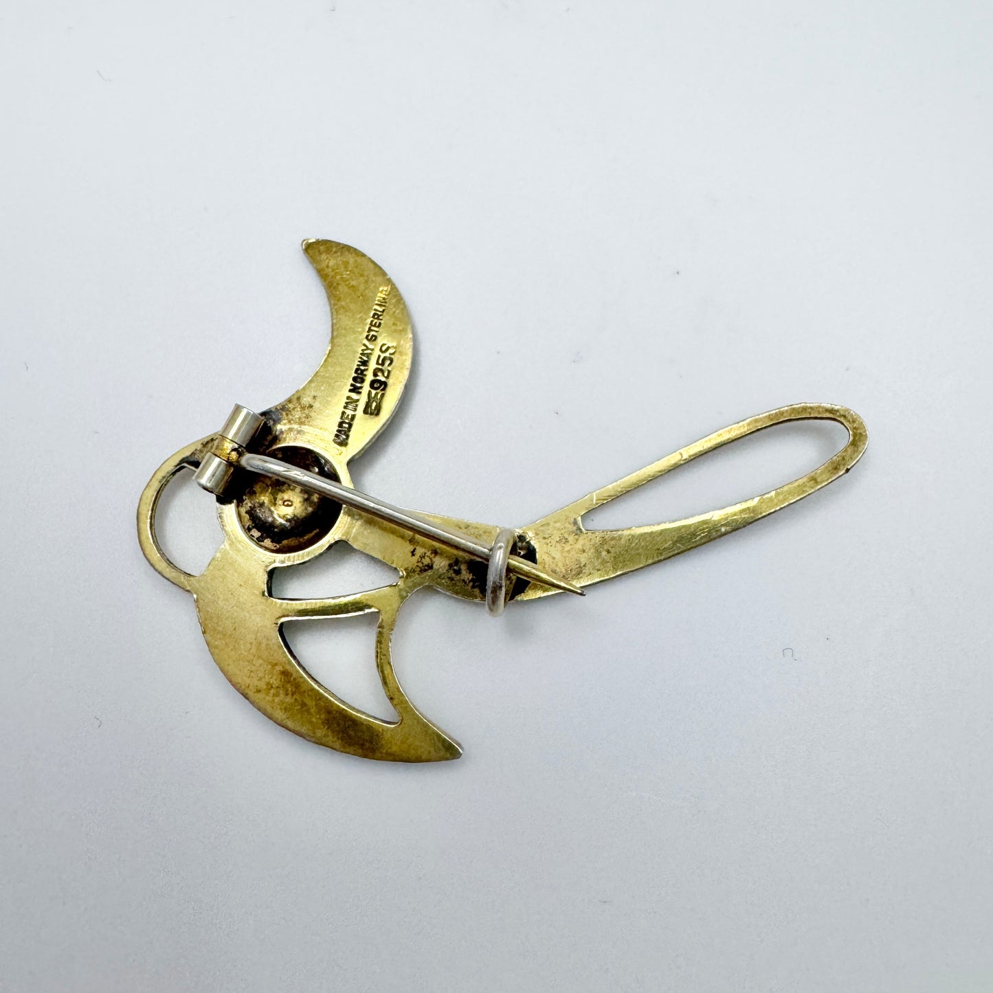 Aksel Holmsen, Norway c 1960s. Vintage Sterling Silver Enamel Brooch.