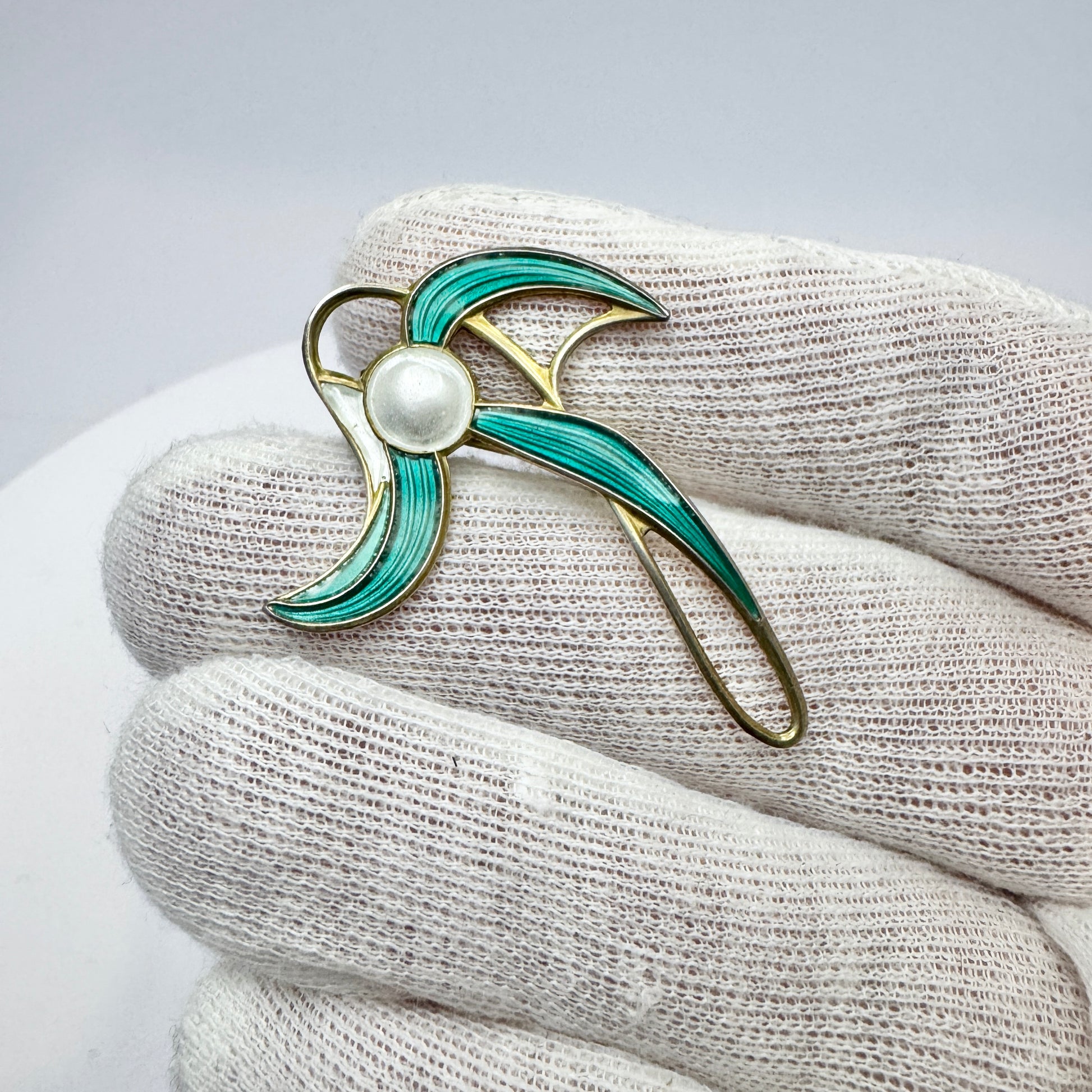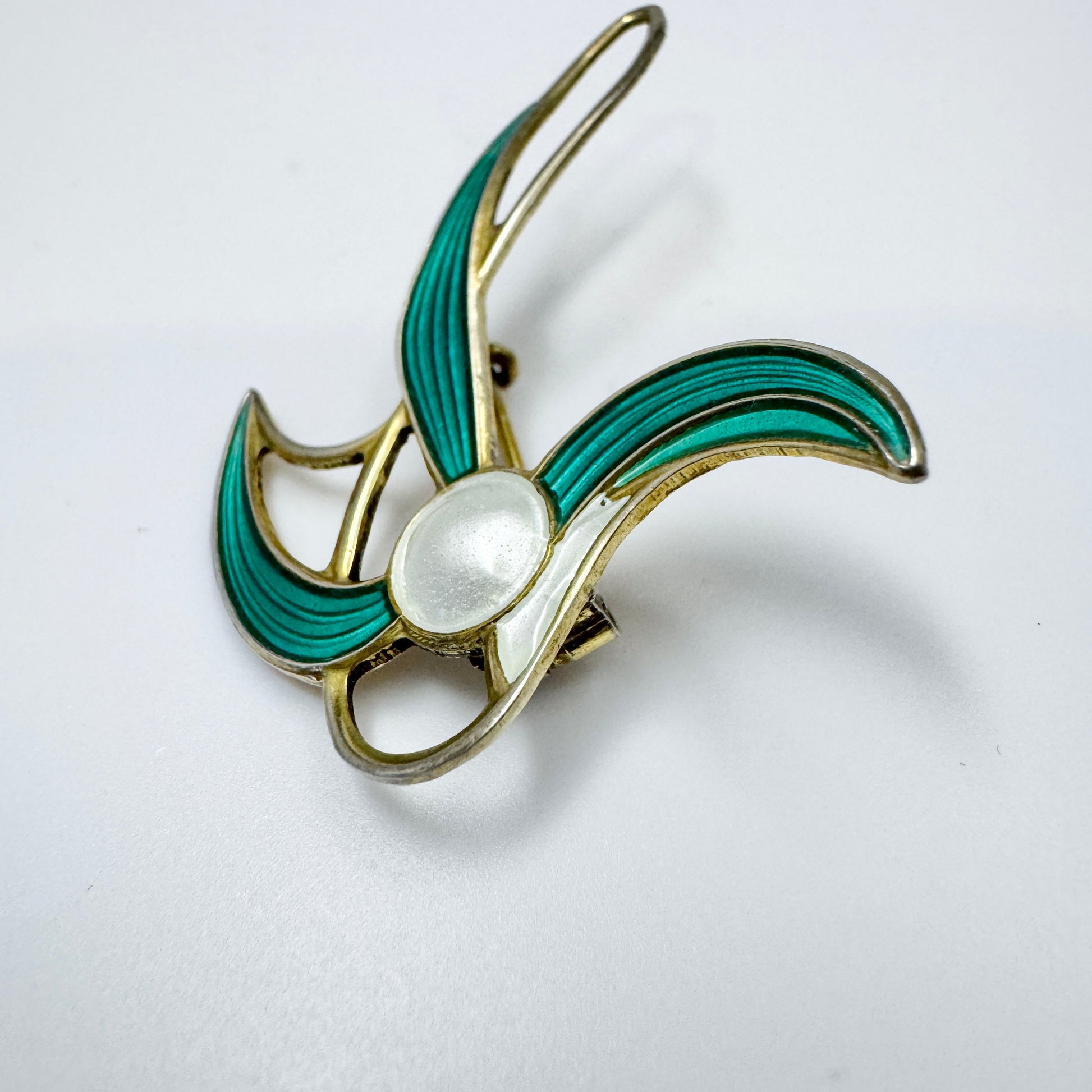 Beautiful vintage sterling silver enamel brooch. Fully hallmarked for Aksel Holmsen, Norway c 1960s