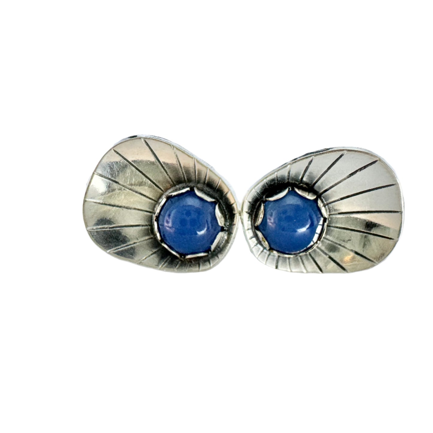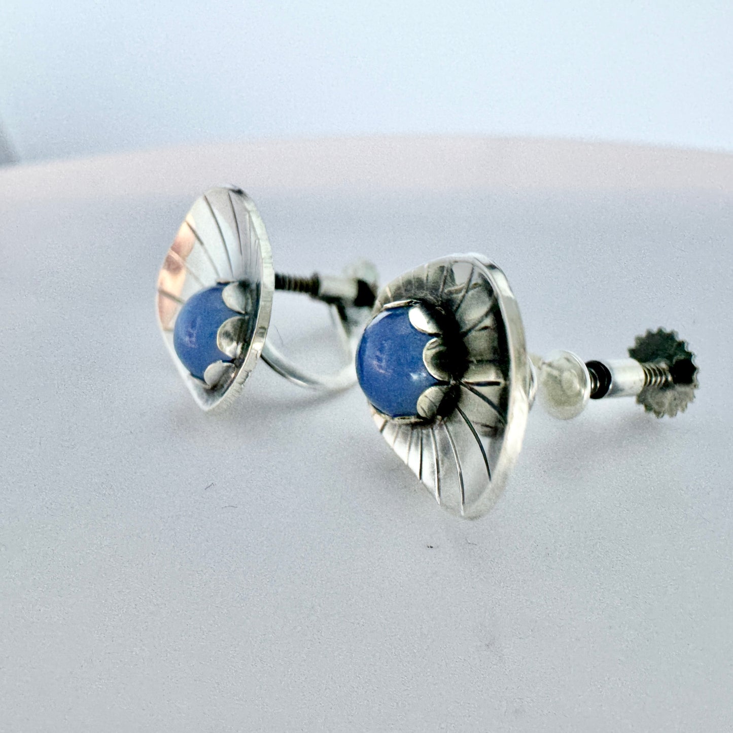 Beautiful and sought after vintage mid-century sterling silver chalcedony pair of screw-back earrings.