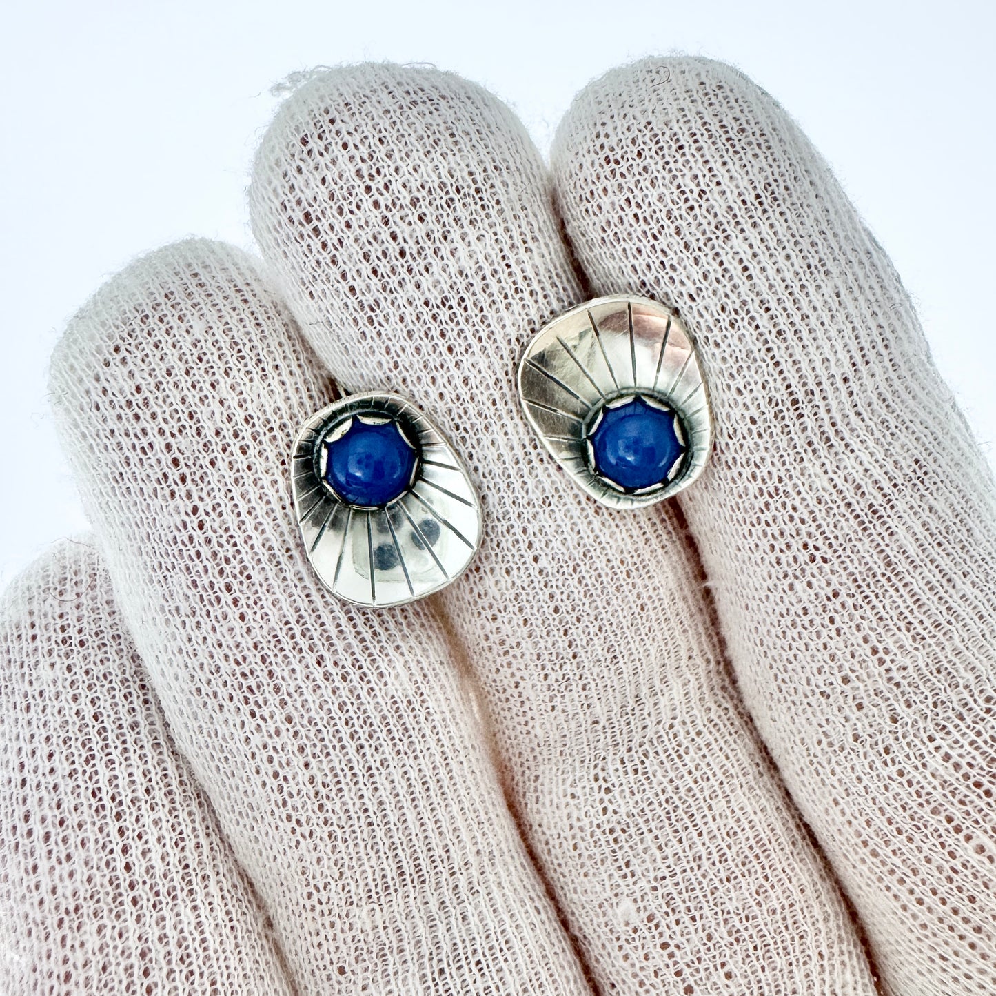 Alton, Sweden 1956. Vintage Sterling Silver Chalcedony Earrings.