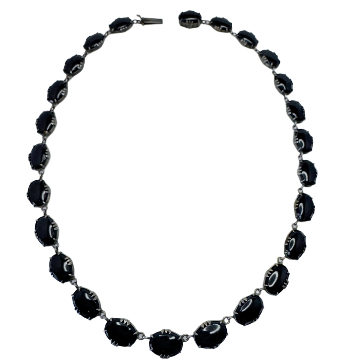 Antique 1920s Art Deco French Jet Solid Silver Necklace.