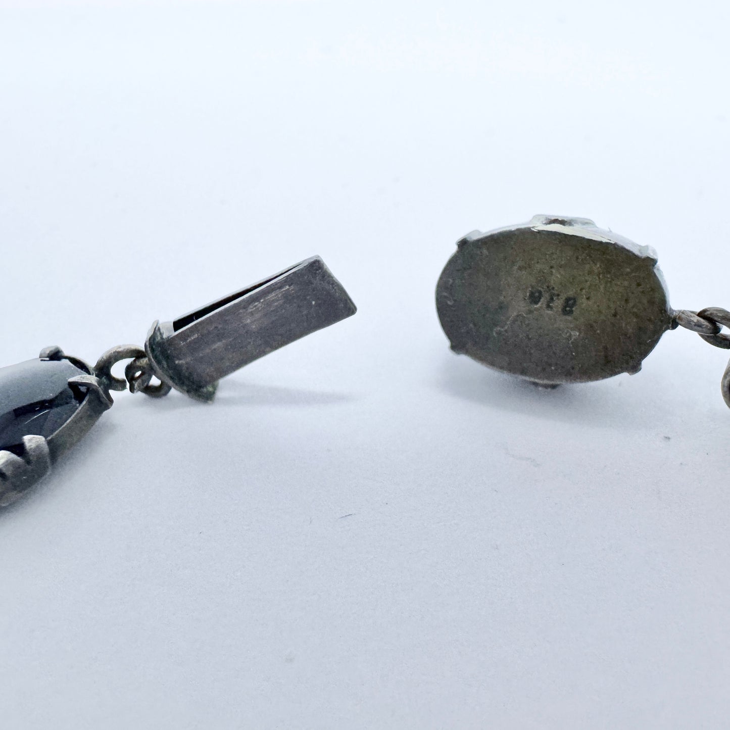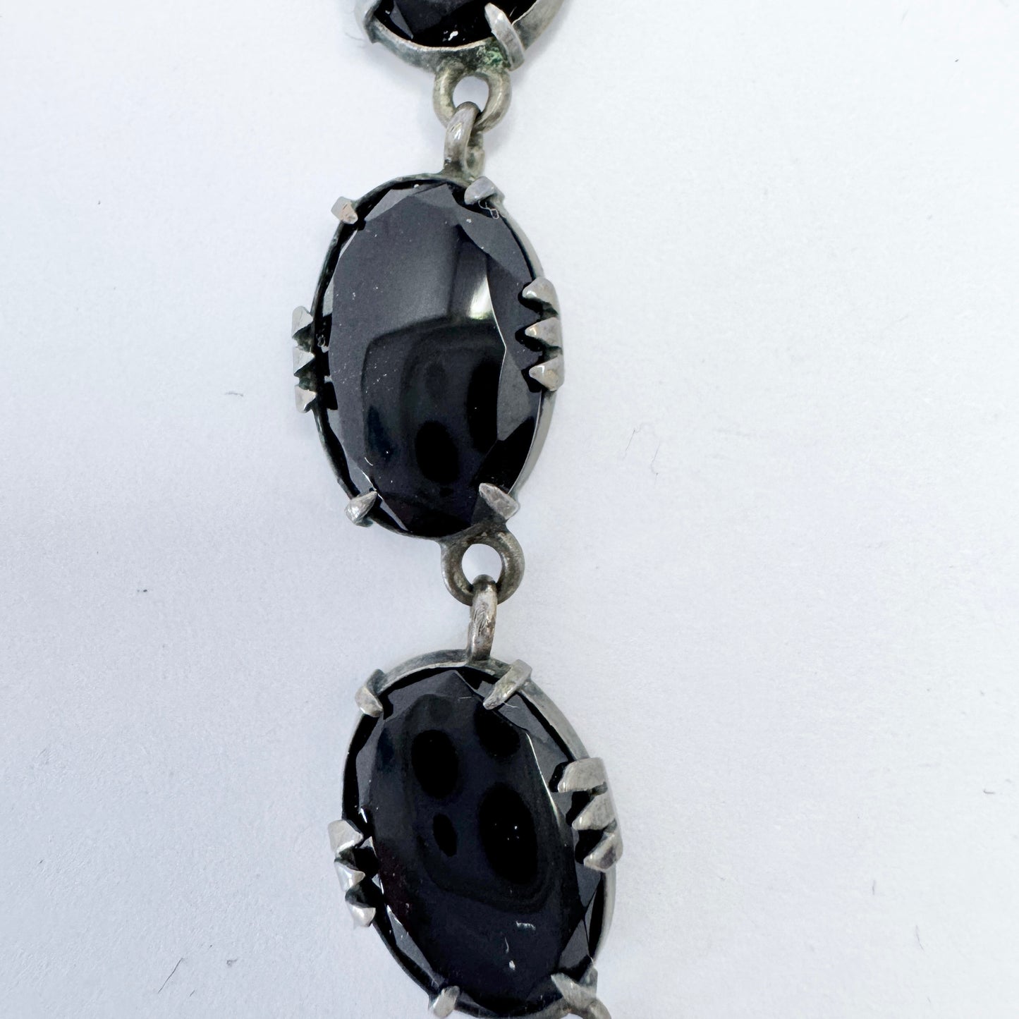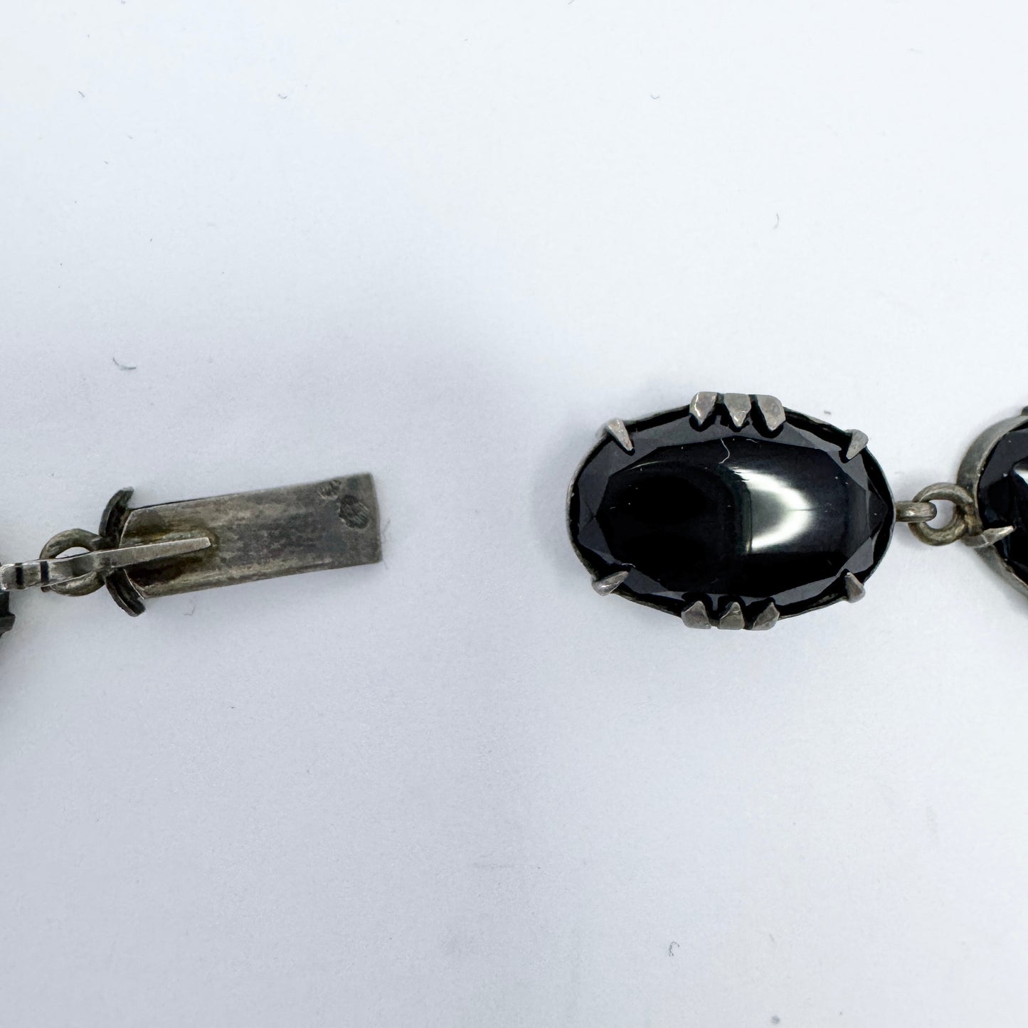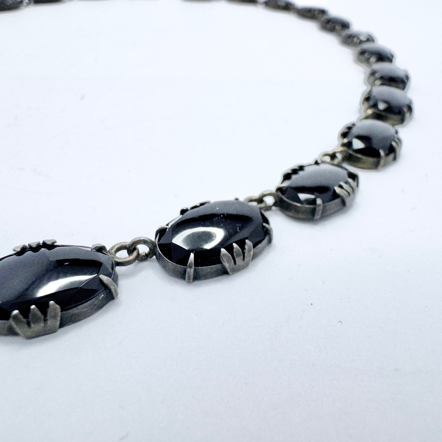 Wonderful antique French jet solid silver necklace. Hallmarked for 835 silver and Swedish control marks ca 1920s.