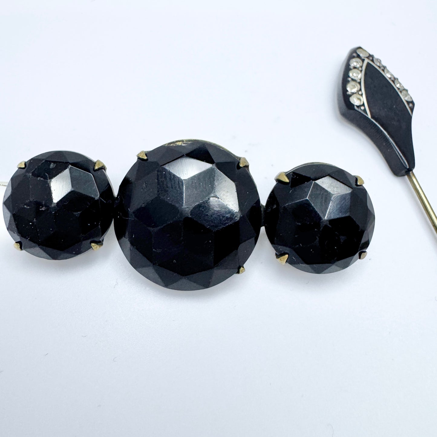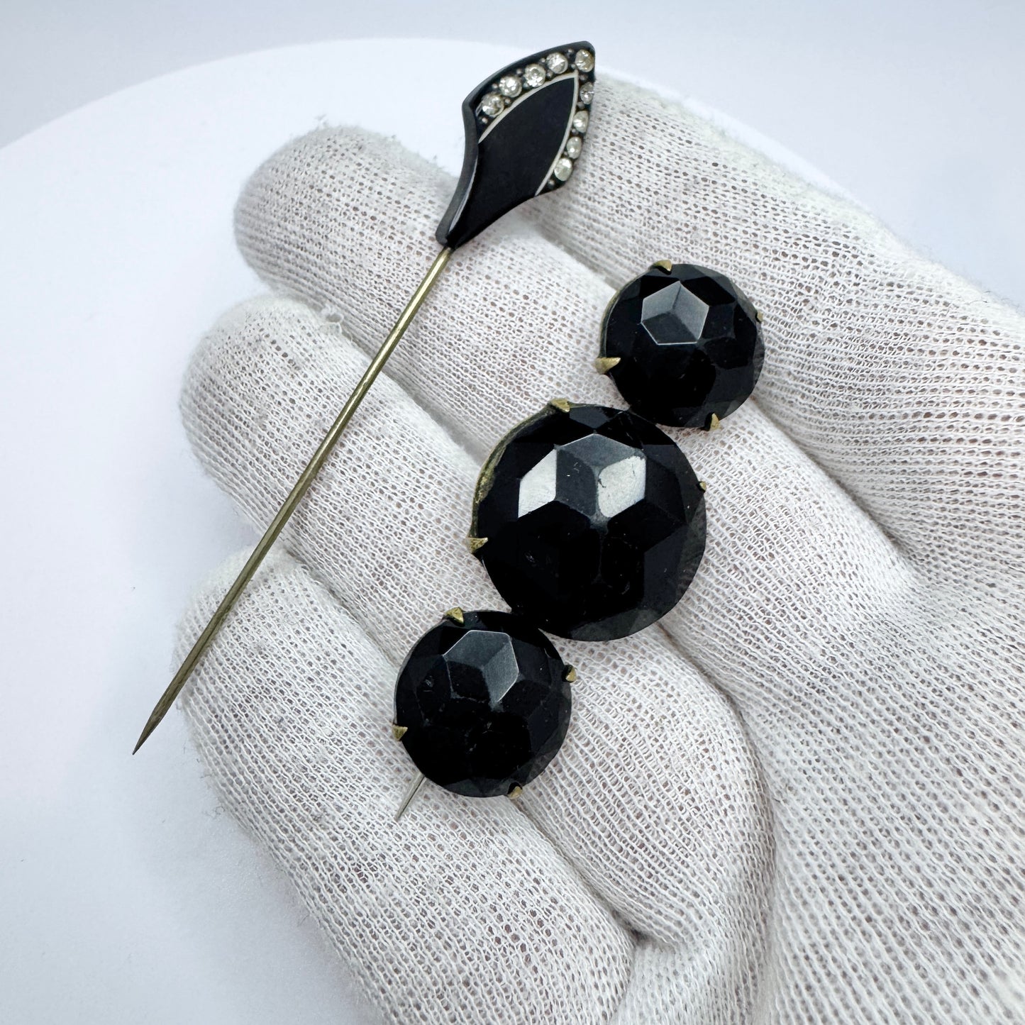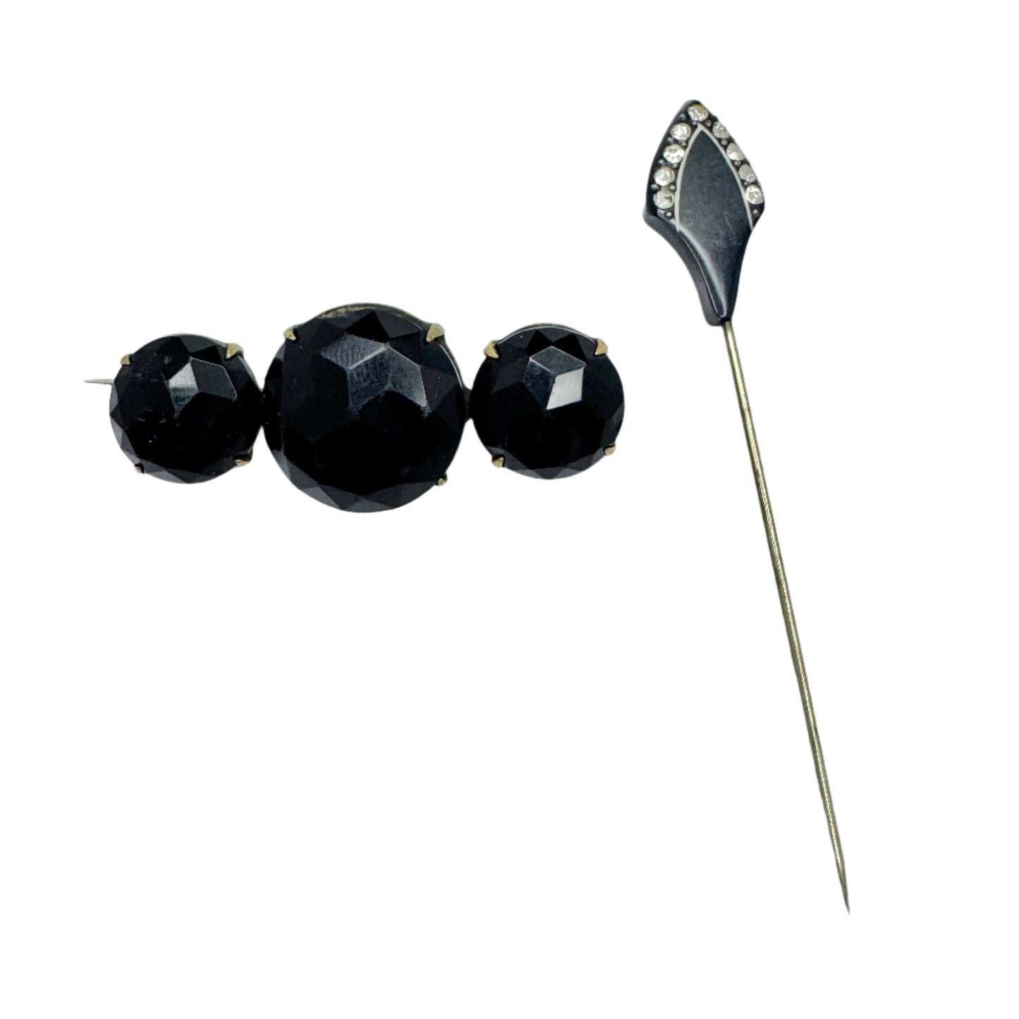 Antique c 1910s Mourning Costume Jewelry. Brooch + Pin.