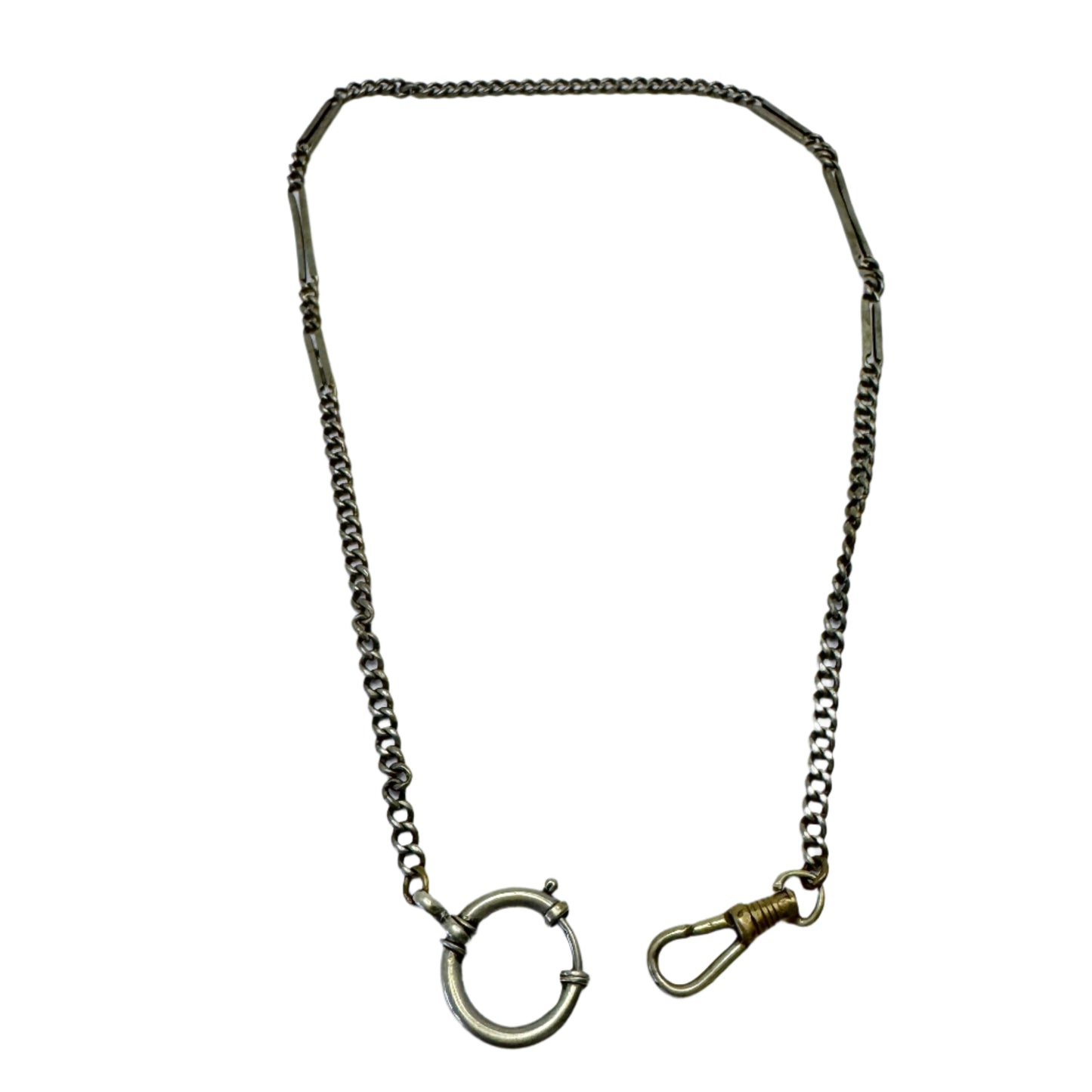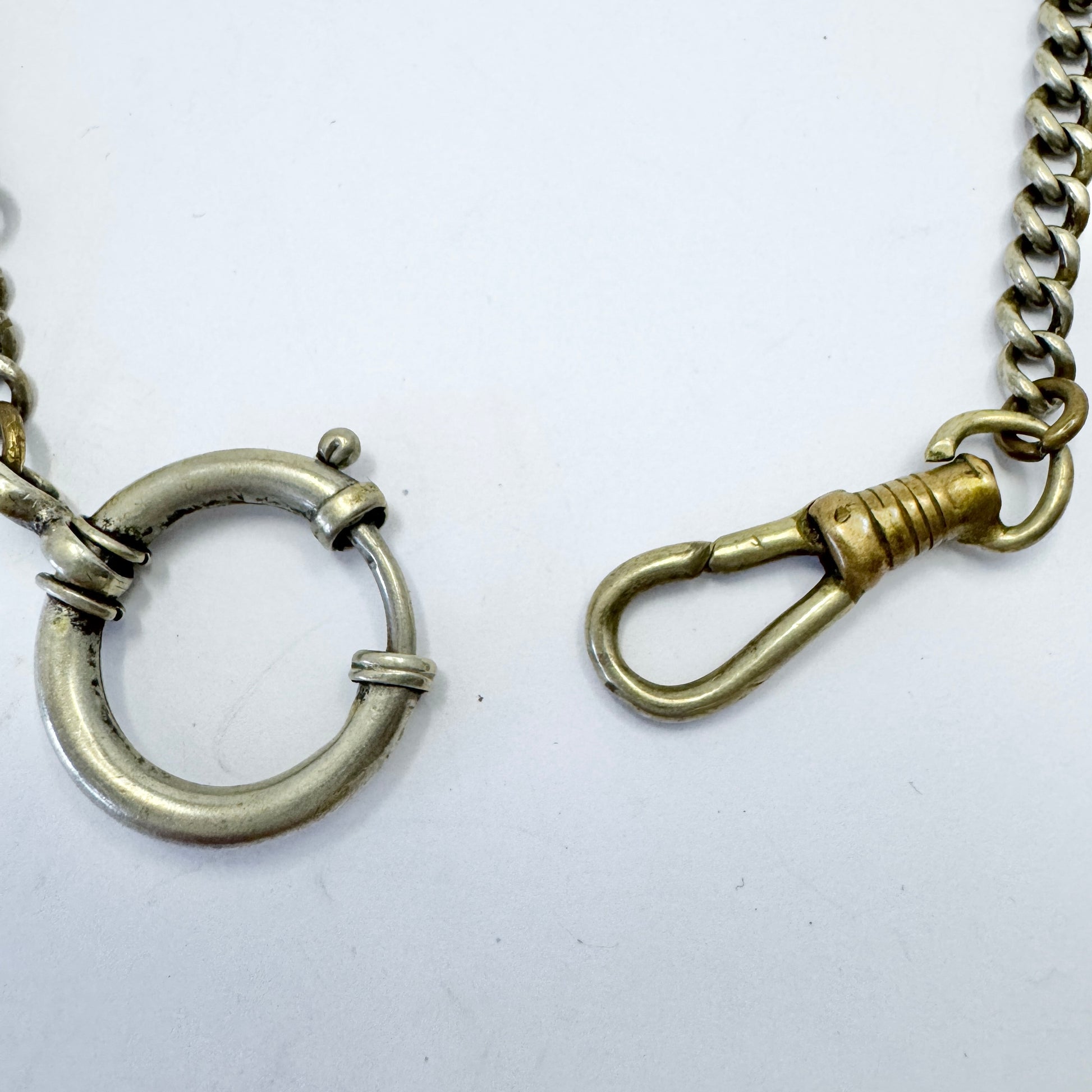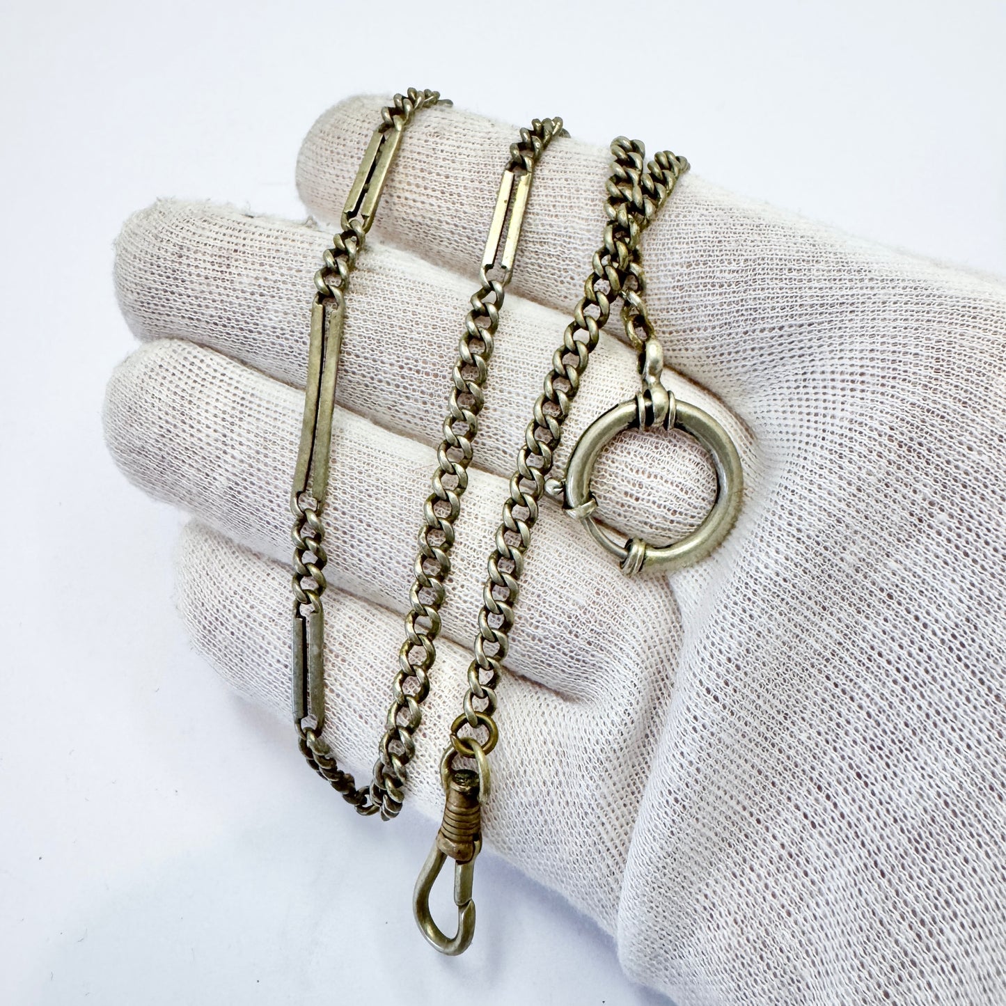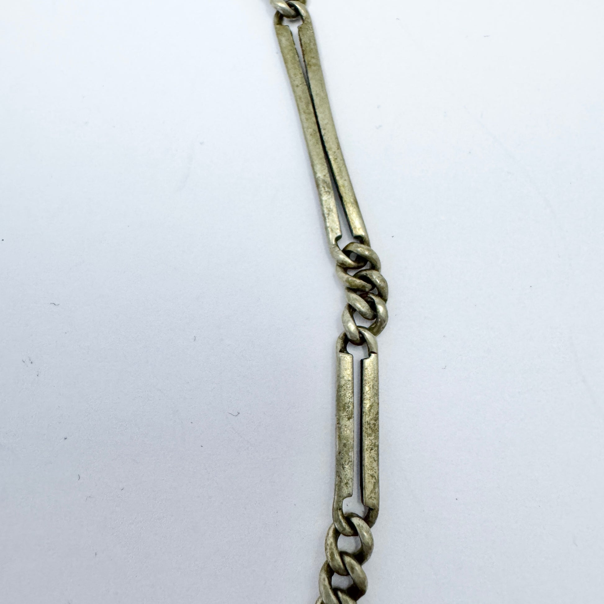 Charming antique metal watch chain in necklace length. Apparently unmarked, c year 1900.