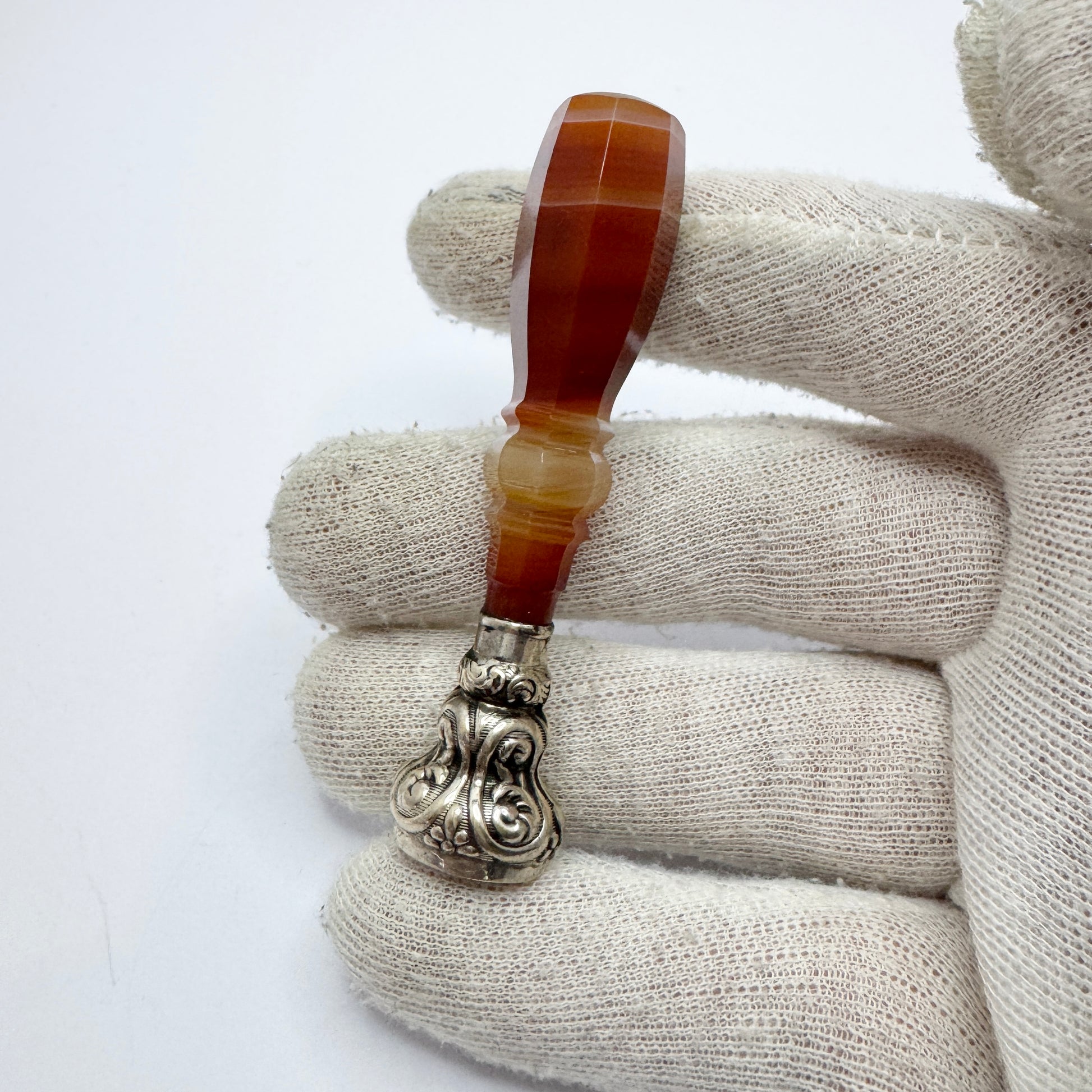 Very charming antique silver agate seal stamp. Ca year 1900.