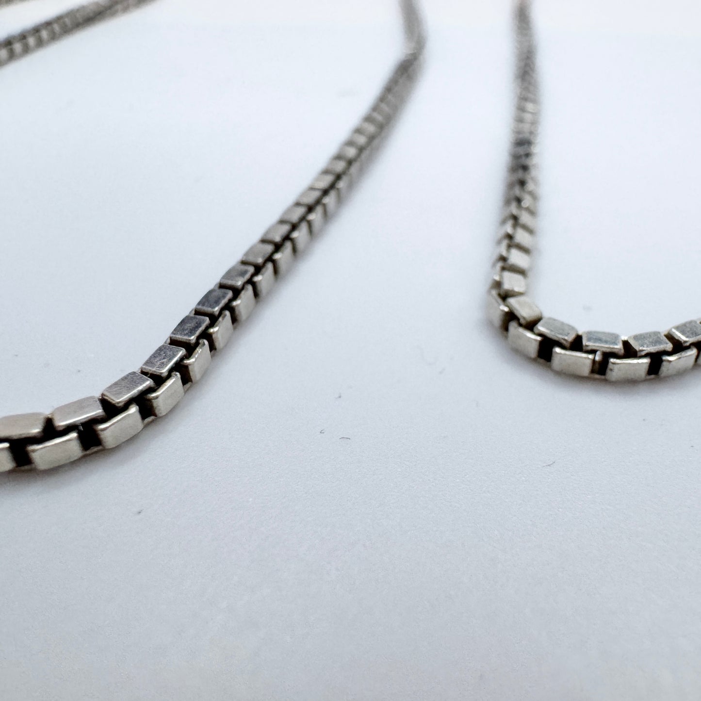 Charming vintage sterling silver box chain necklace. Hallmarked for sterling silver, Arezzo, Italy.