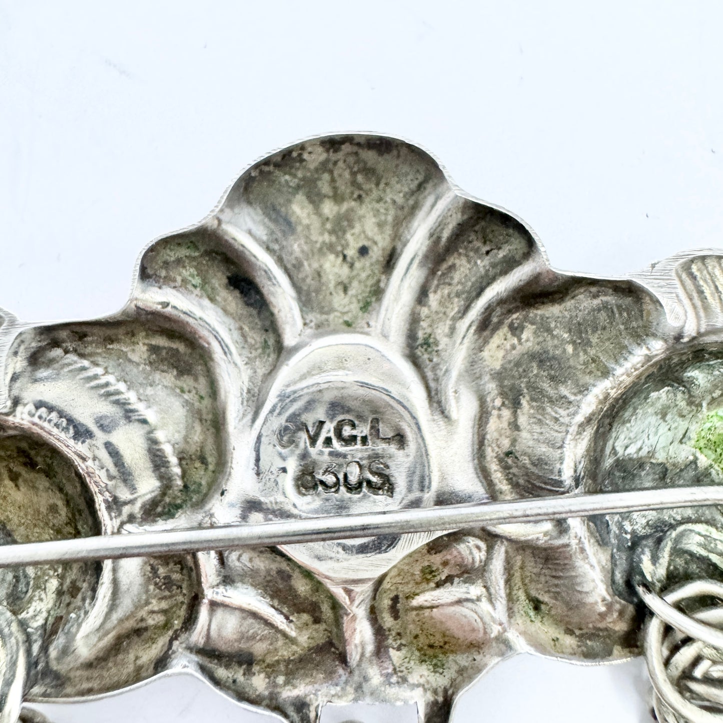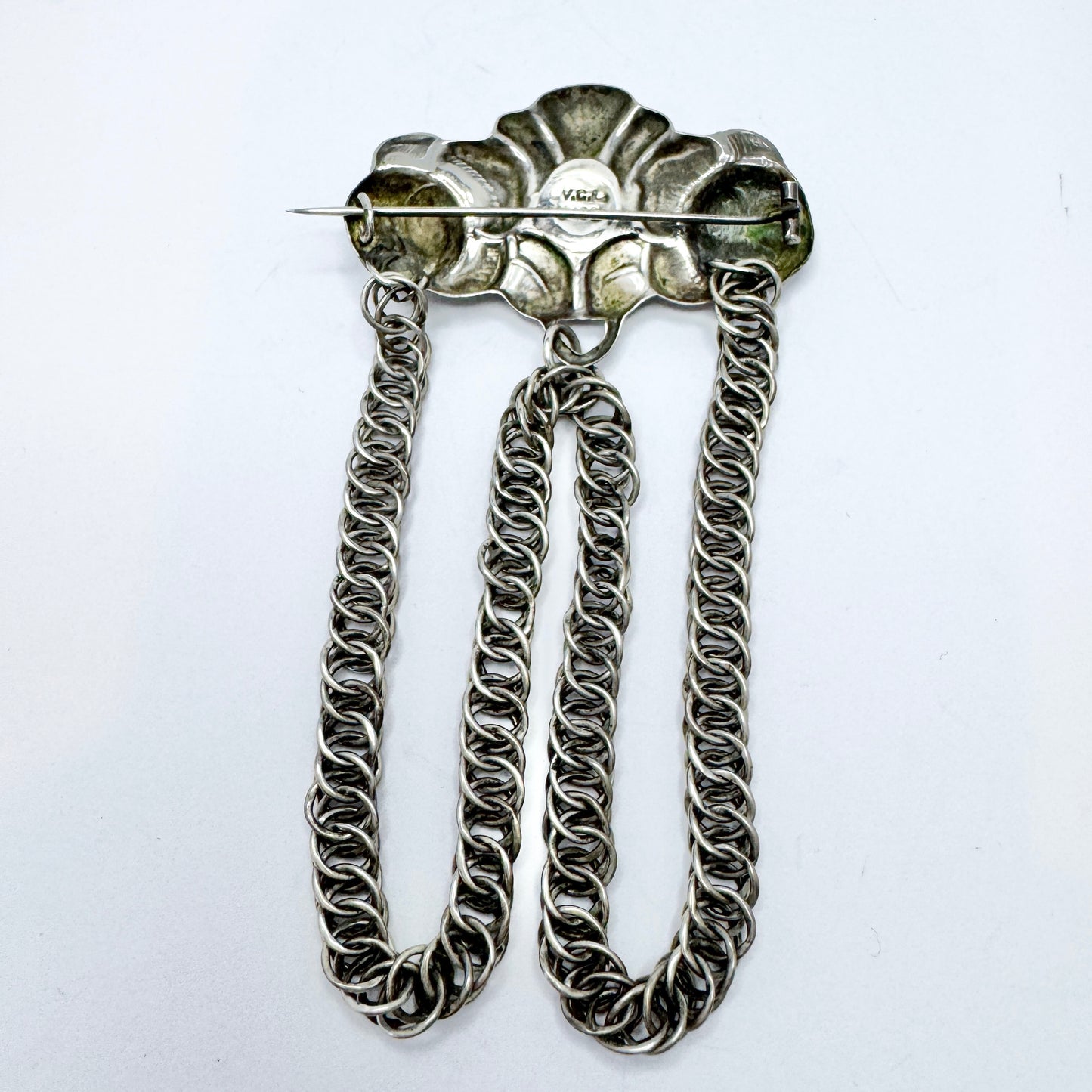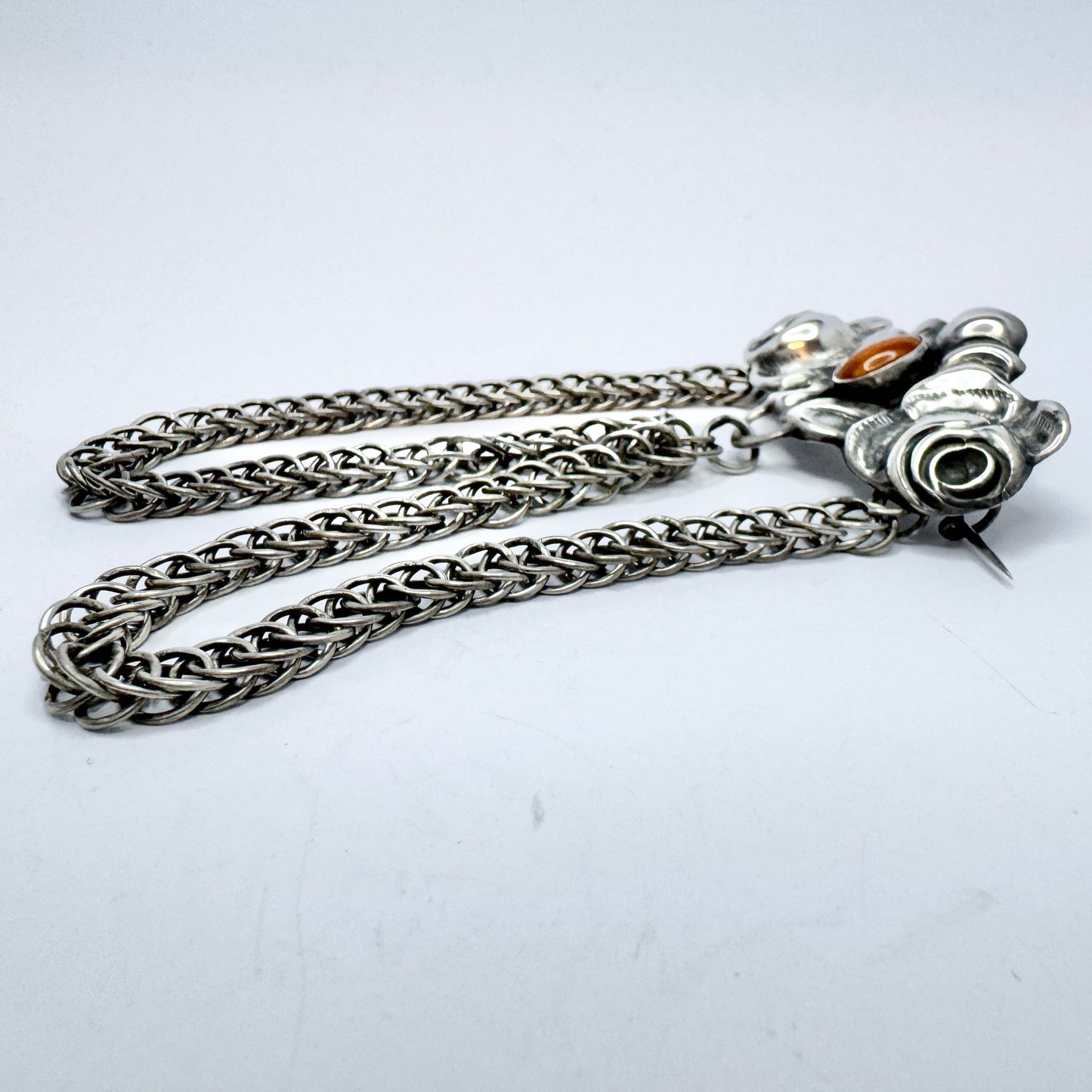CV Carl Larsen, Denmark 1910s, Antique Solid Silver Amber Arts and Crafts Skonvirke Brooch