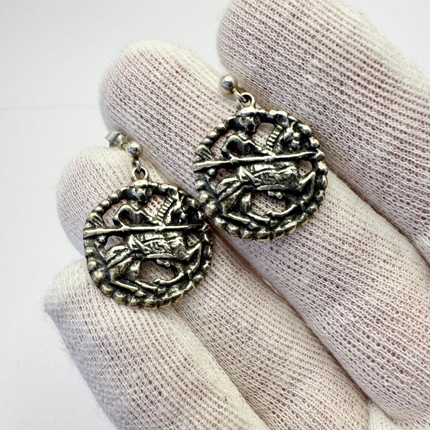 David-Andersen, Norway. Vintage Viking Copy Sterling Silver Earrings.