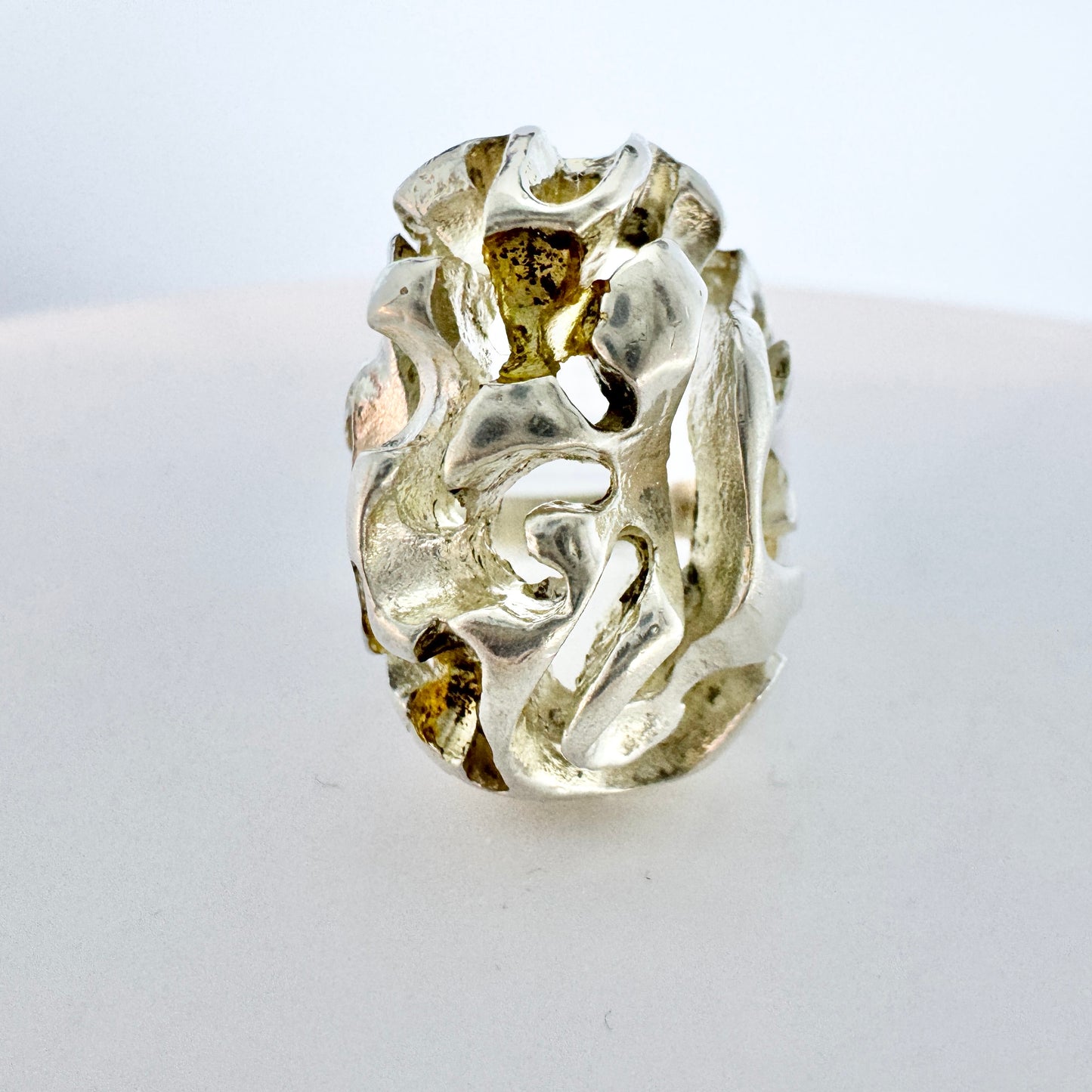 Denmark c 1970s. Bold Vintage Sterling Silver Ring.