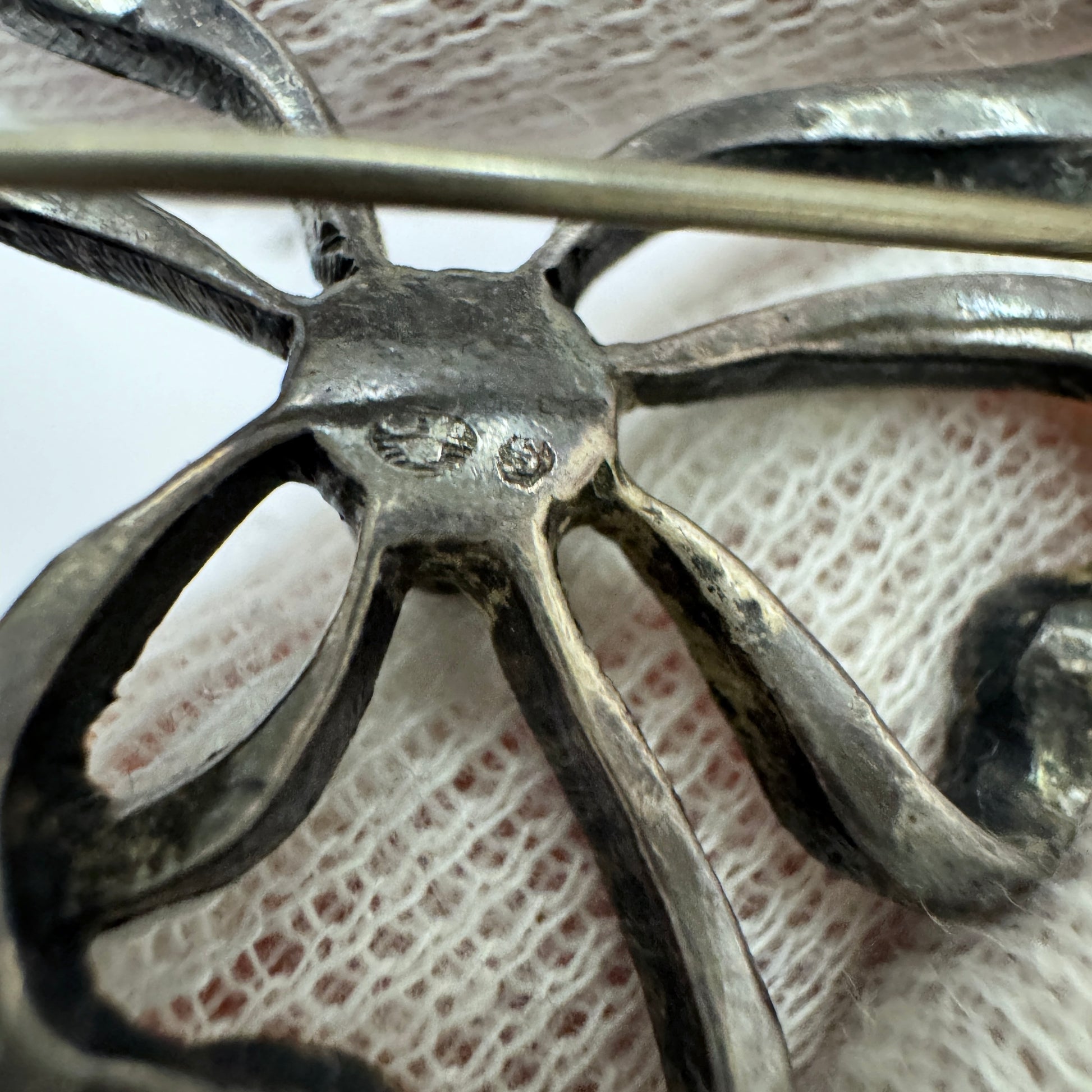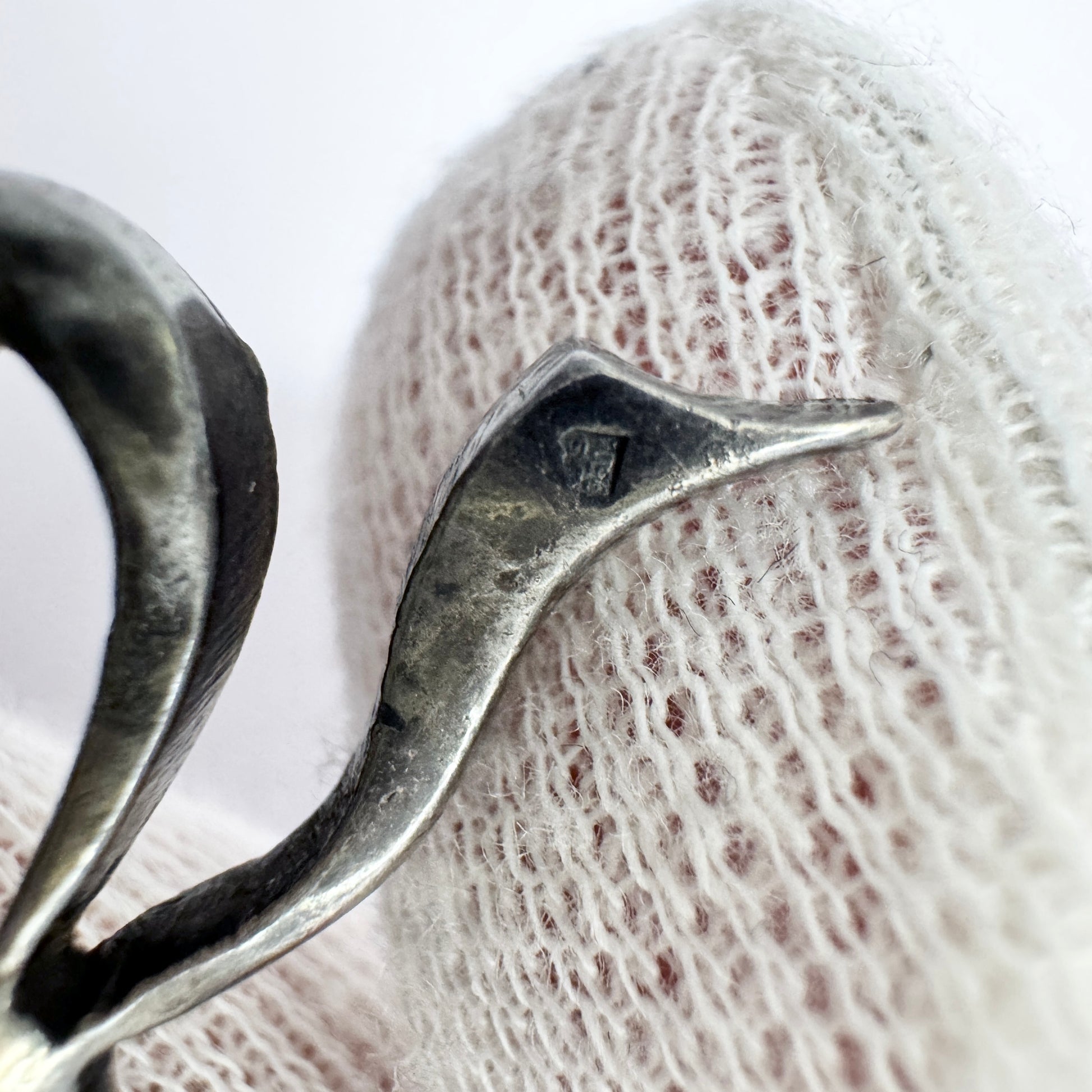 Charming solid sterling silver paste stone brooch. Hallmarked for 950 silver, unidentified makers mark and Swedish import marks. Continental Europe early 1900s.