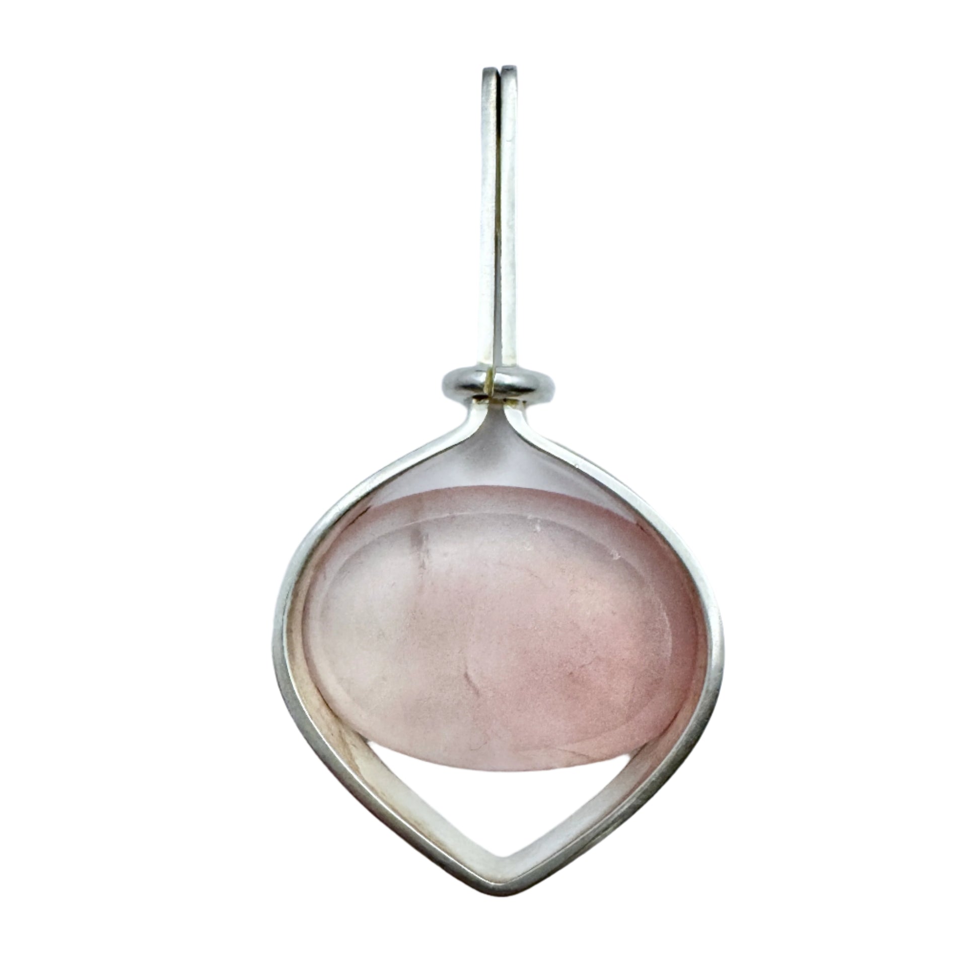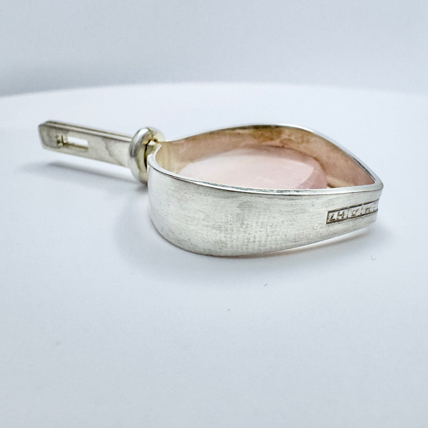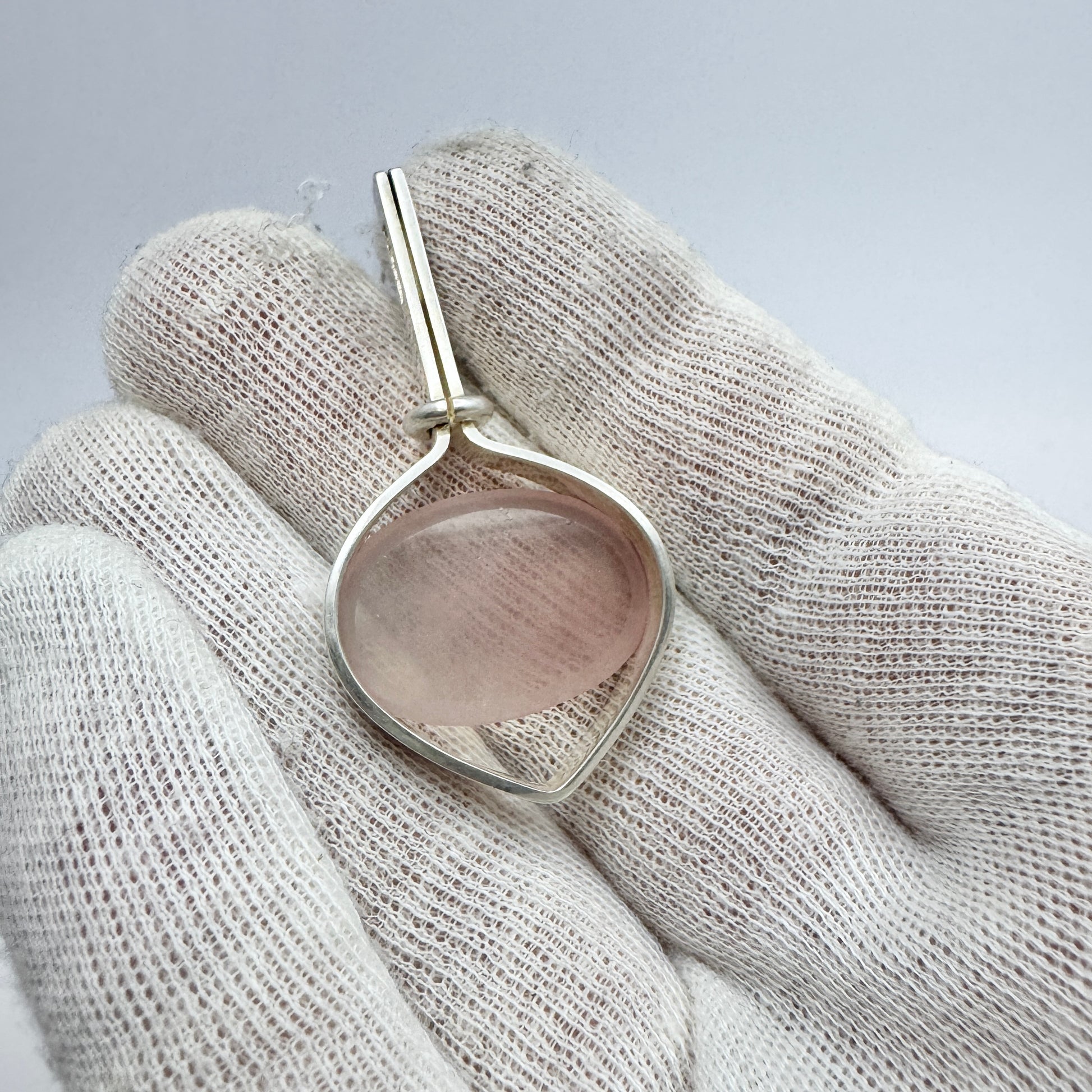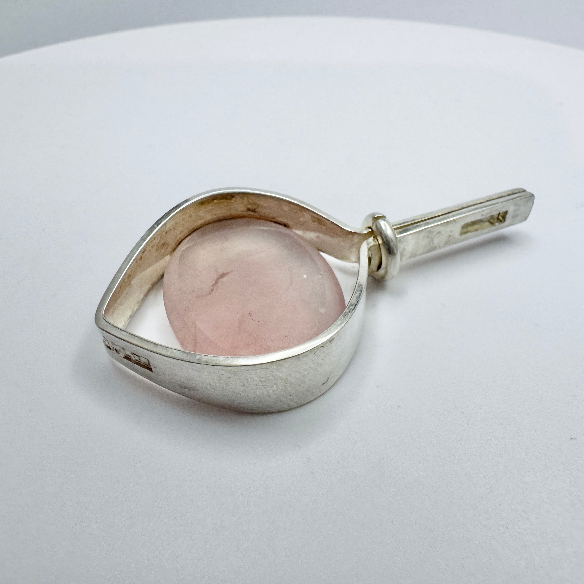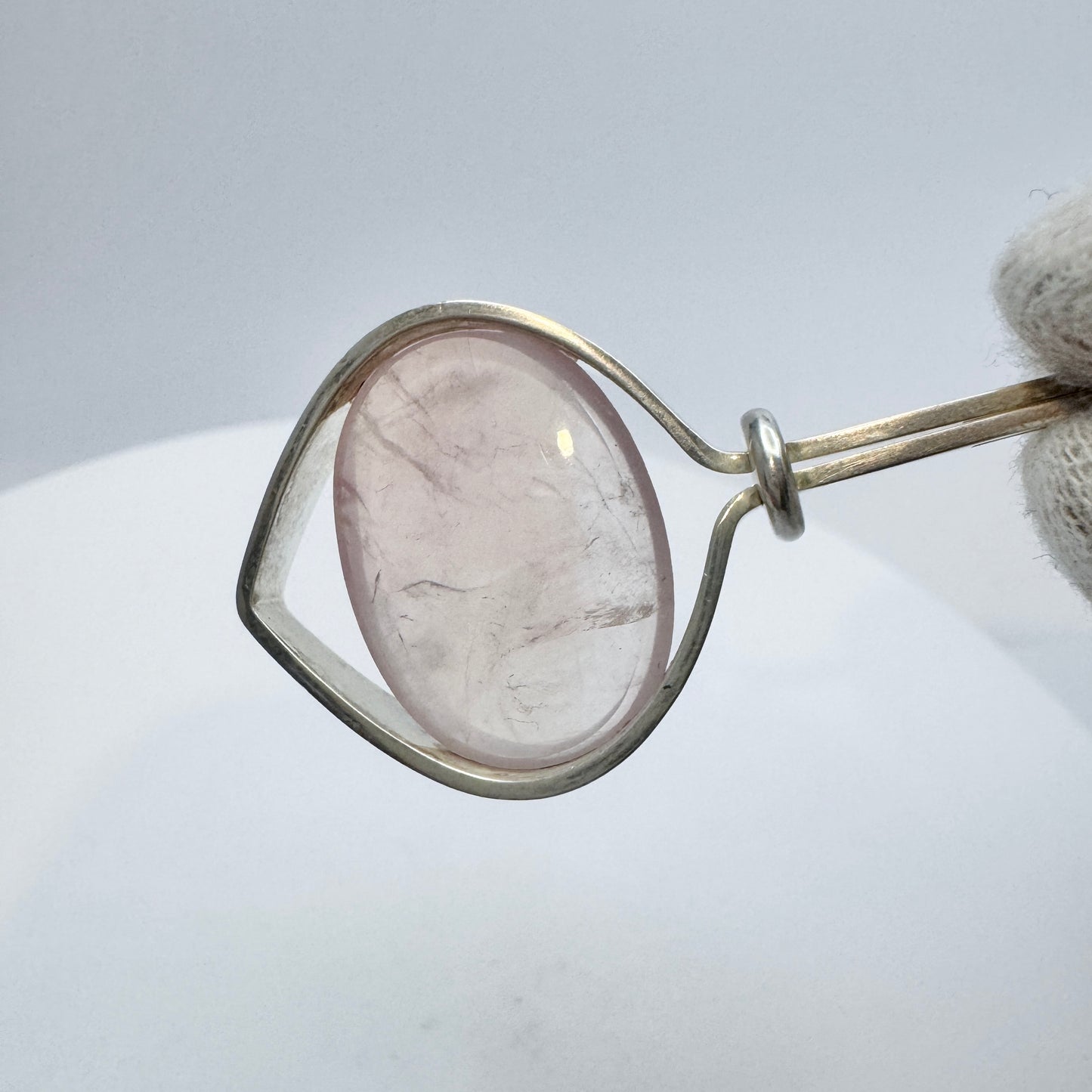 Elis Kauppi, Kupittaan Kulta Finland 1962. Vintage Modernist Solid Silver Rose Quartz Pendant.